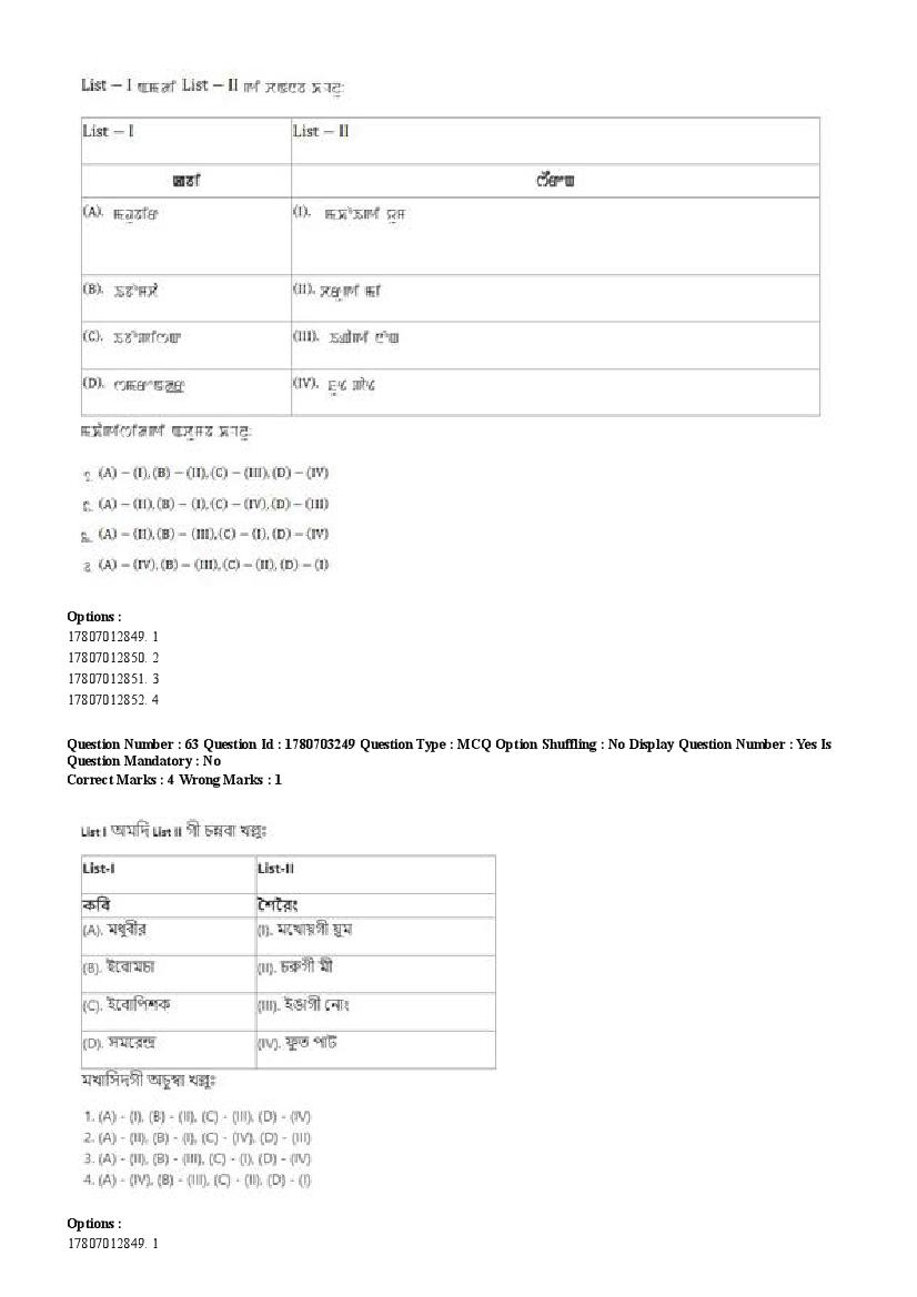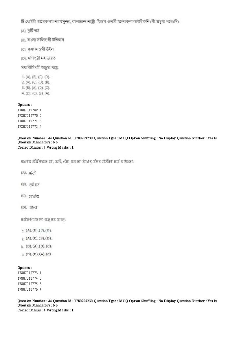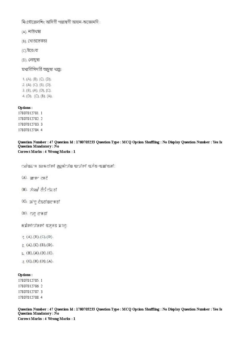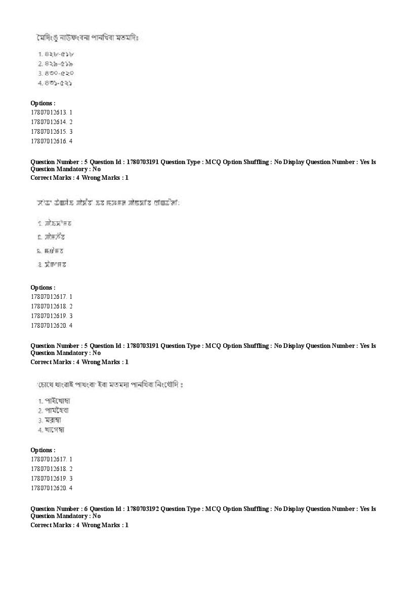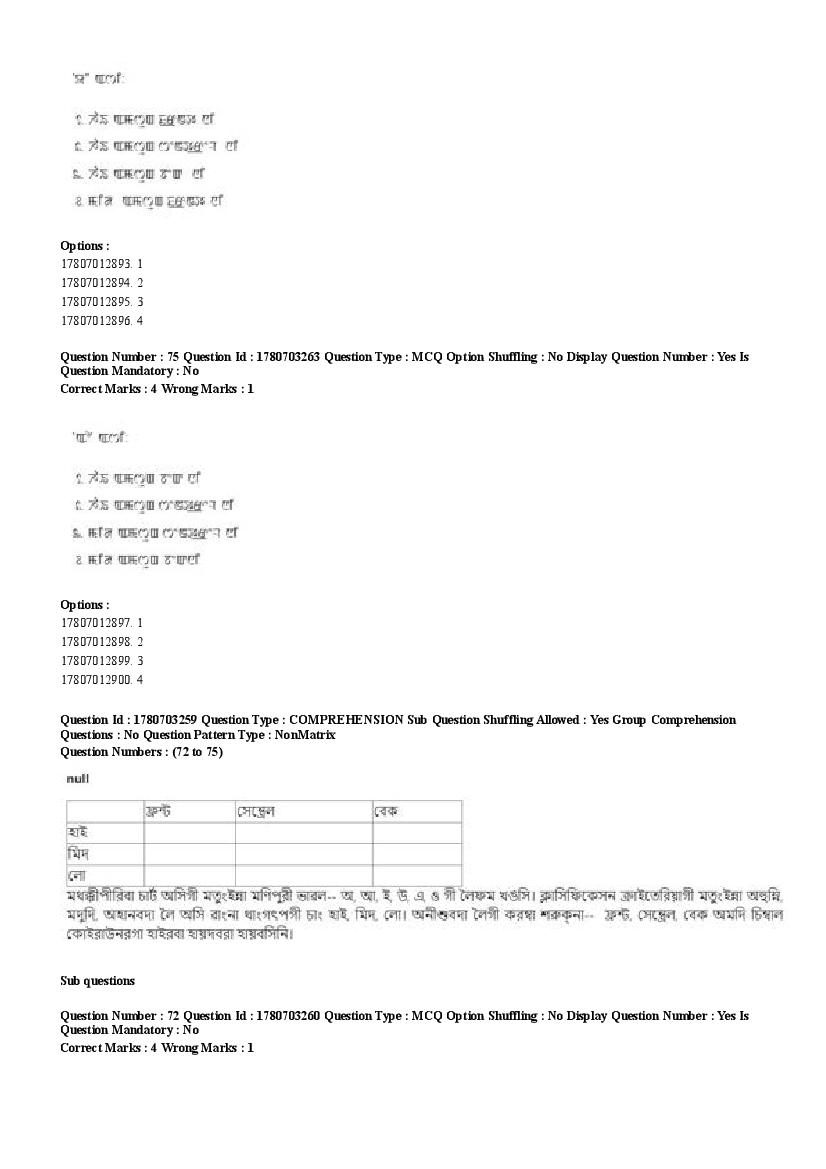 2026 Question papers will be updated soon. The latest available complete cuet pg question paper for Manipuri is given below.