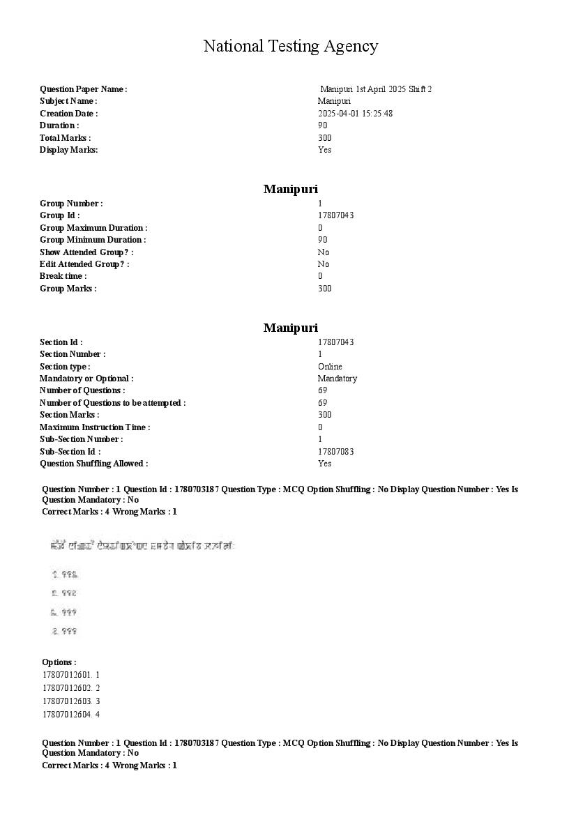CUET PG 2025 Question Paper Manipuri View Download