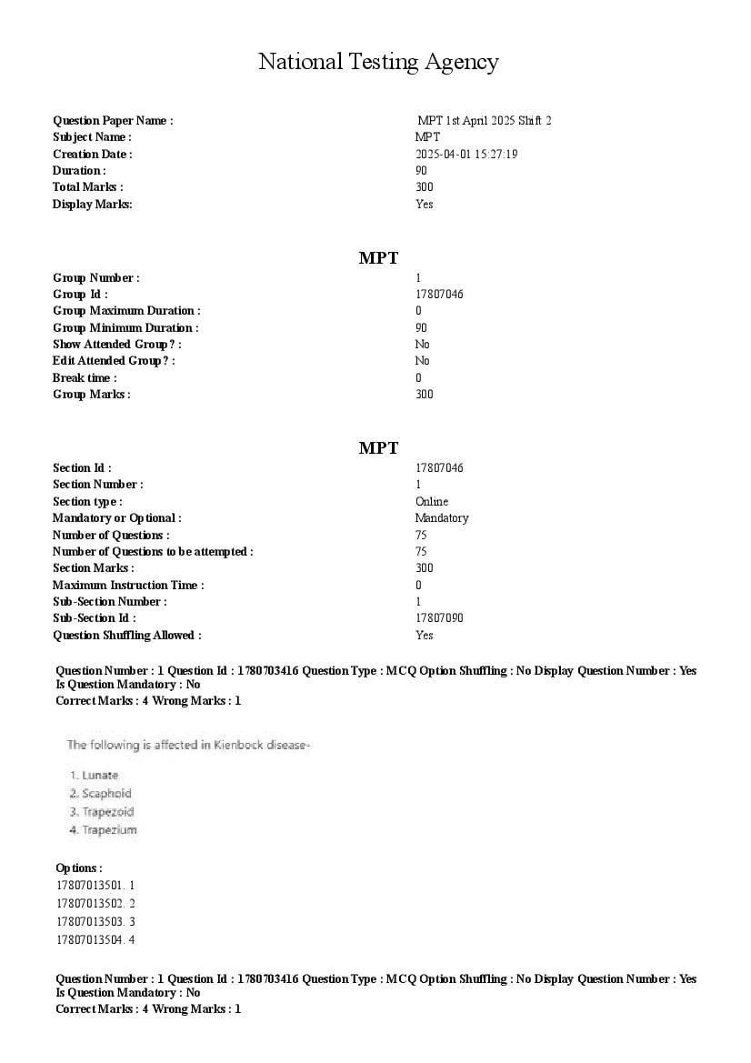 CUET PG MPT Question Paper 2026 has been released. You can now download the CUET PG MPT Previous Year Question Paper PDF here from aglasem. This CUET PG 2025 question paper is for the subject paper MPT and contains the exact questions asked in the test. You can use it to practice for upcoming NTA Common University Entrance Test for Post Graduate for the MPT test.