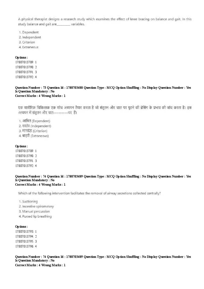 2026 Question papers will be updated soon. The latest available complete cuet pg question paper for MPT is given below.