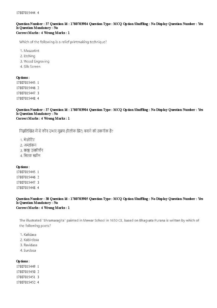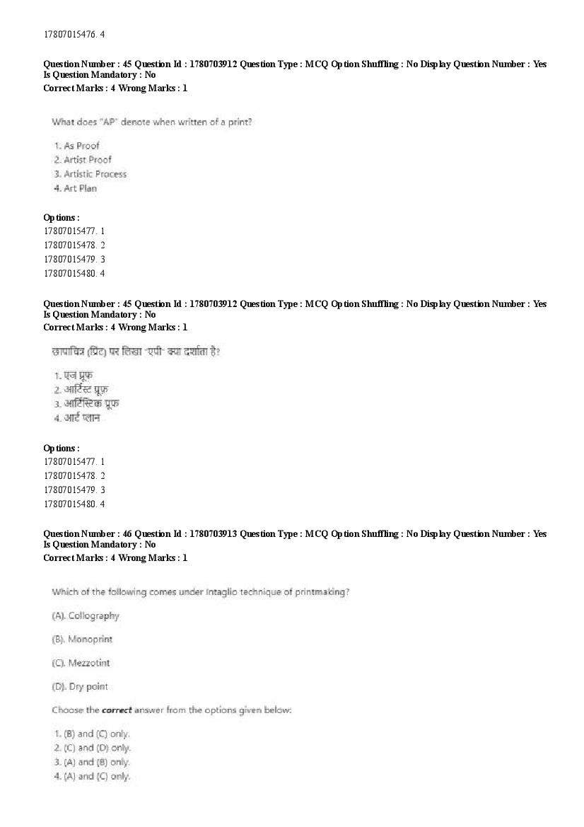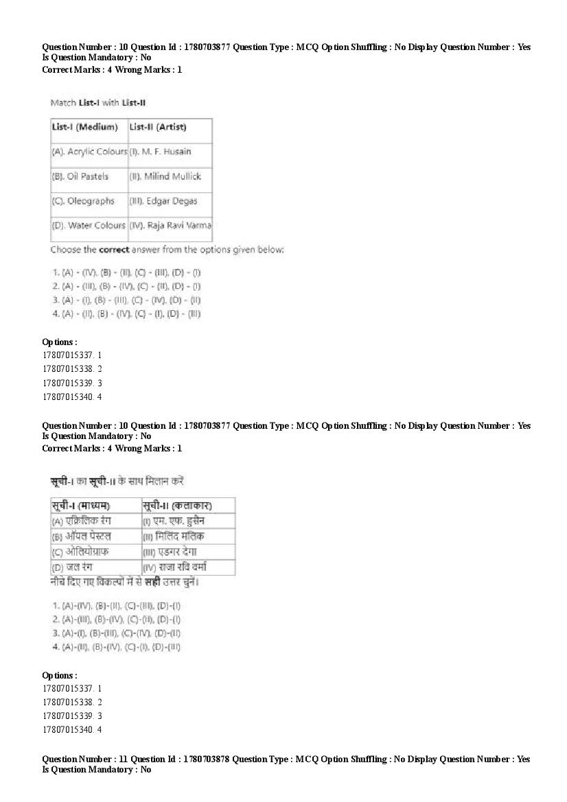 2026 Question papers will be updated soon. The latest available complete cuet pg question paper for Painting is given below.