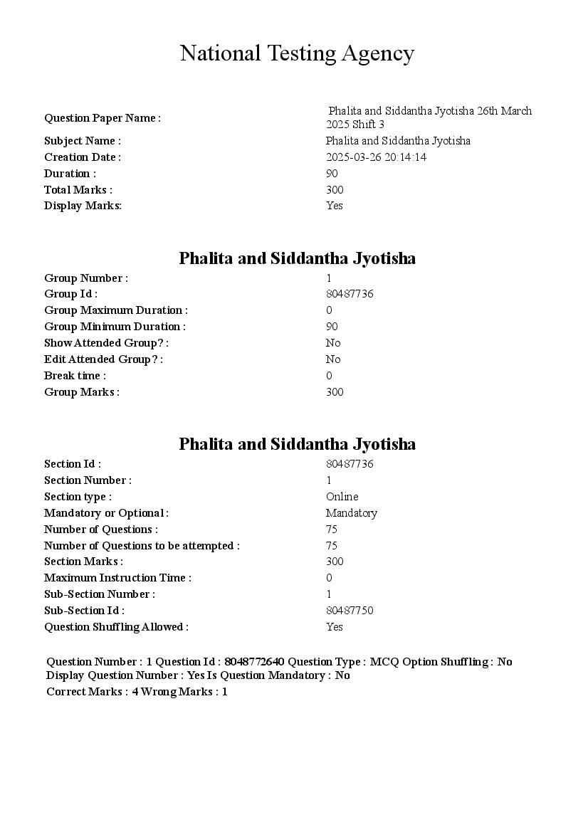 CUET PG Phalita and Siddantha Juotisha Question Paper 2026 has been released. You can now download the CUET PG Phalita and Siddantha Juotisha Previous Year Question Paper PDF here from aglasem. This CUET PG 2025 question paper is for the subject paper Phalita and Siddantha Juotisha and contains the exact questions asked in the test. You can use it to practice for upcoming NTA Common University Entrance Test for Post Graduate for the Phalita and Siddantha Juotisha test.