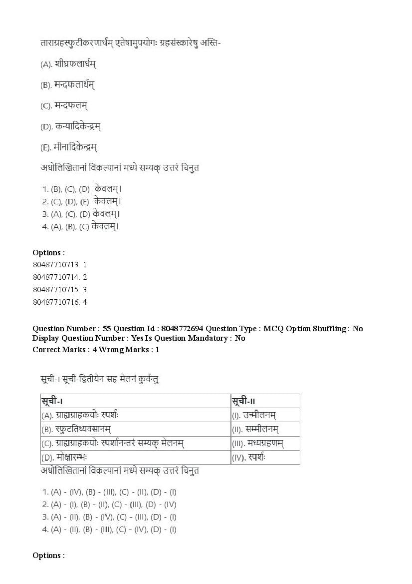 2026 Question papers will be updated soon. The latest available complete cuet pg question paper for Phalita and Siddantha Juotisha is given below.