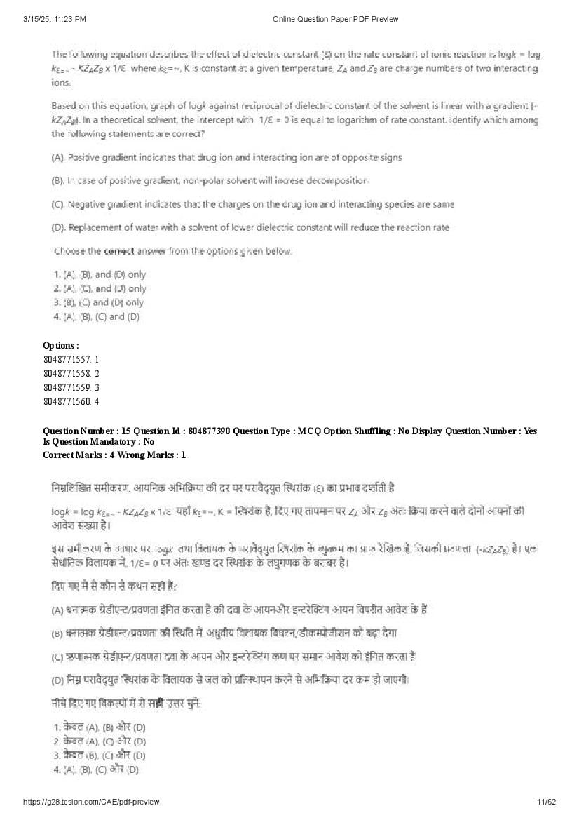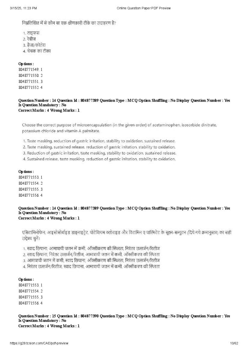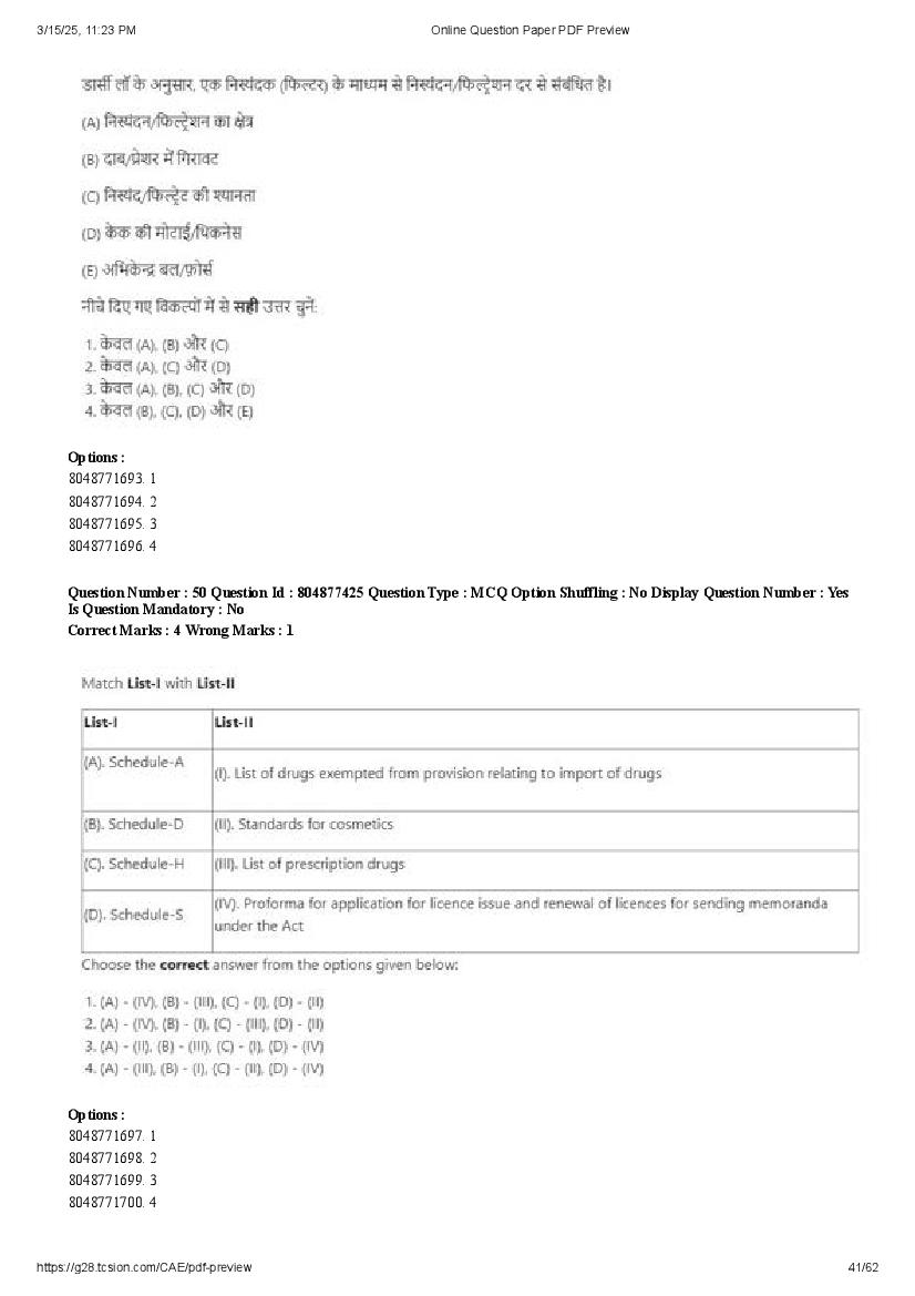 The previous year question paper of CUET PG for Pharmacy held in the year 2026 is as follows.