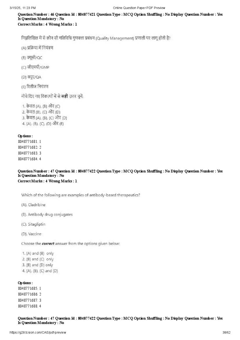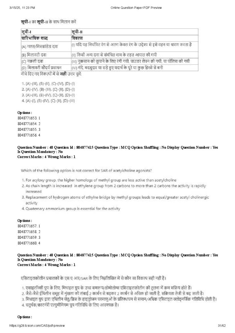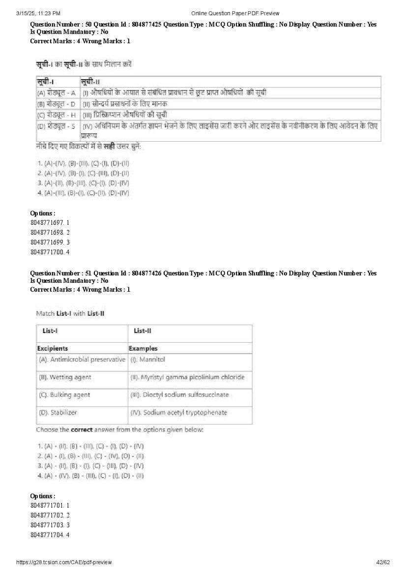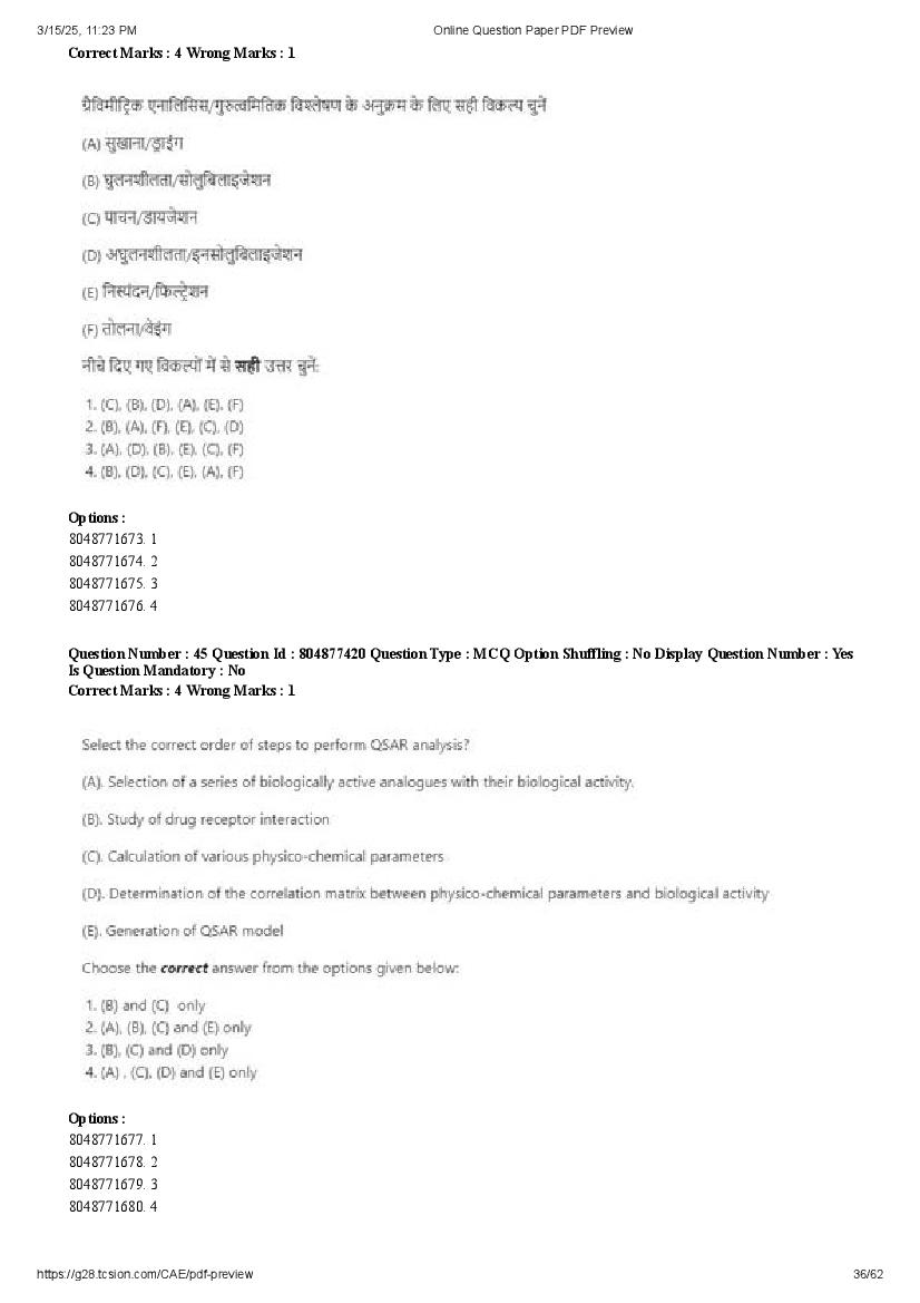 The previous year question paper of CUET PG for Pharmacy held in the year 2026 is as follows.