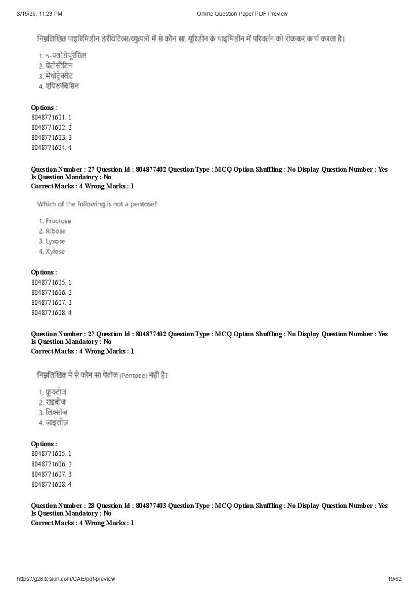 2026 Question papers will be updated soon. The latest available complete cuet pg question paper for Pharmacy is given below.