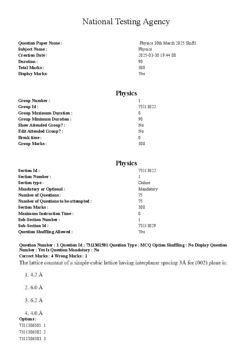CUET PG 2025 Question Paper Physics View Download