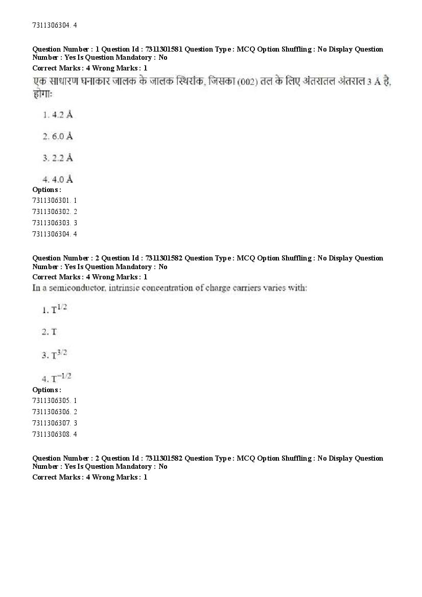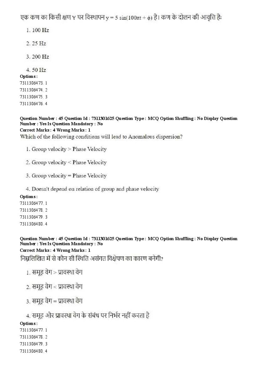 2026 Question papers will be updated soon. The latest available complete cuet pg question paper for Physics is given below.