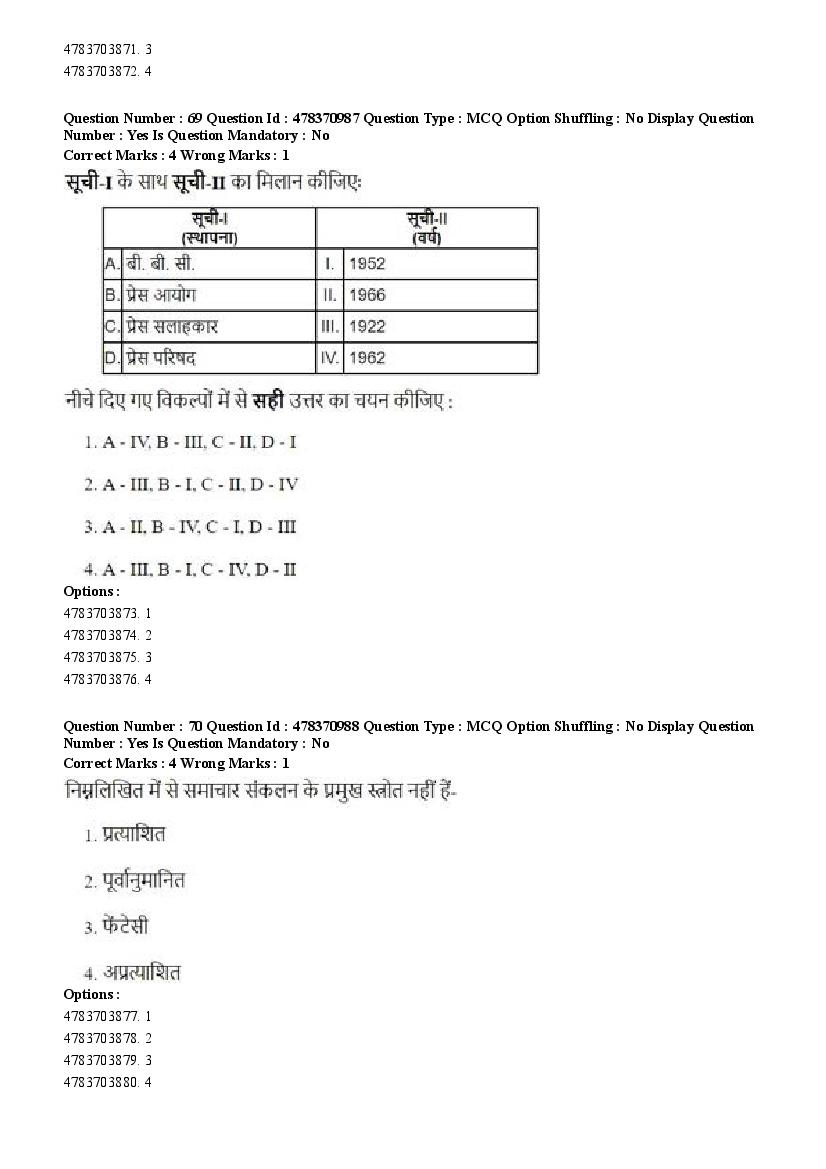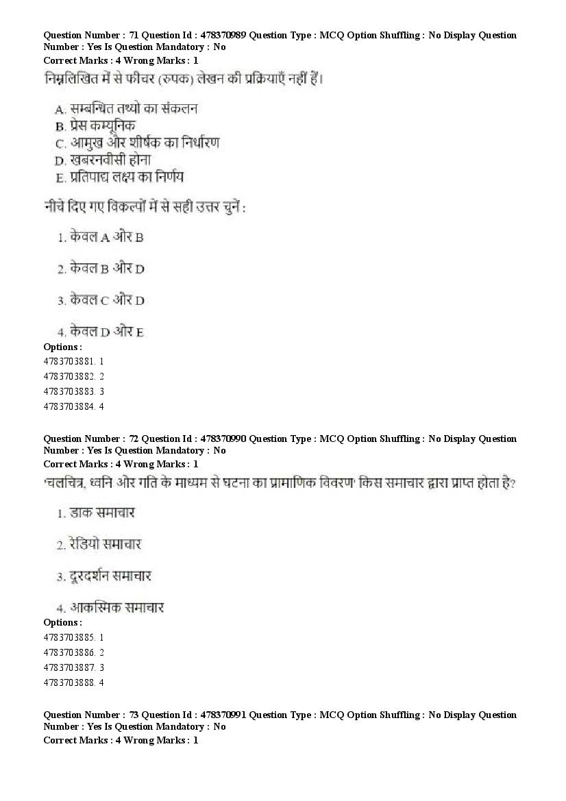 2026 Question papers will be updated soon. The latest available complete cuet pg question paper for Prayojanmoolak Patrakarita is given below.