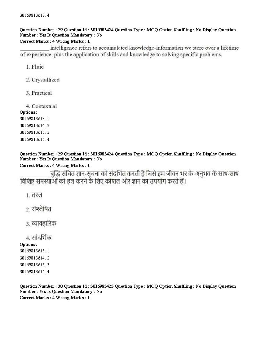 The previous year question paper of CUET PG for Psychology held in the year 2026 is as follows.