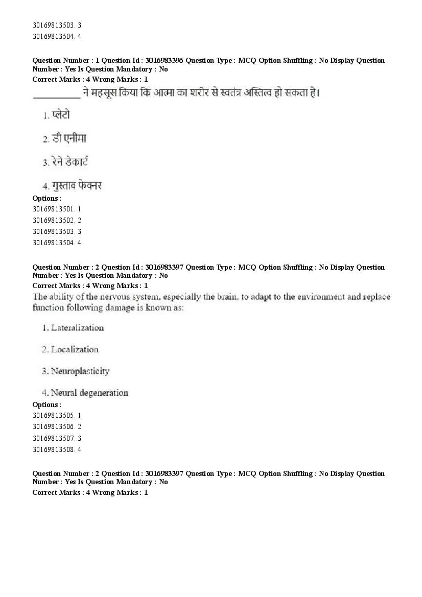 2026 Question papers will be updated soon. The latest available complete cuet pg question paper for Psychology is given below.
