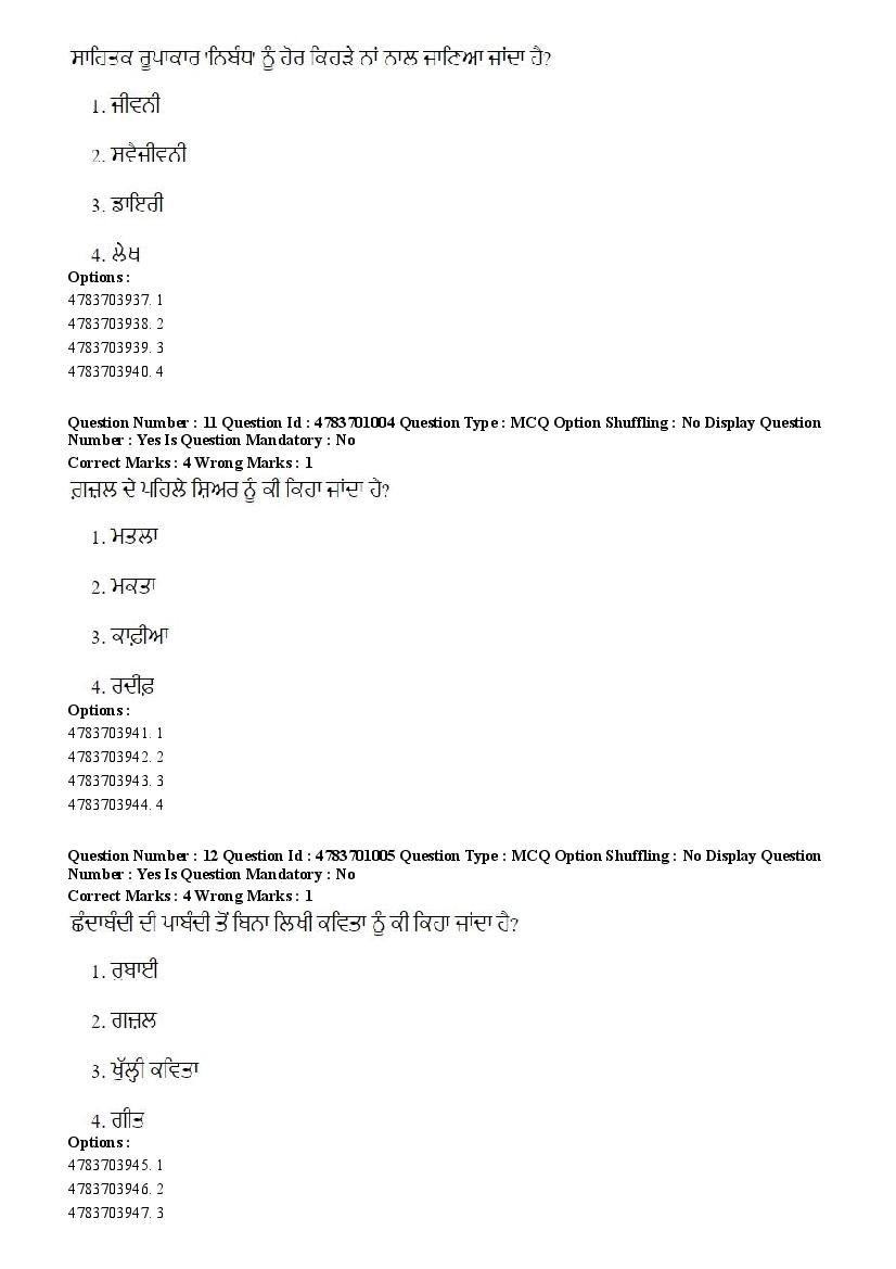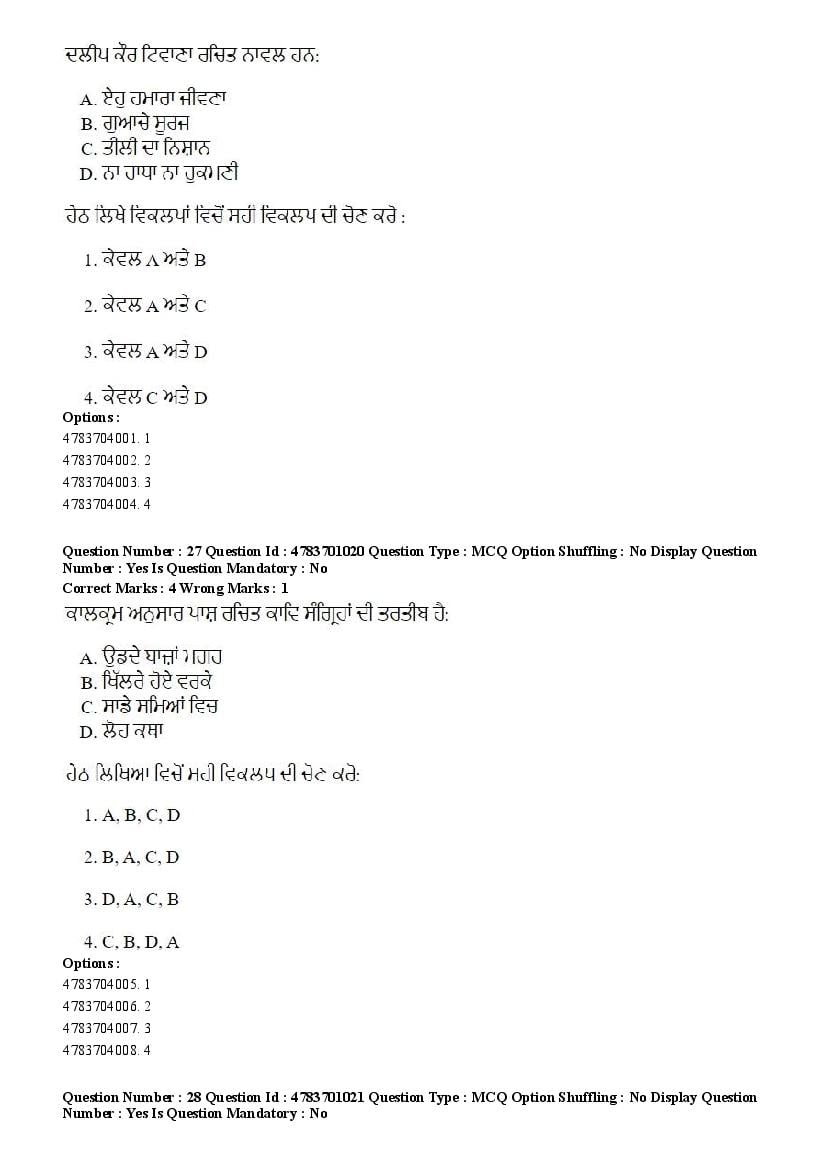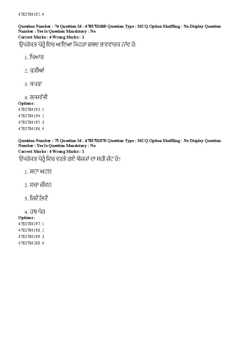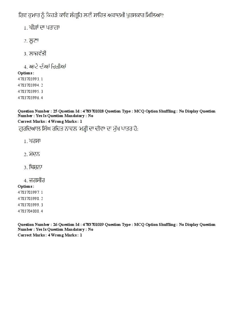 2026 Question papers will be updated soon. The latest available complete cuet pg question paper for Punjabi is given below.