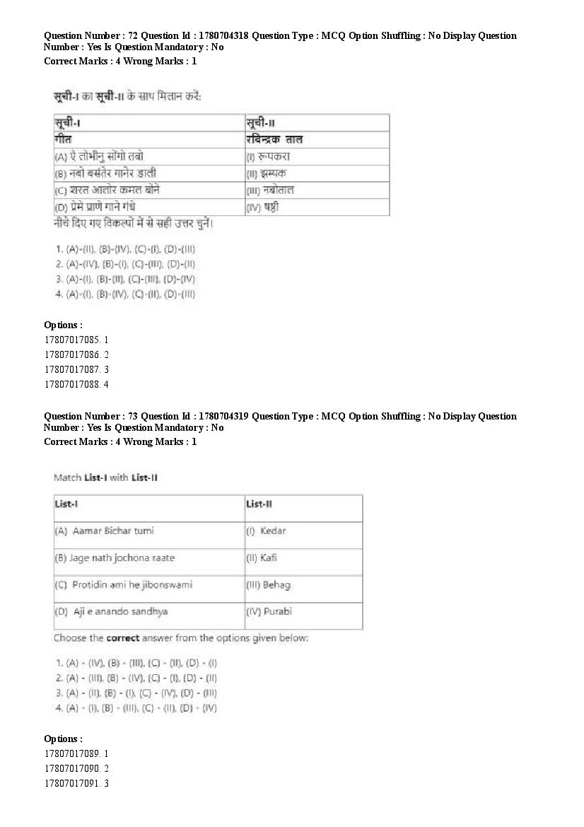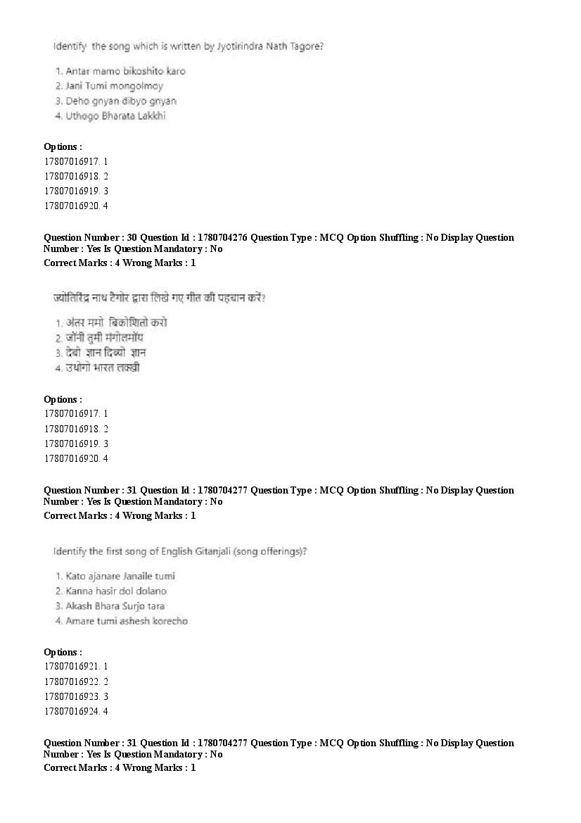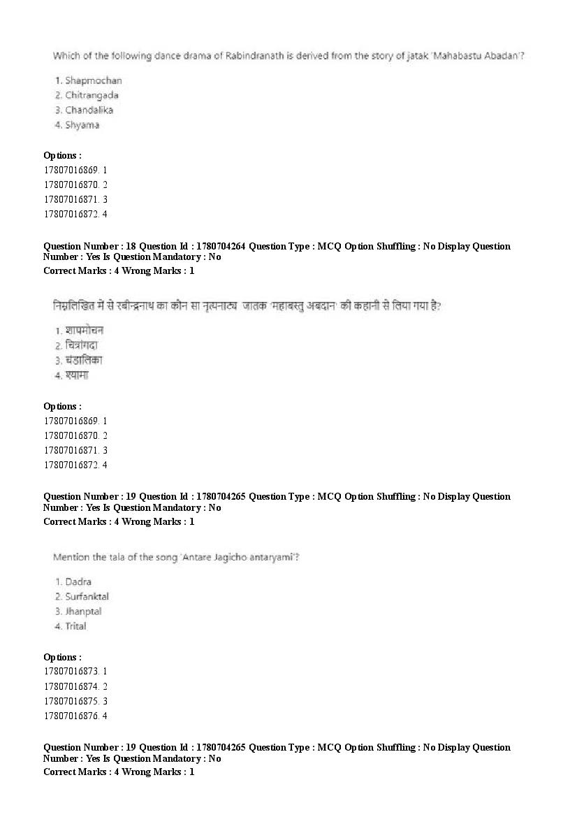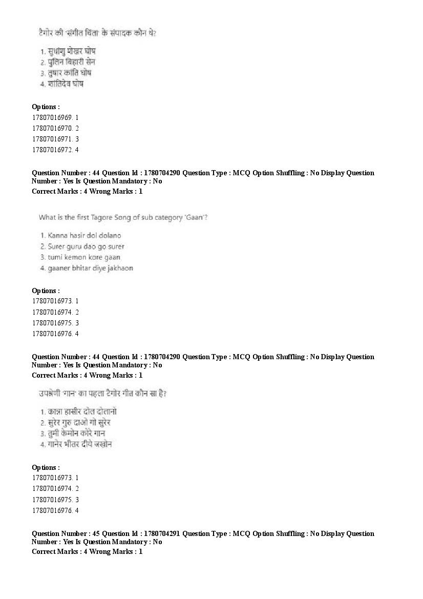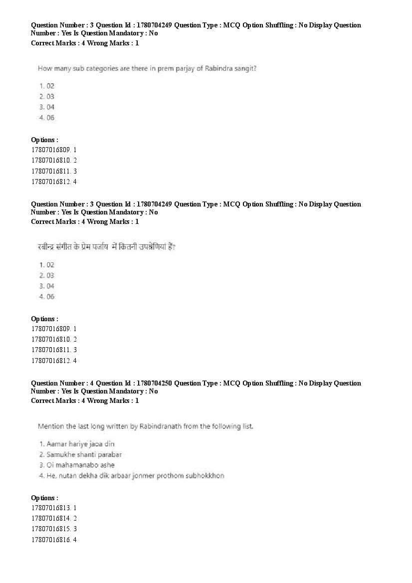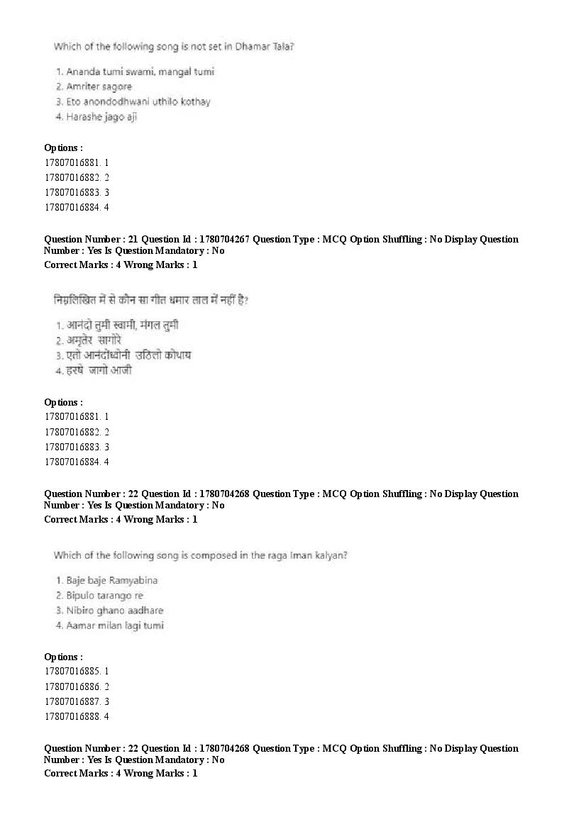2026 Question papers will be updated soon. The latest available complete cuet pg question paper for Rabindra Sangit is given below.
