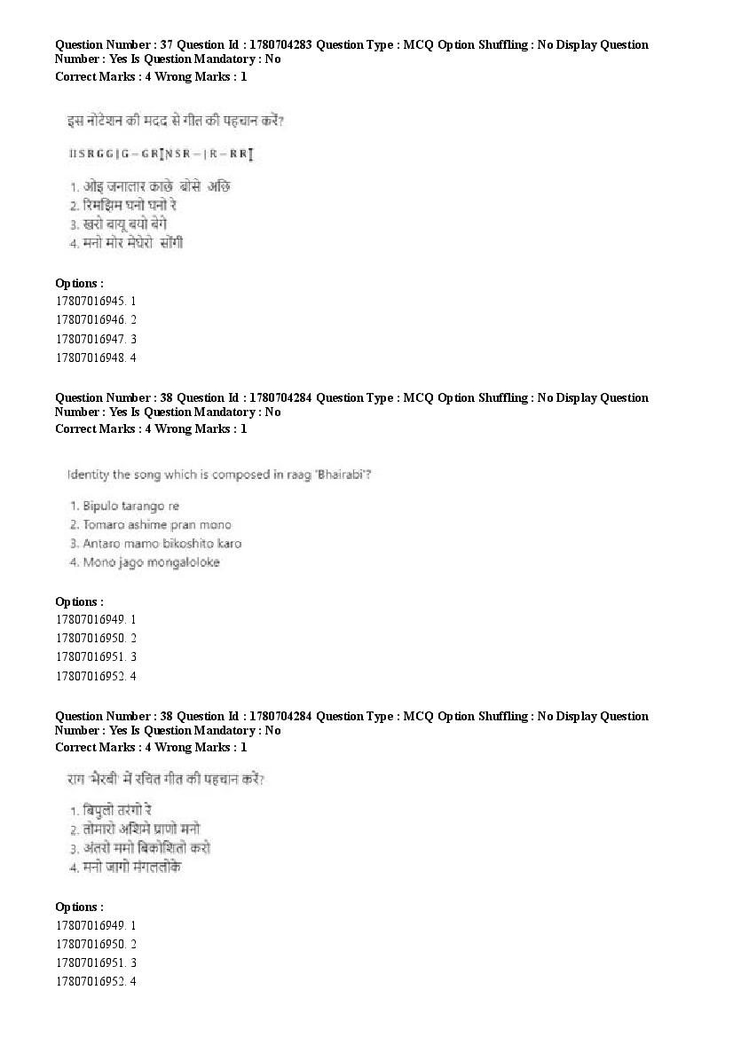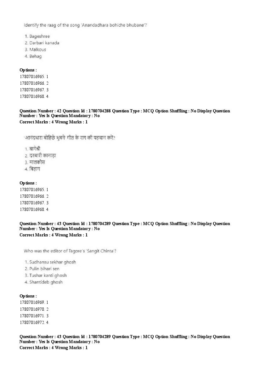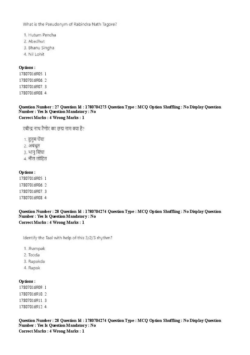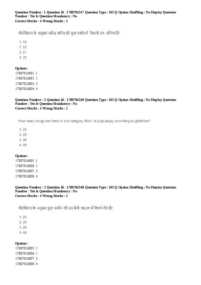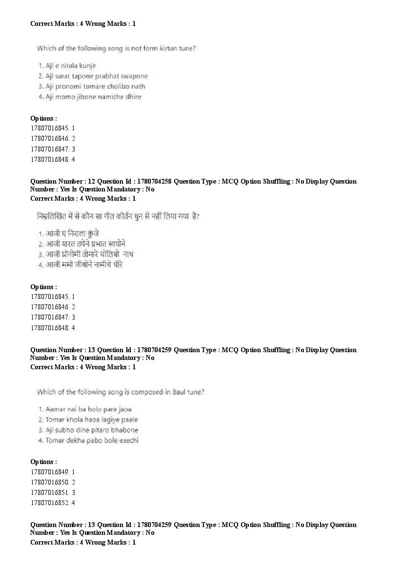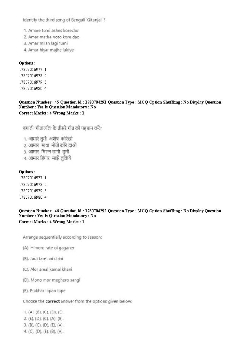 2026 Question papers will be updated soon. The latest available complete cuet pg question paper for Rabindra Sangit is given below.