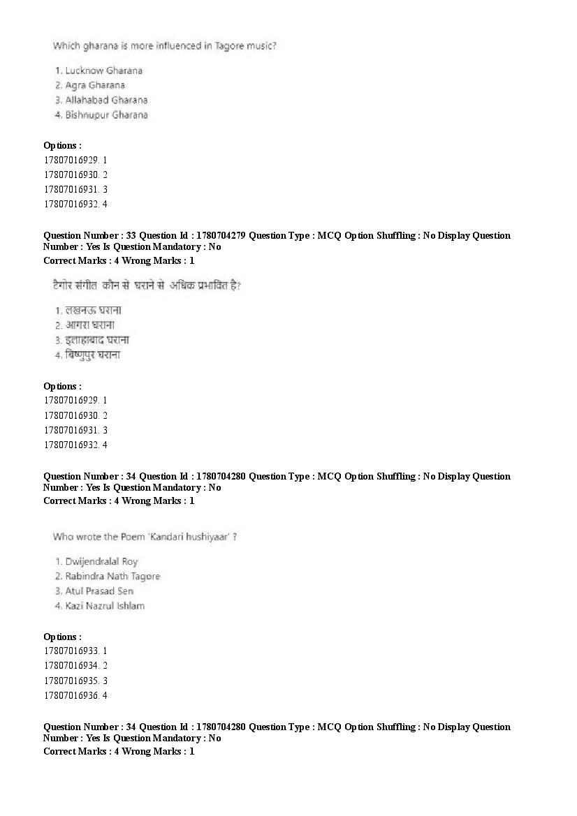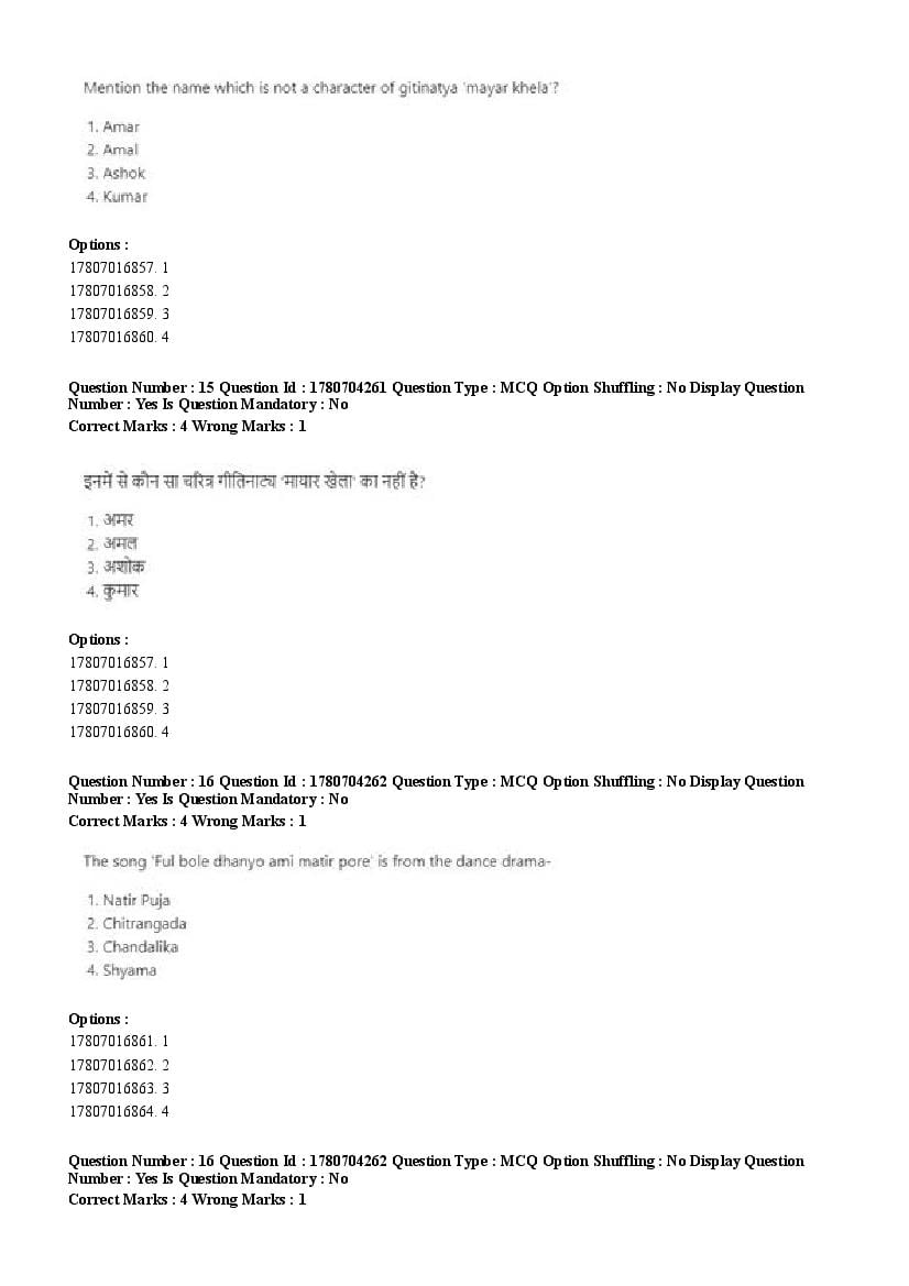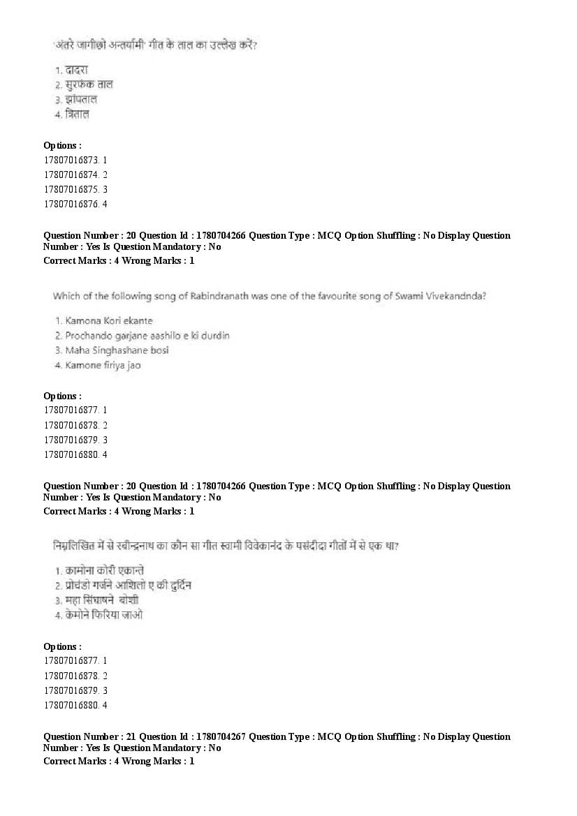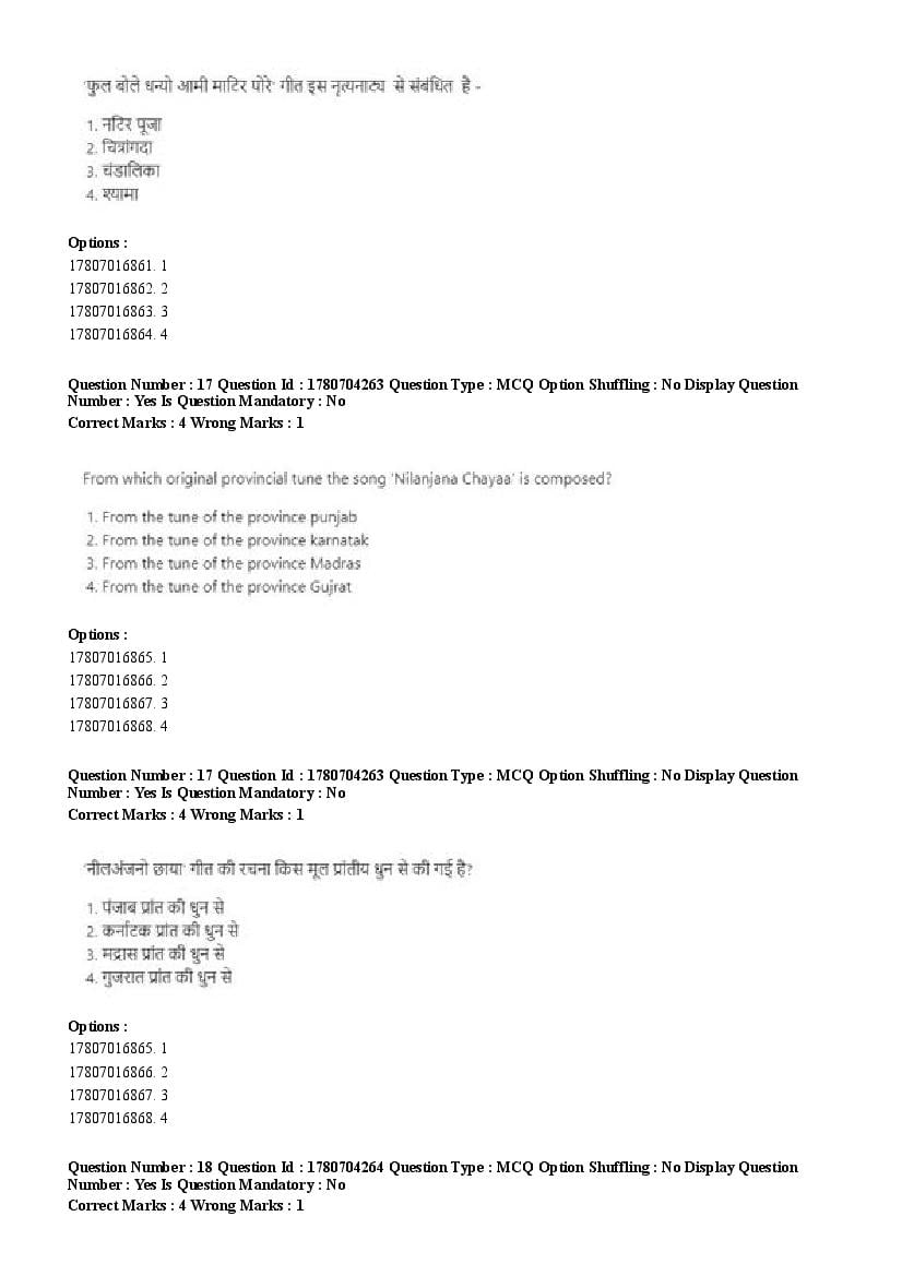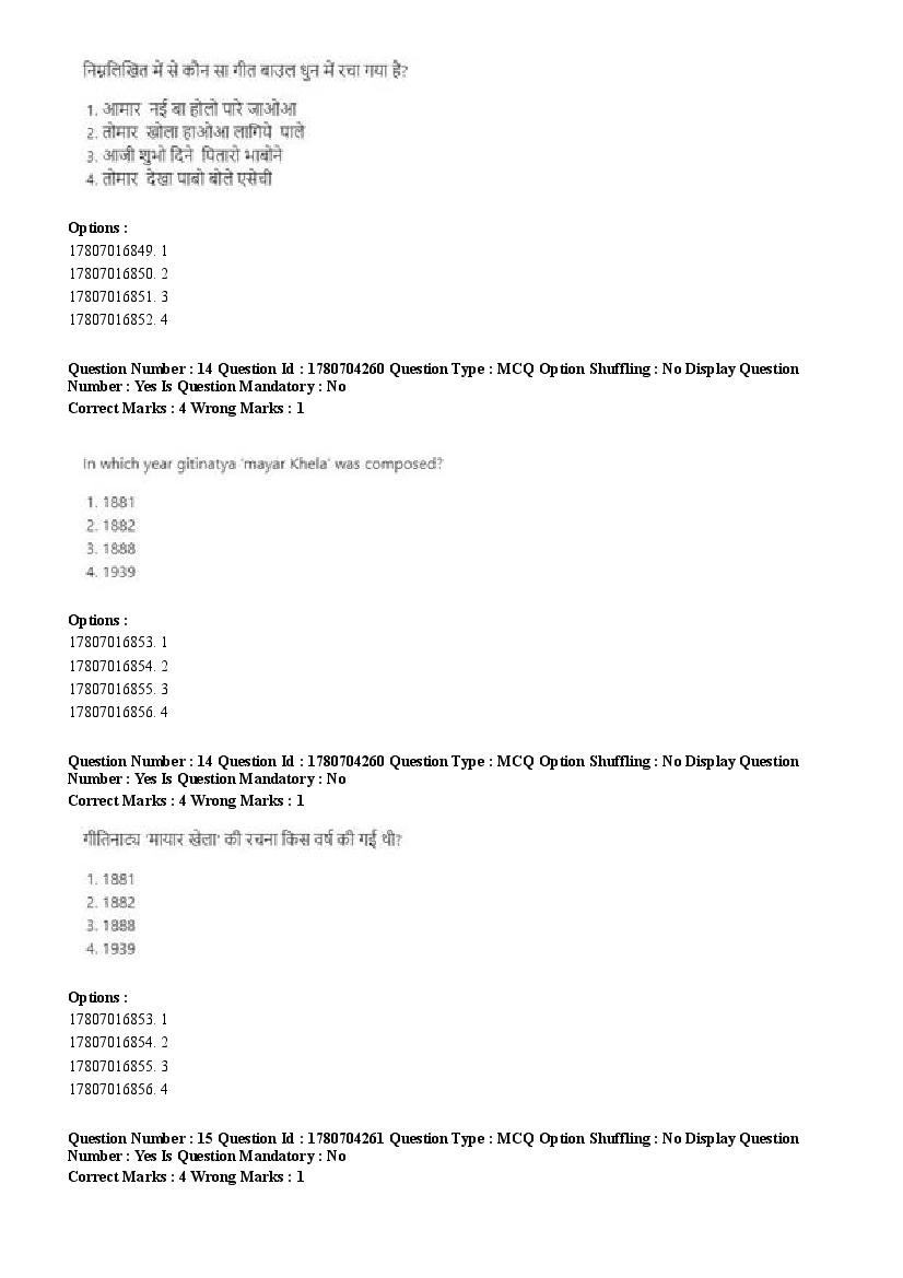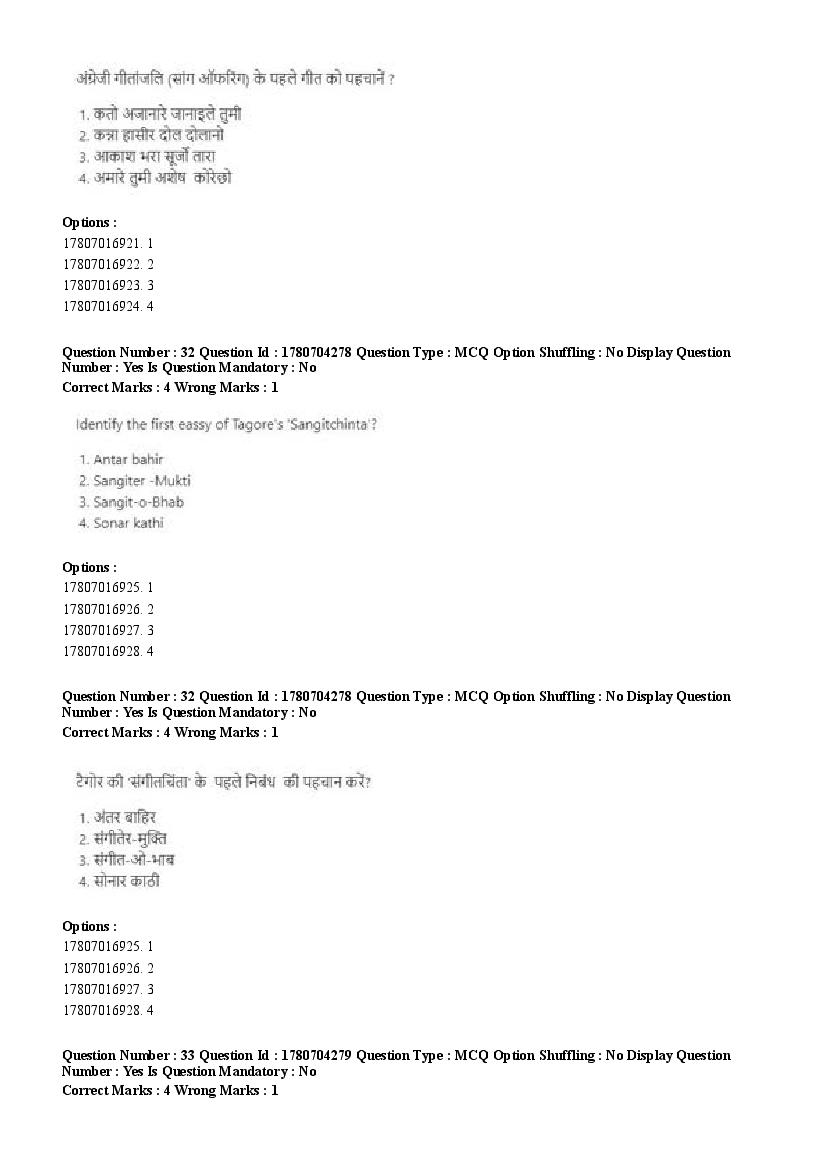 2026 Question papers will be updated soon. The latest available complete cuet pg question paper for Rabindra Sangit is given below.