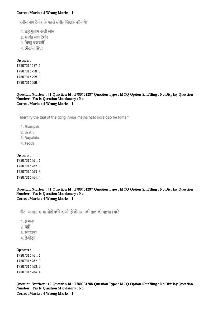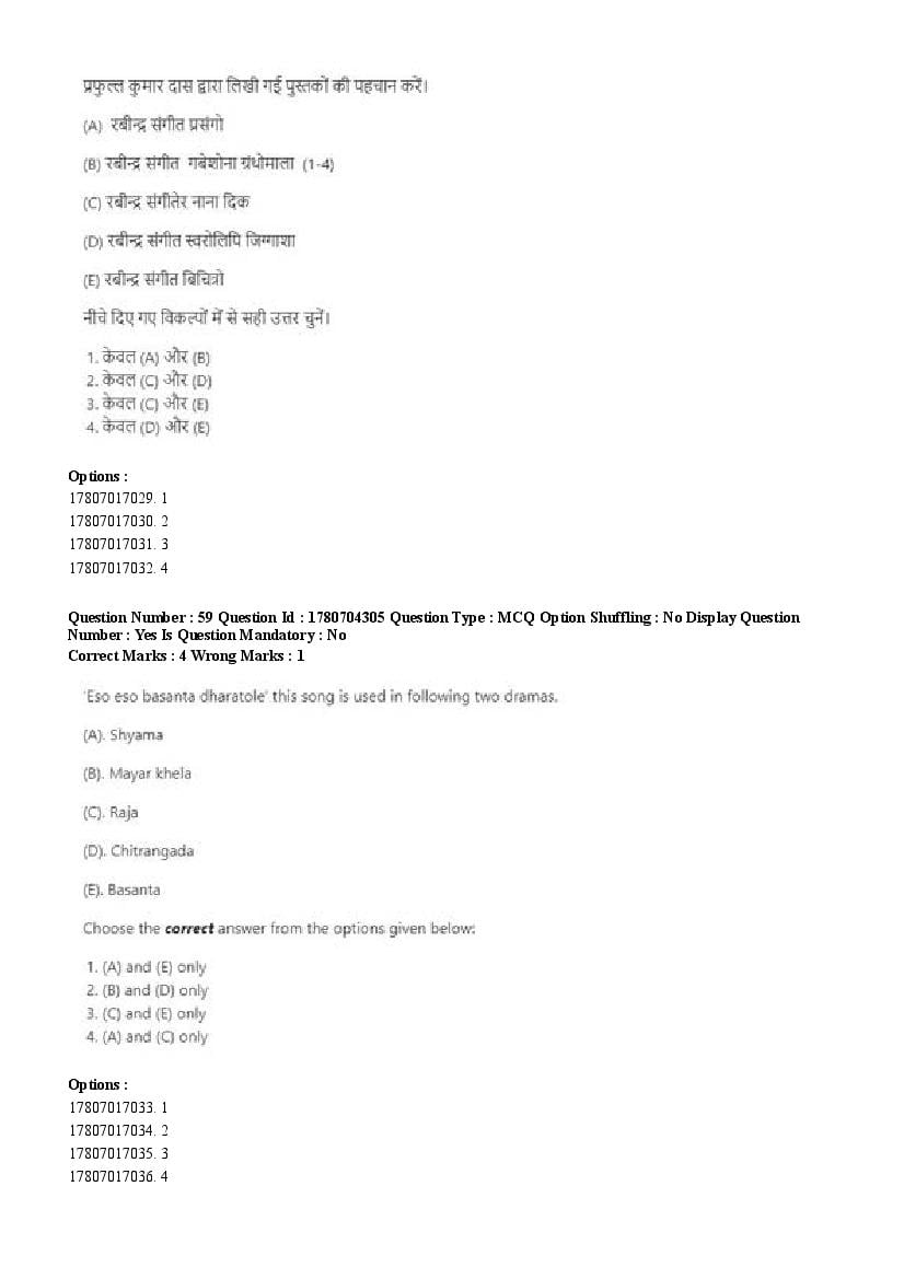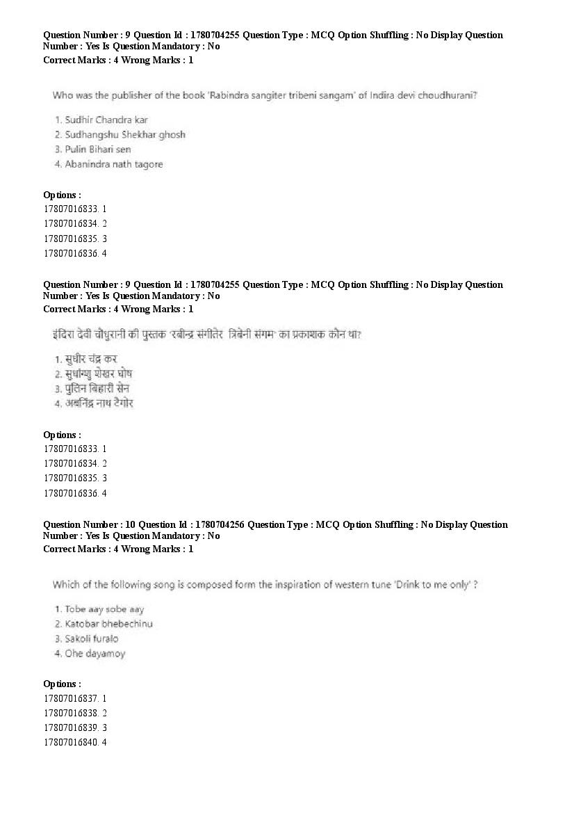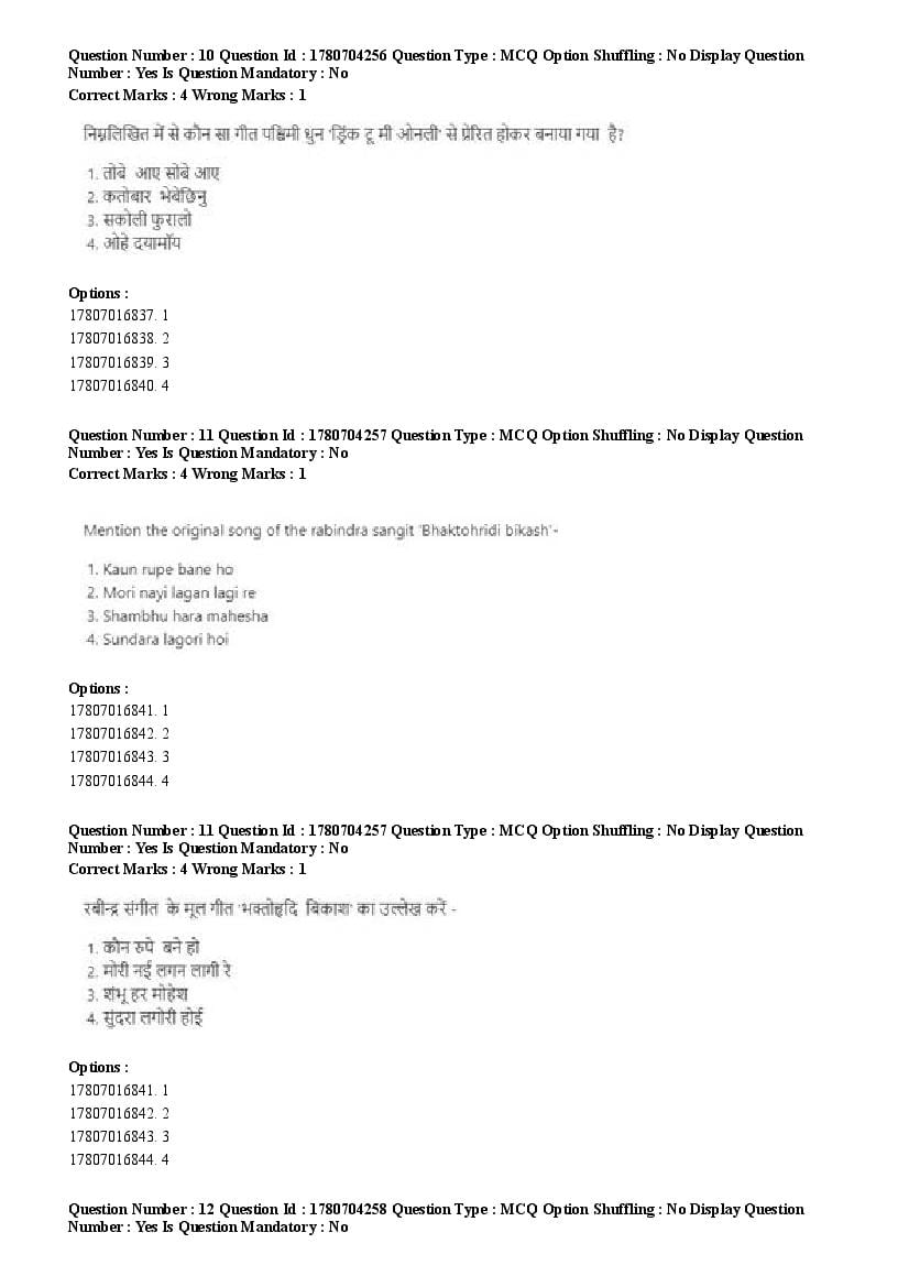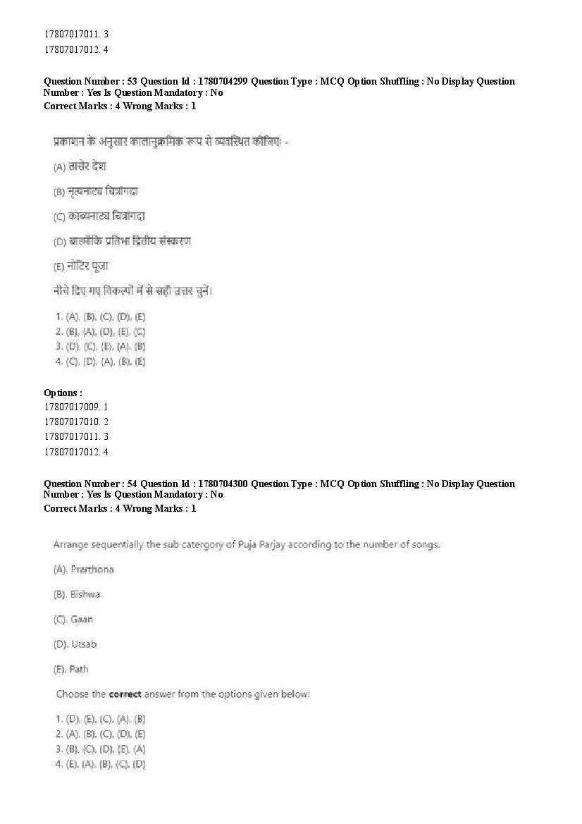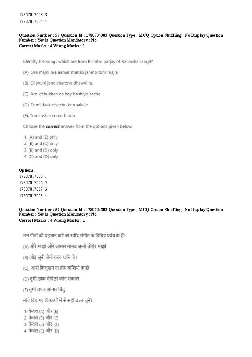 2026 Question papers will be updated soon. The latest available complete cuet pg question paper for Rabindra Sangit is given below.