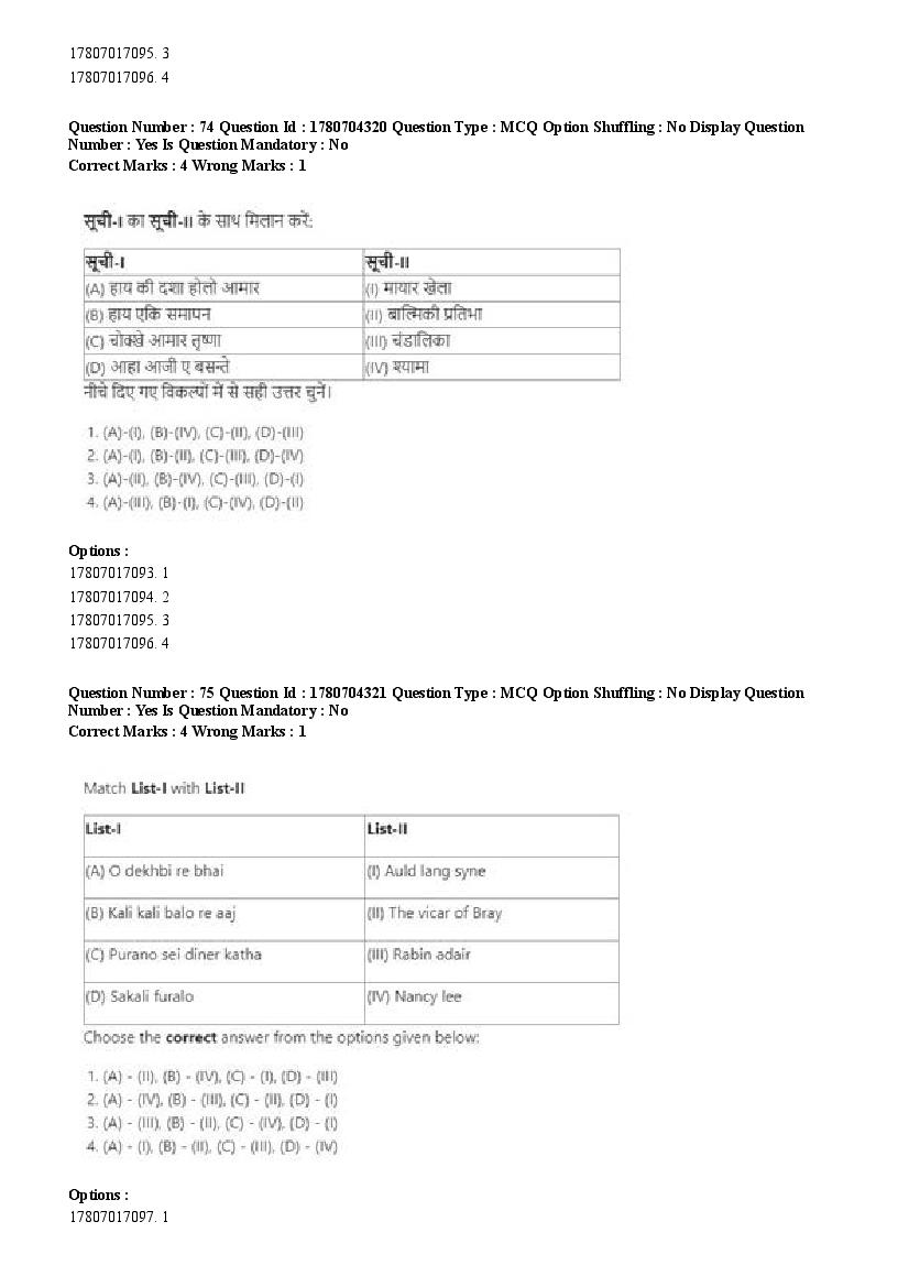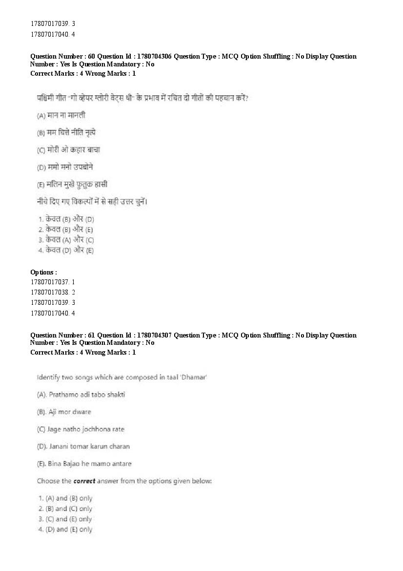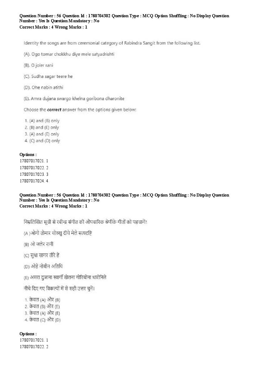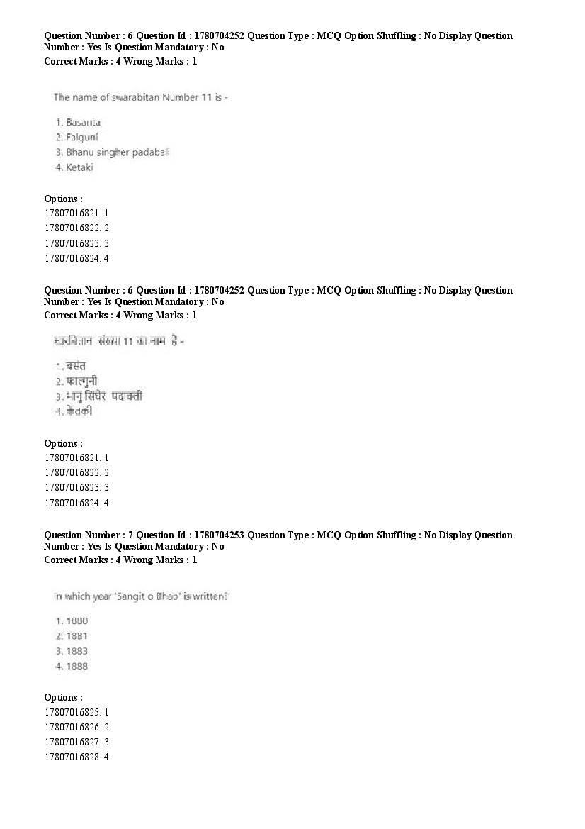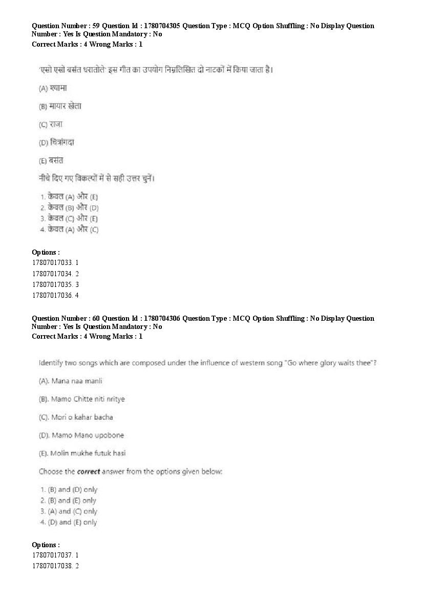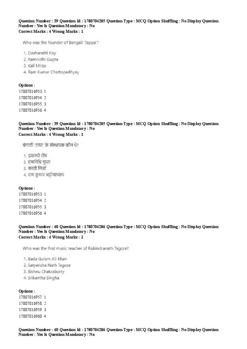 2026 Question papers will be updated soon. The latest available complete cuet pg question paper for Rabindra Sangit is given below.