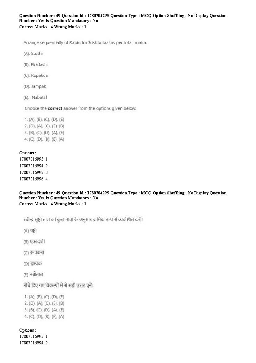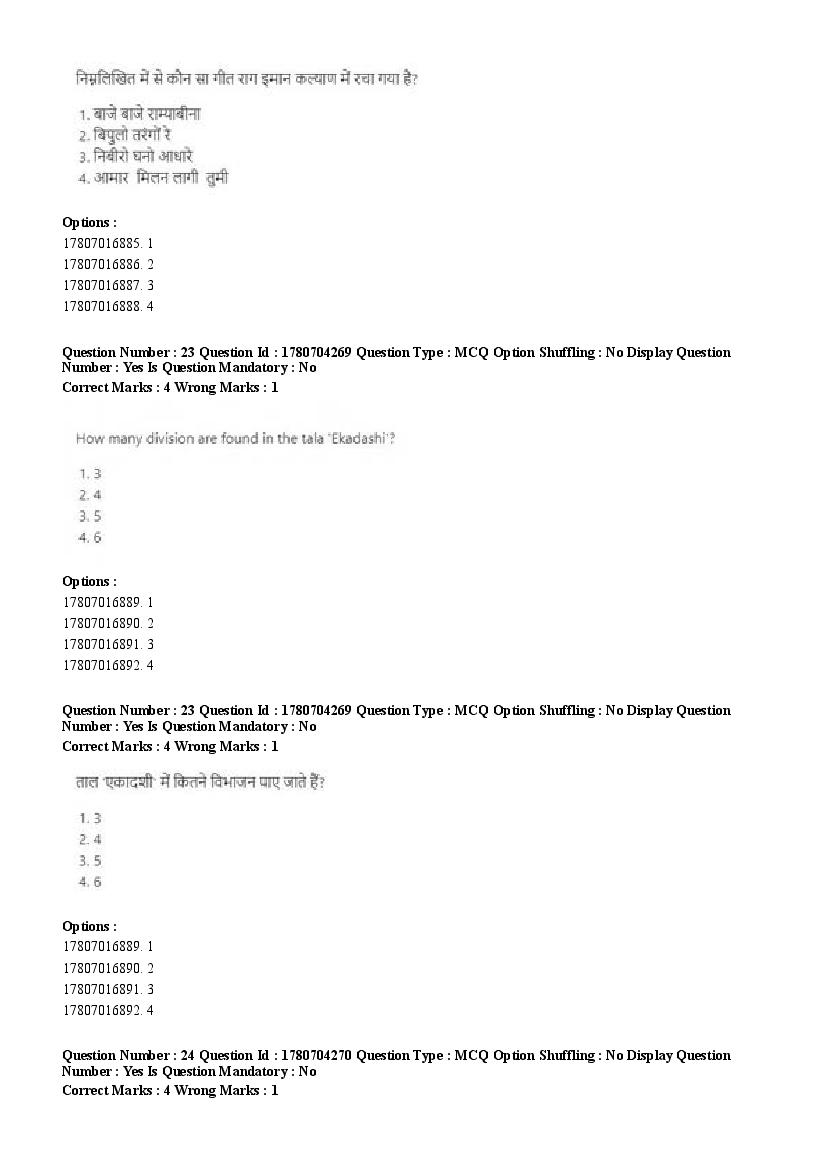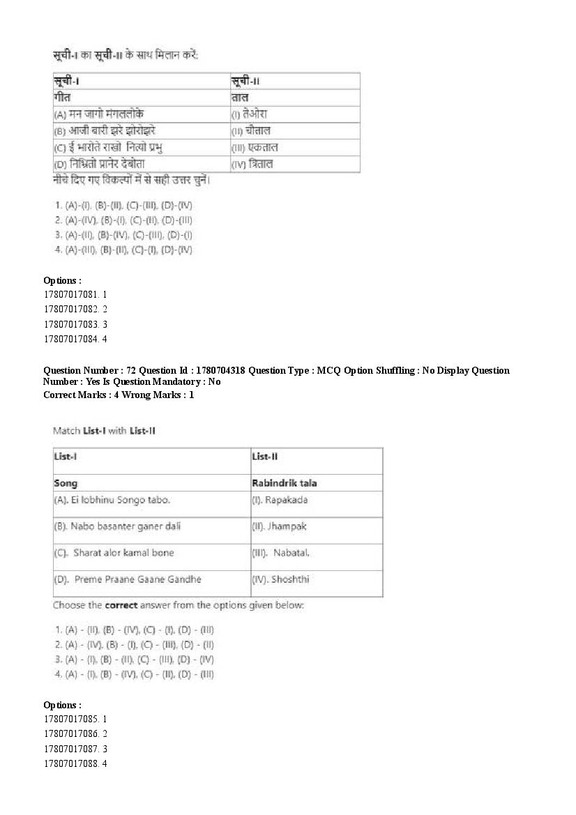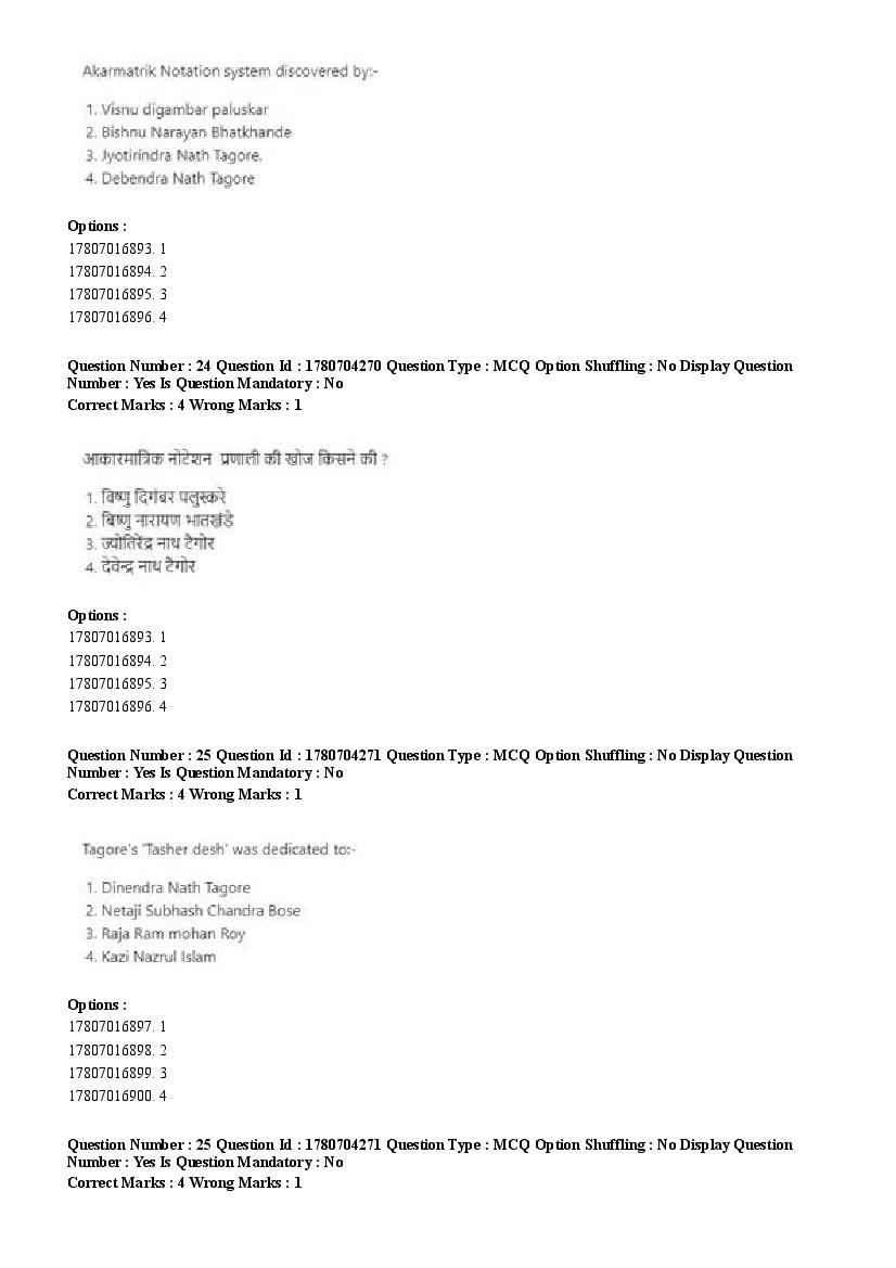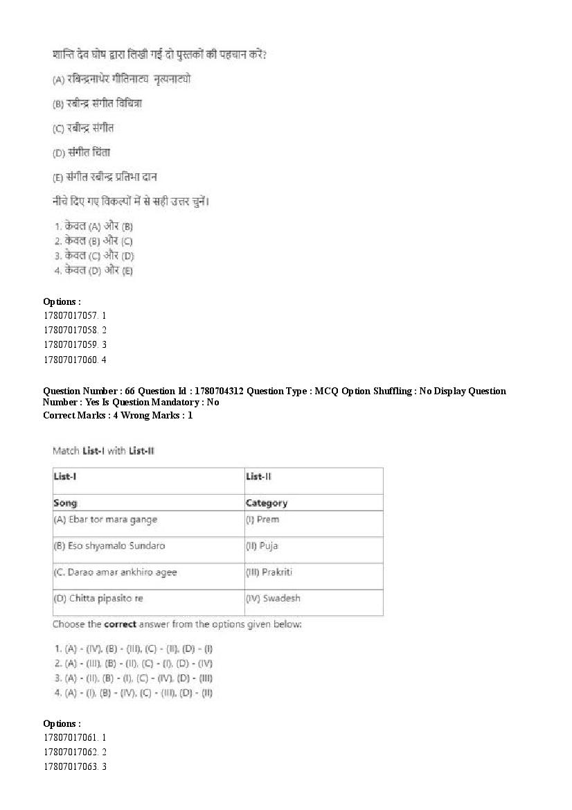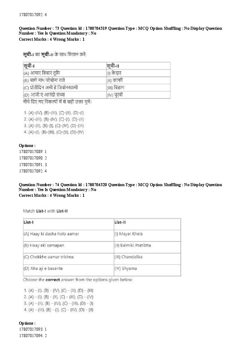 2026 Question papers will be updated soon. The latest available complete cuet pg question paper for Rabindra Sangit is given below.