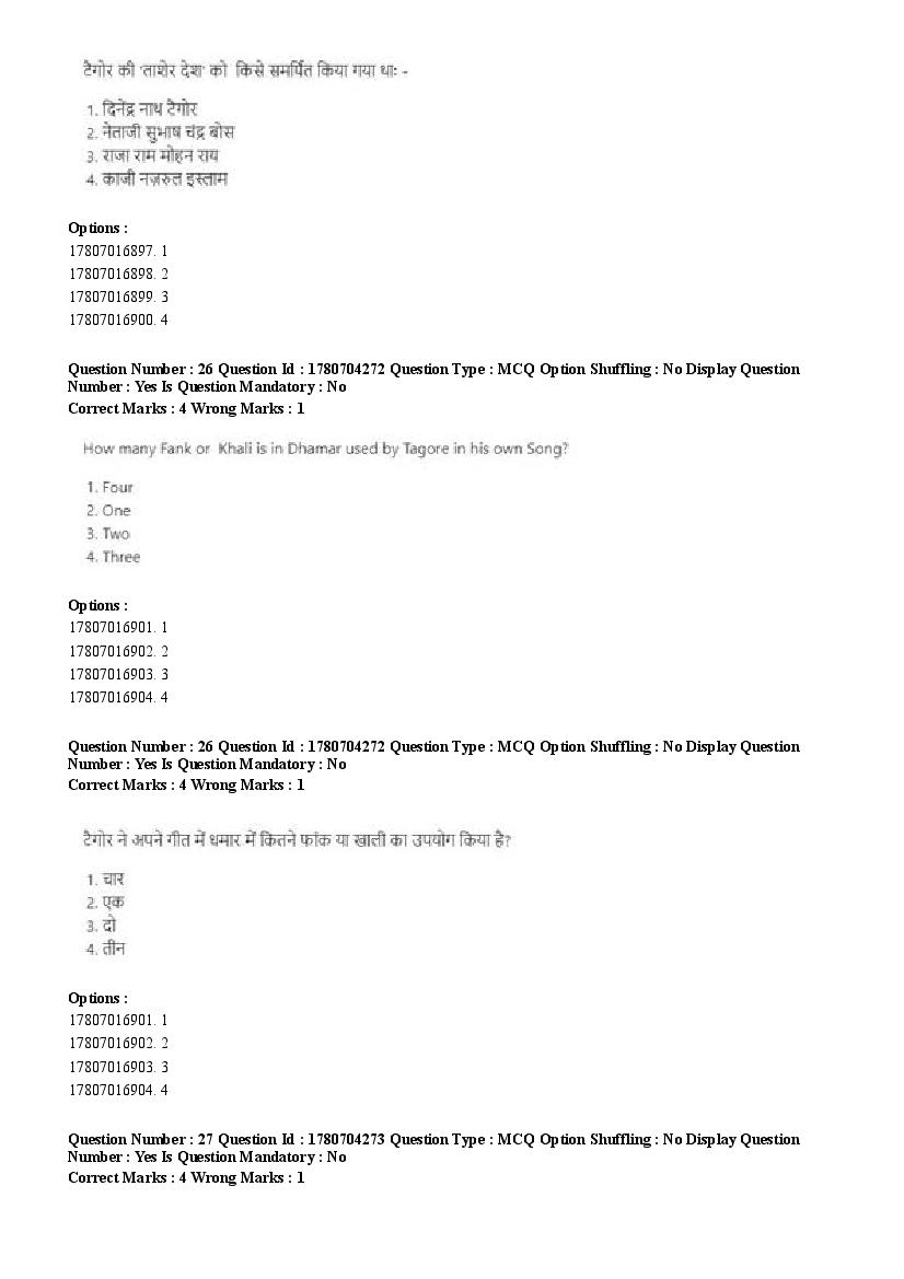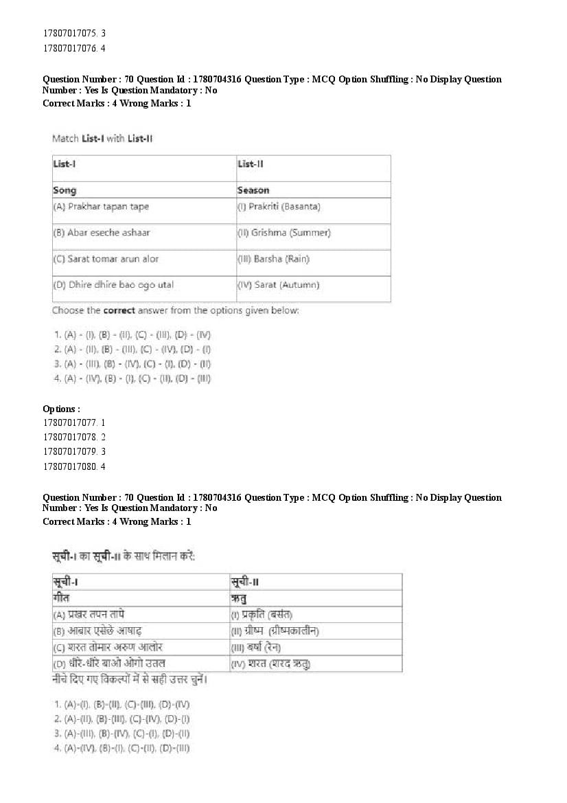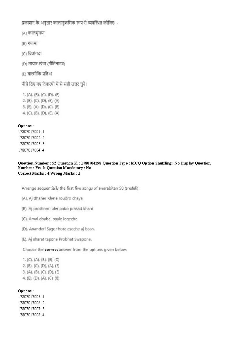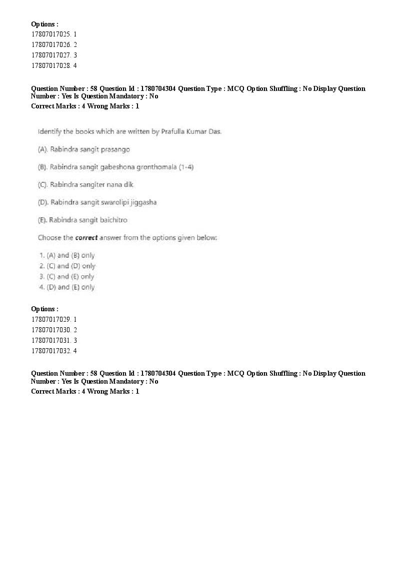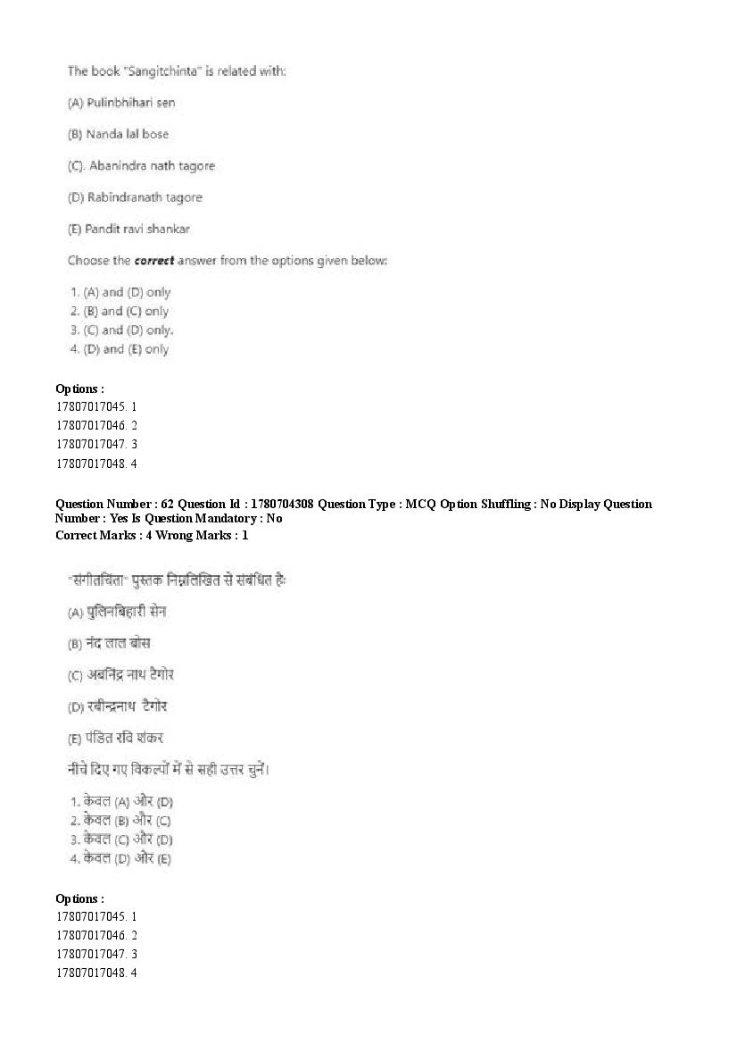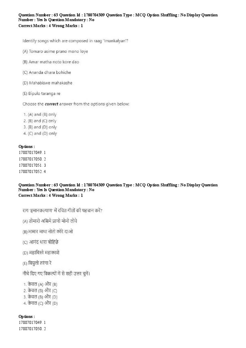 2026 Question papers will be updated soon. The latest available complete cuet pg question paper for Rabindra Sangit is given below.