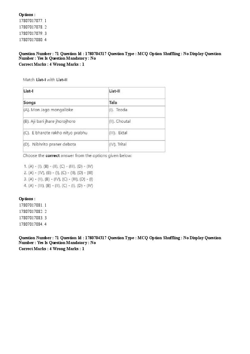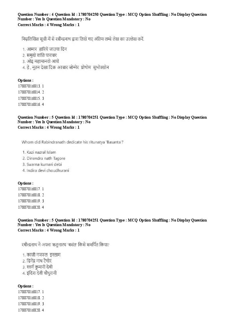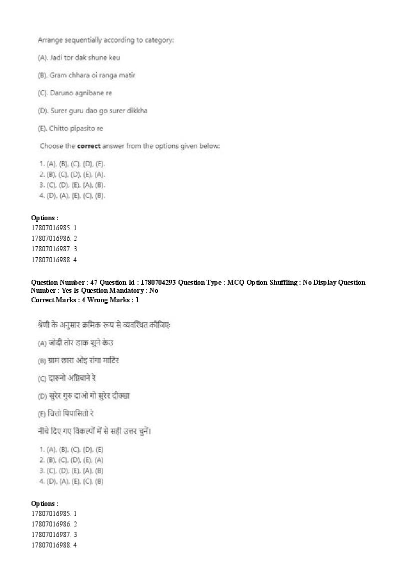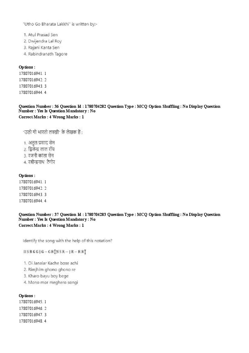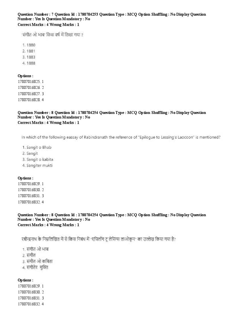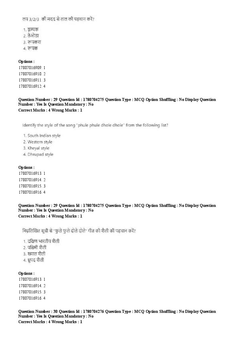 2026 Question papers will be updated soon. The latest available complete cuet pg question paper for Rabindra Sangit is given below.