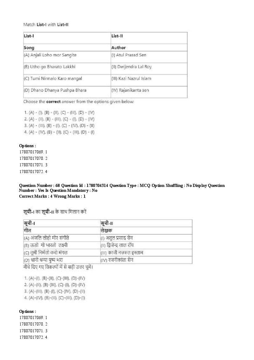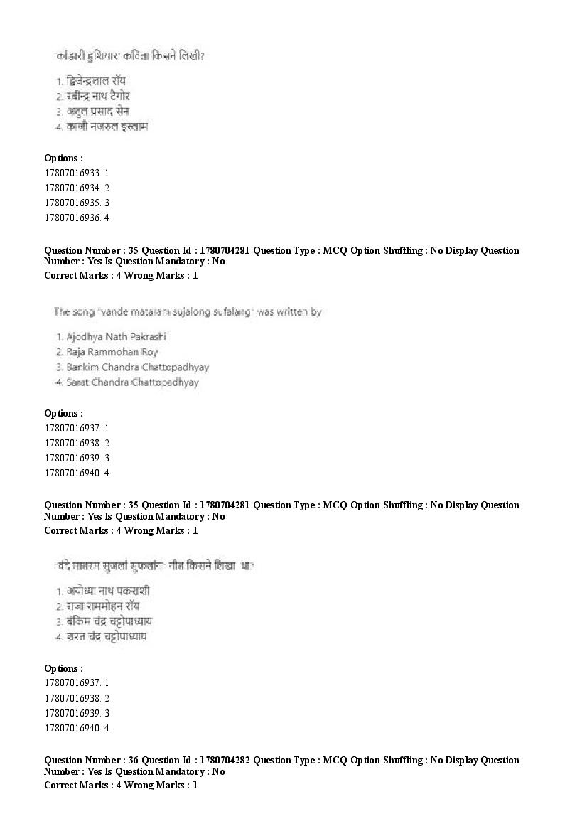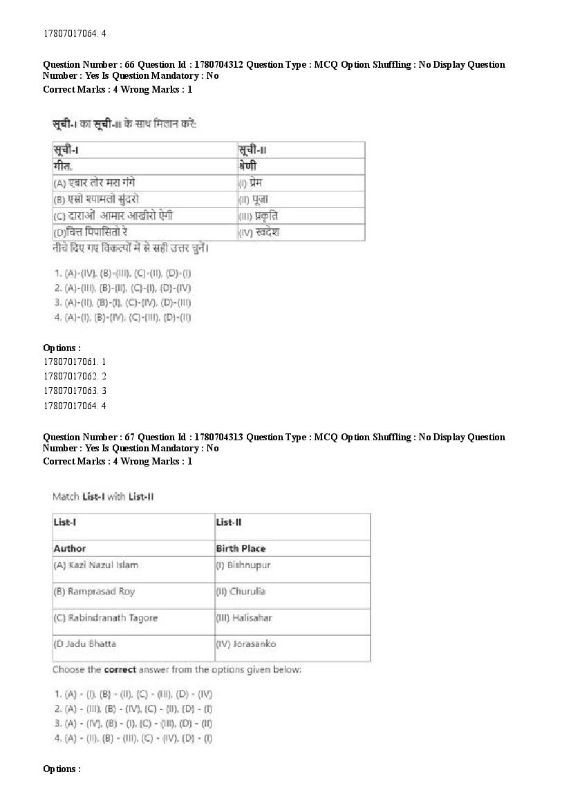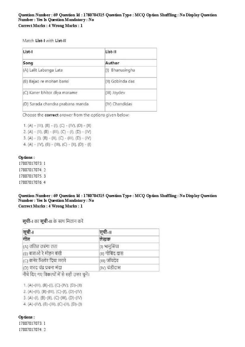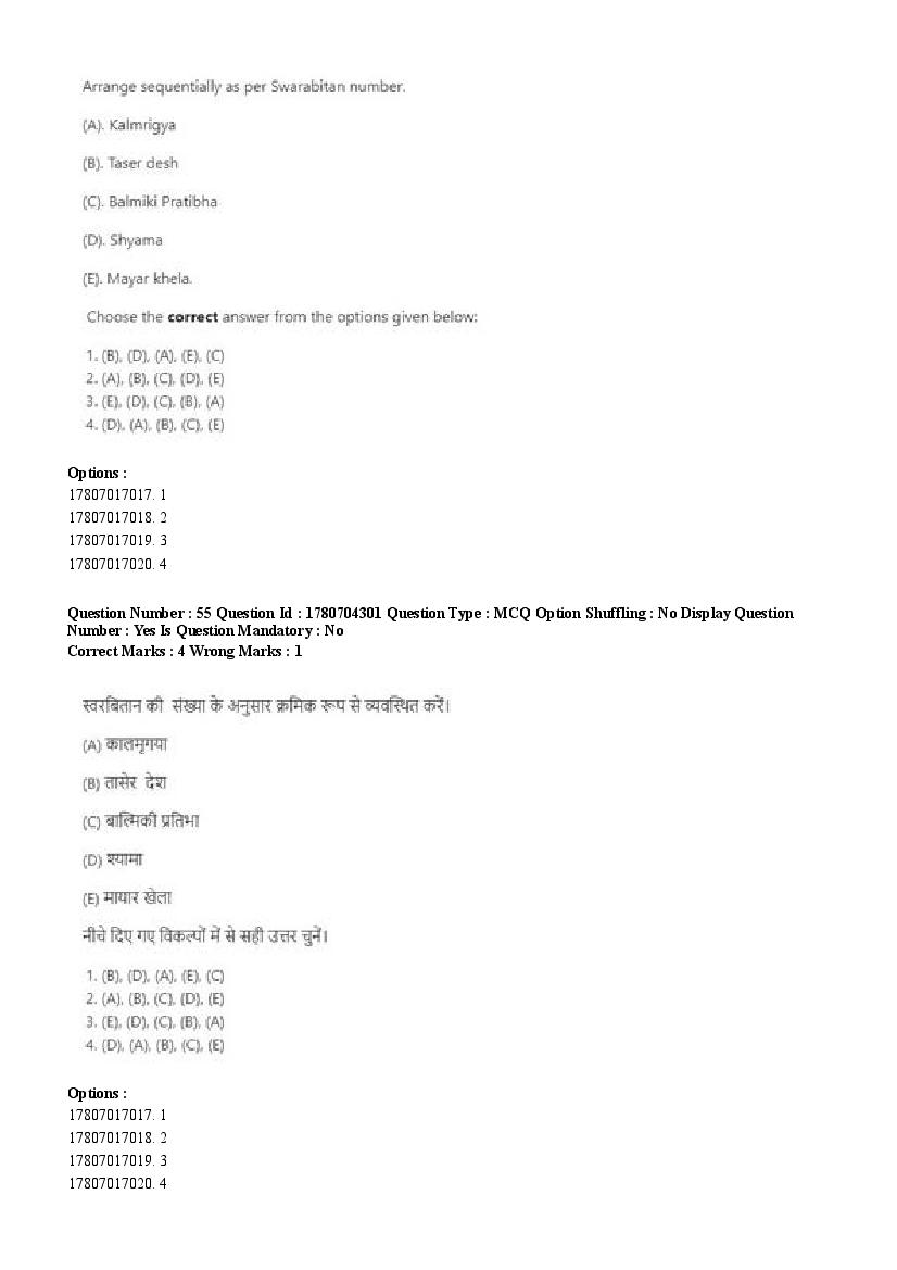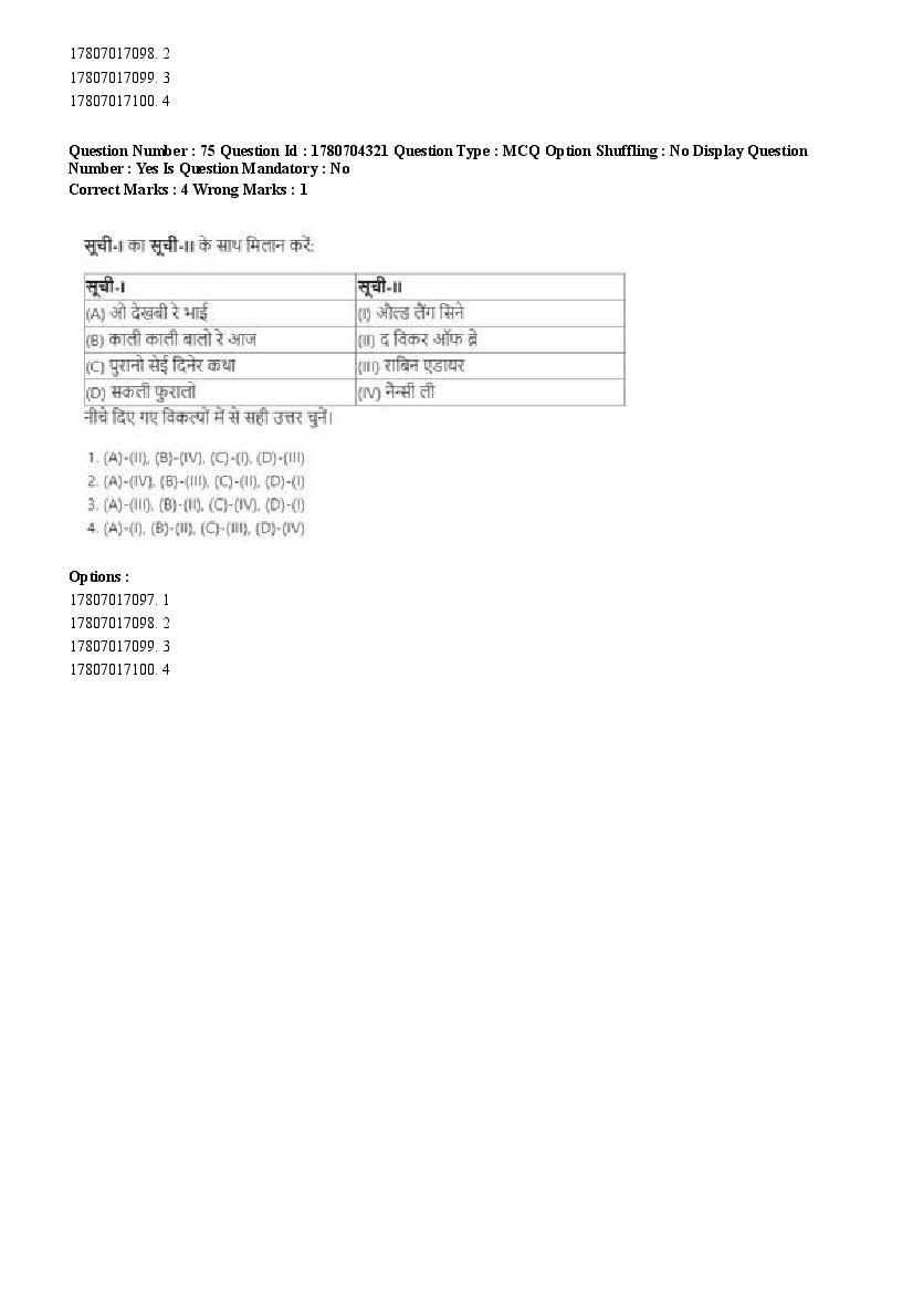 2026 Question papers will be updated soon. The latest available complete cuet pg question paper for Rabindra Sangit is given below.