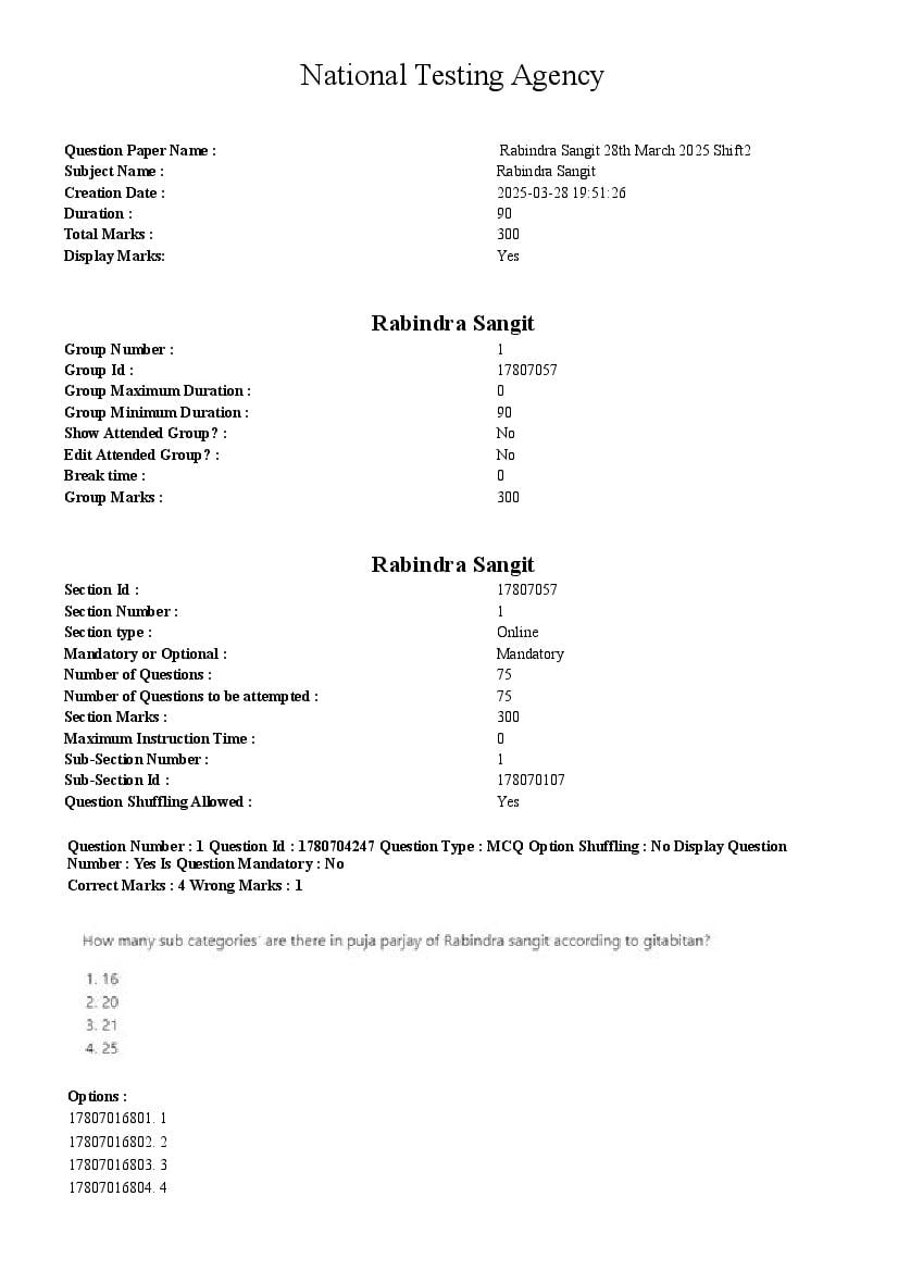 CUET PG 2025 Question Paper Rabindra Sangit View Download