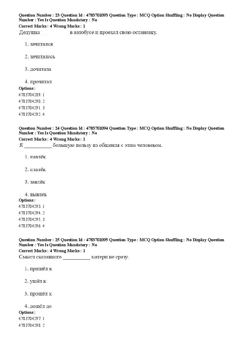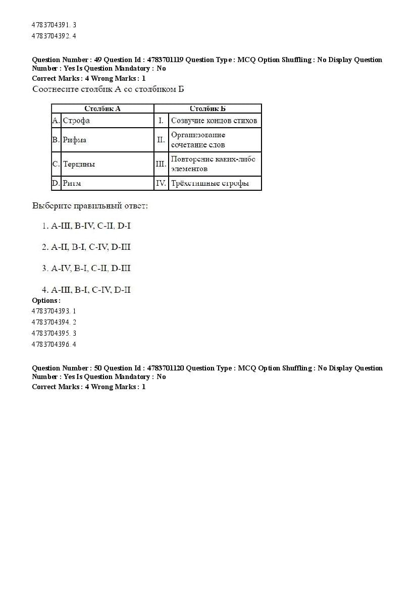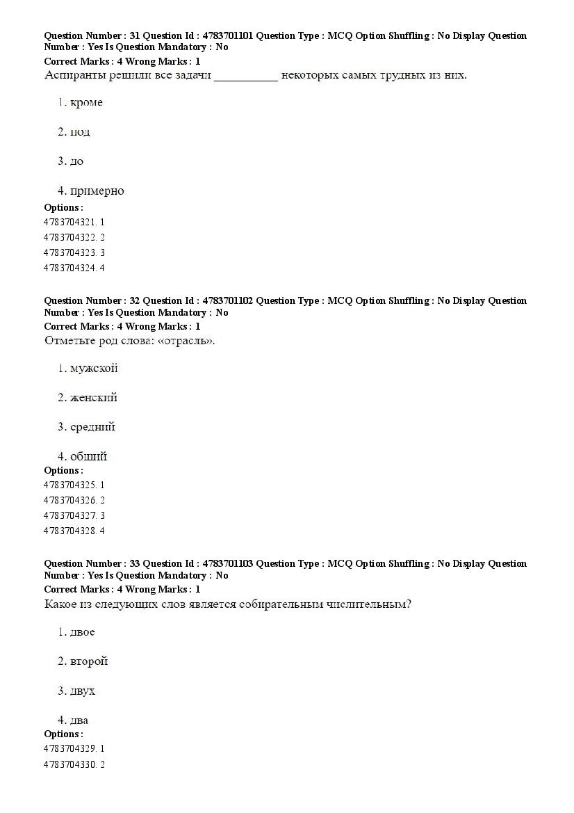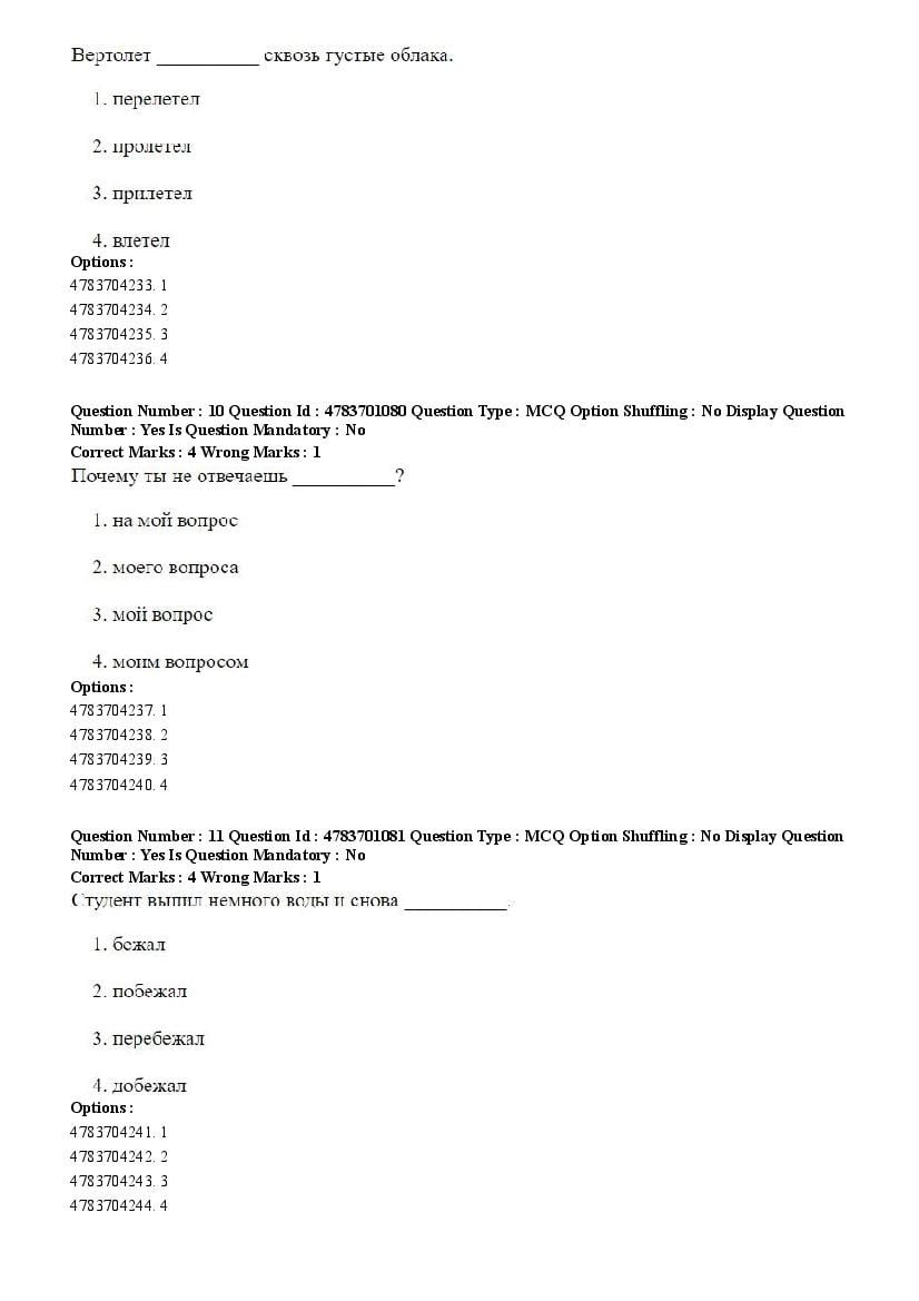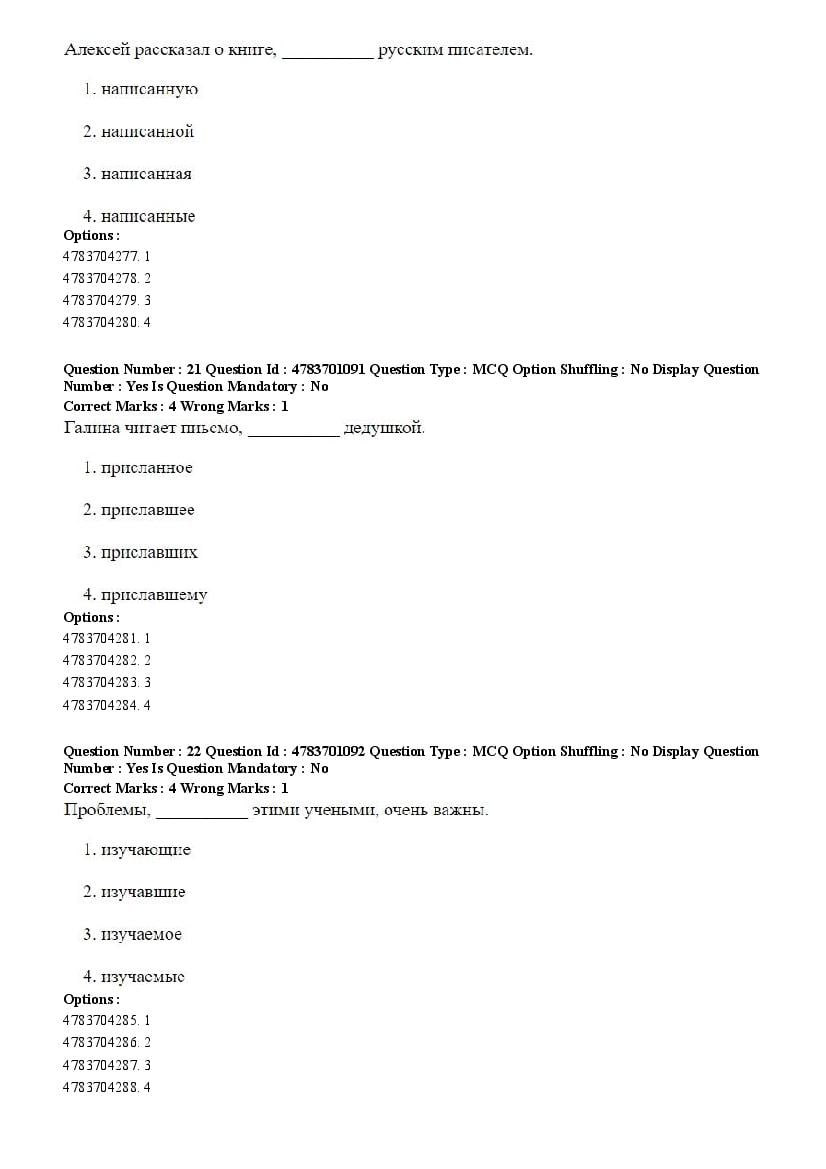 2026 Question papers will be updated soon. The latest available complete cuet pg question paper for Russian is given below.
