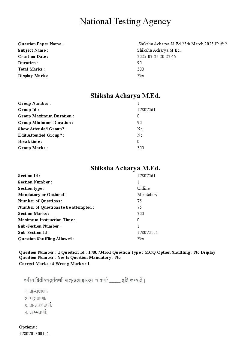 2026 Question papers will be updated soon. The latest available complete cuet pg question paper for Shiksha Acharya M.Ed is given below.
