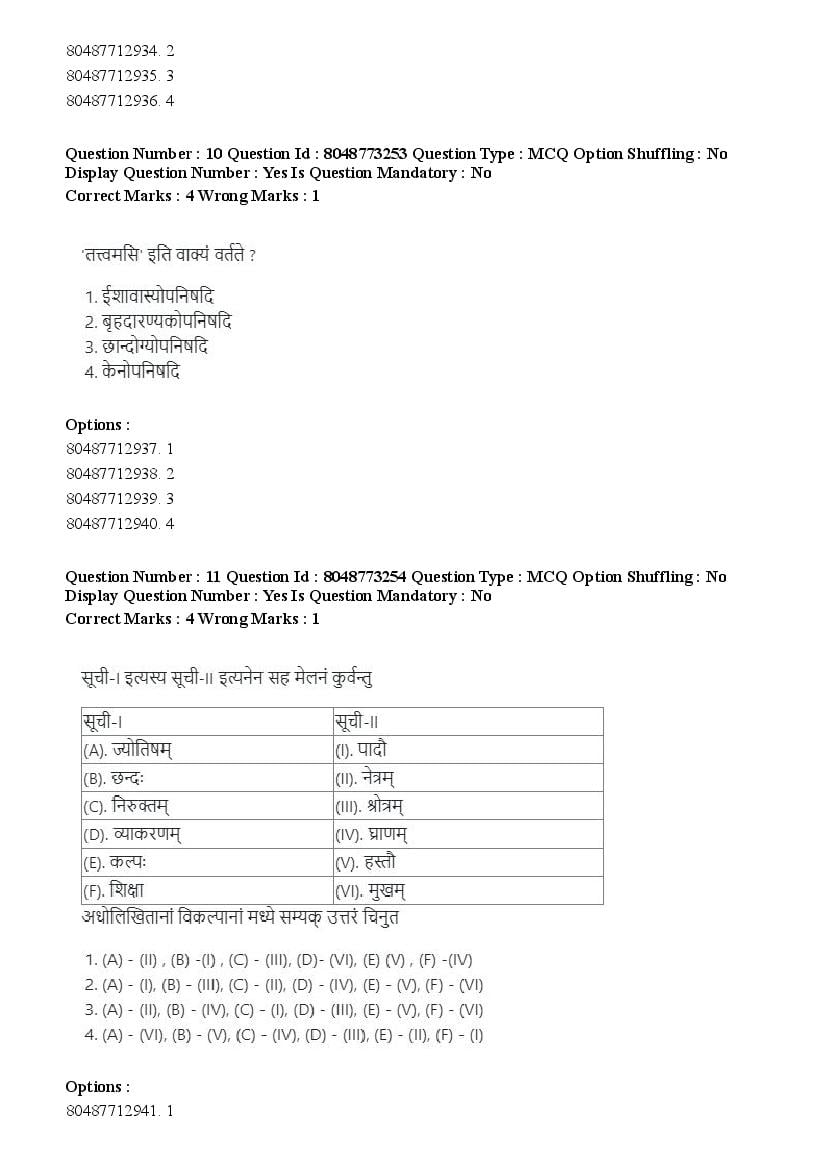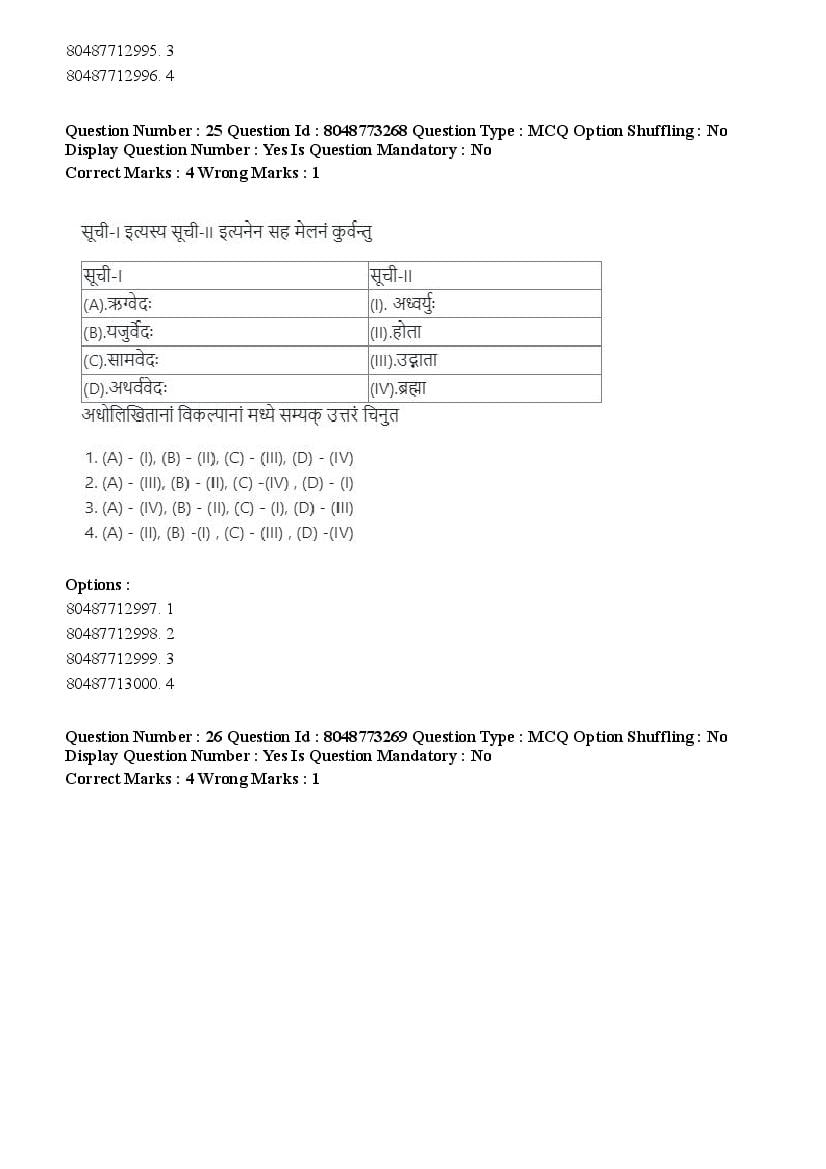 The previous year question paper of CUET PG for Shukla Yajurveda held in the year 2026 is as follows.