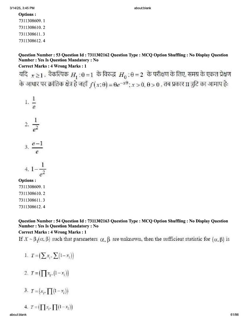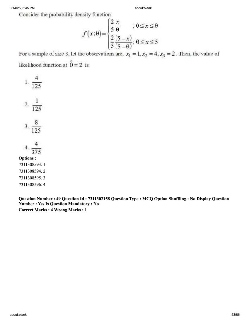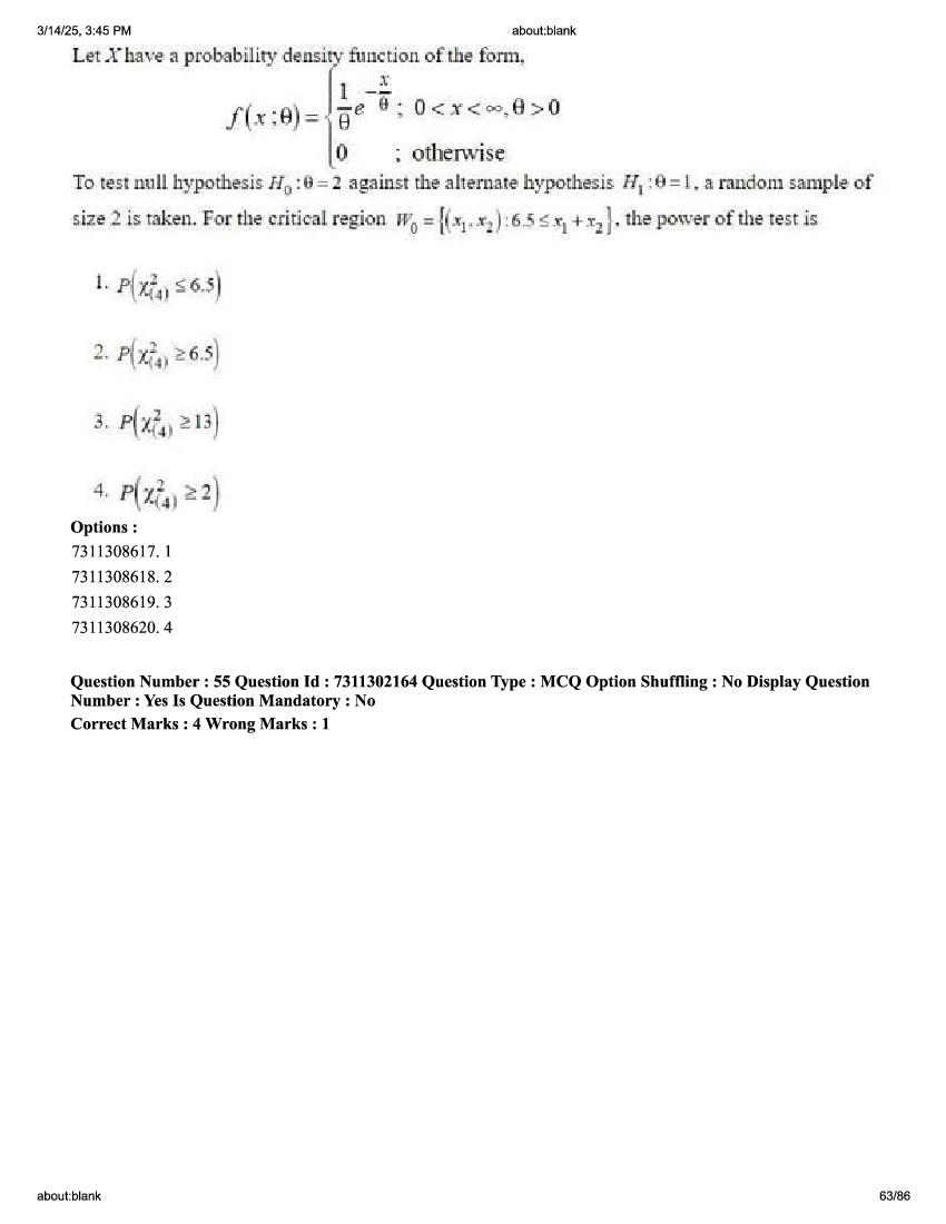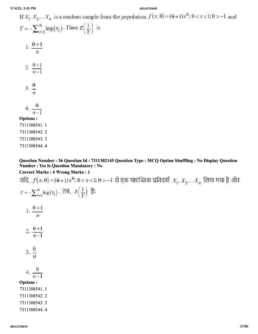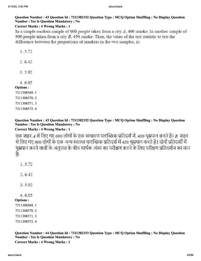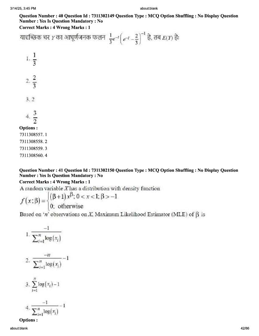 2026 Question papers will be updated soon. The latest available complete cuet pg question paper for Statistics is given below.