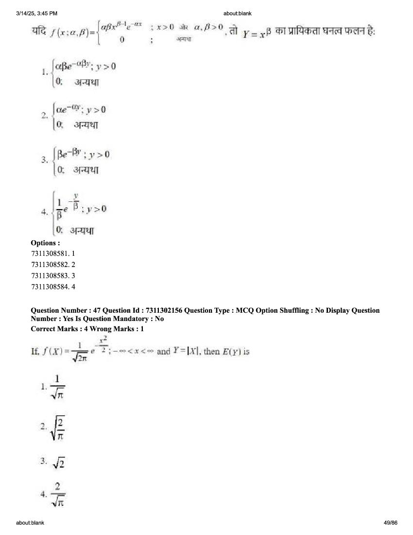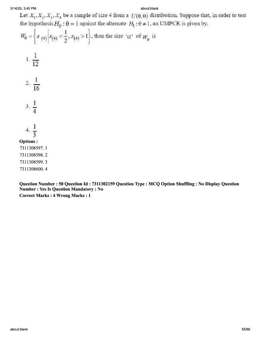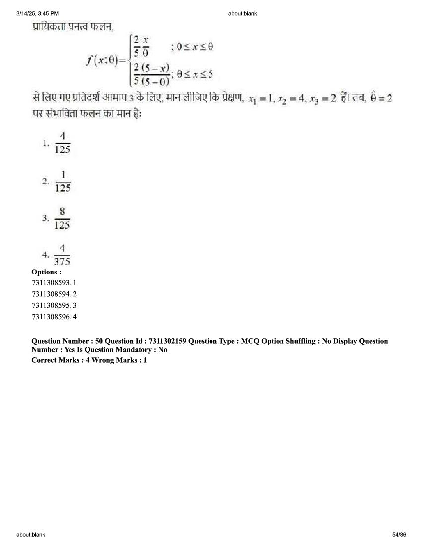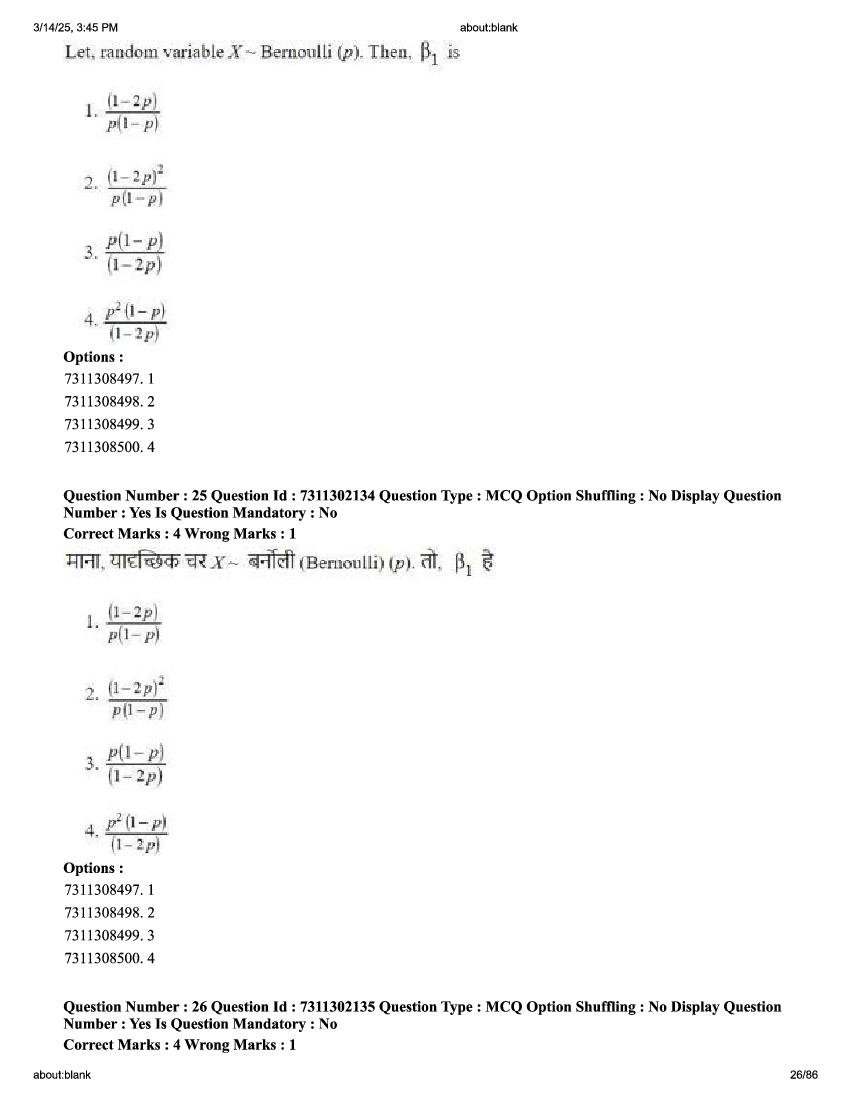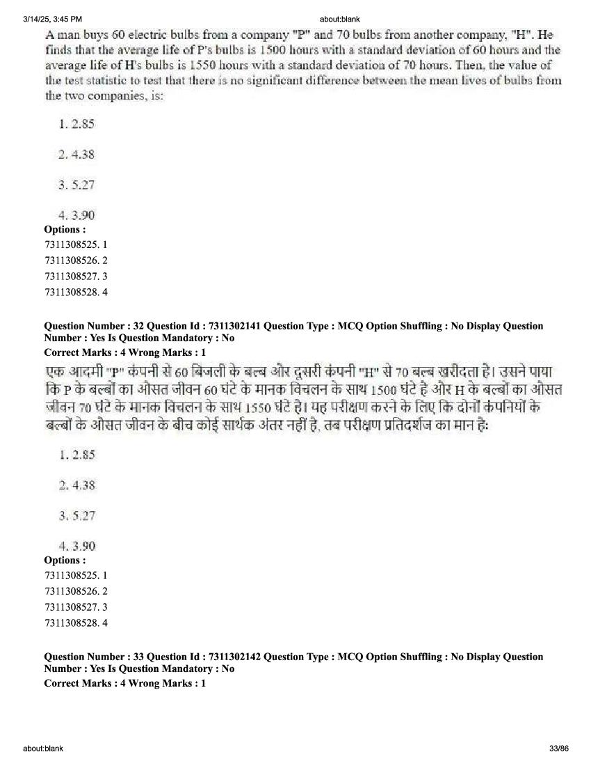 2026 Question papers will be updated soon. The latest available complete cuet pg question paper for Statistics is given below.