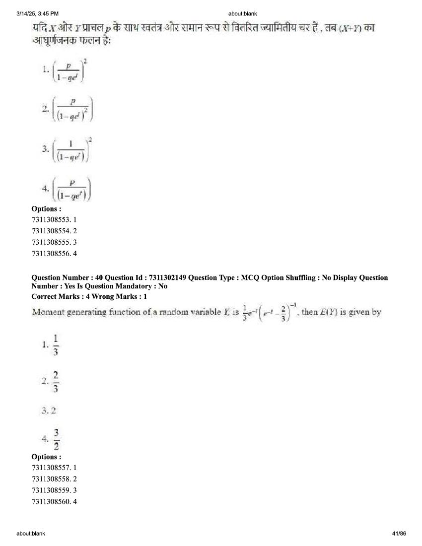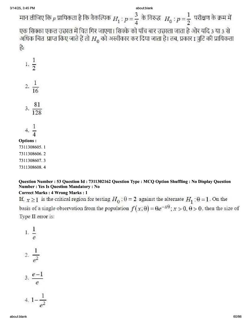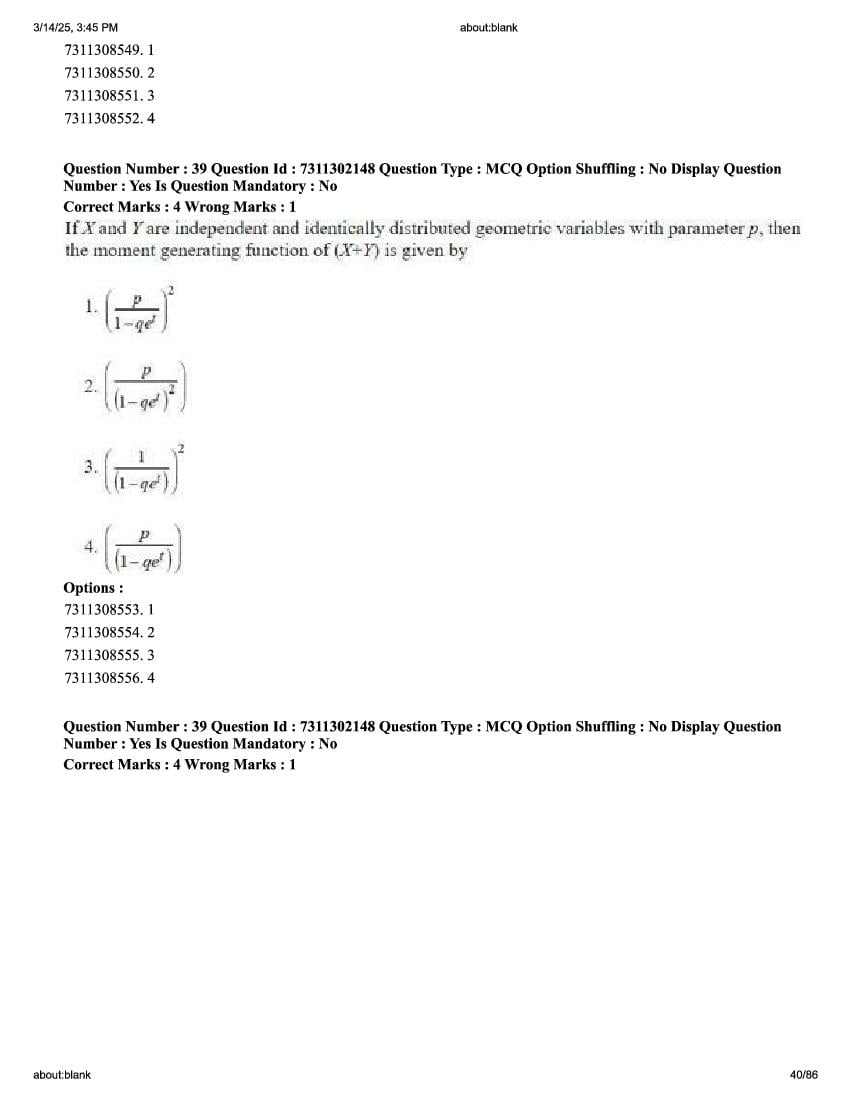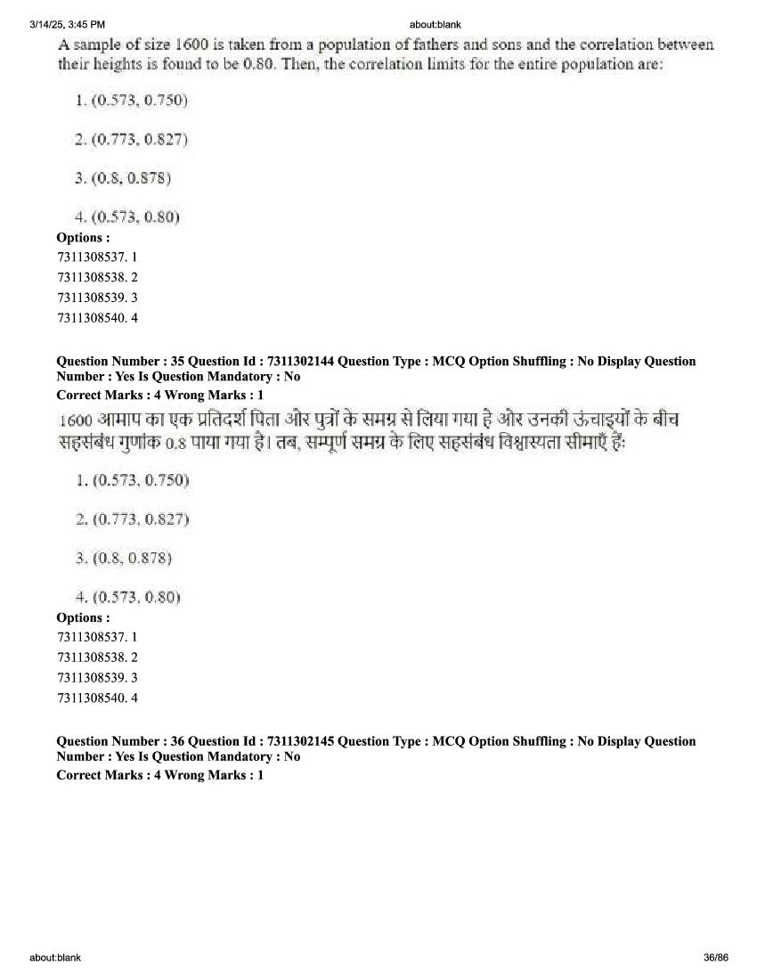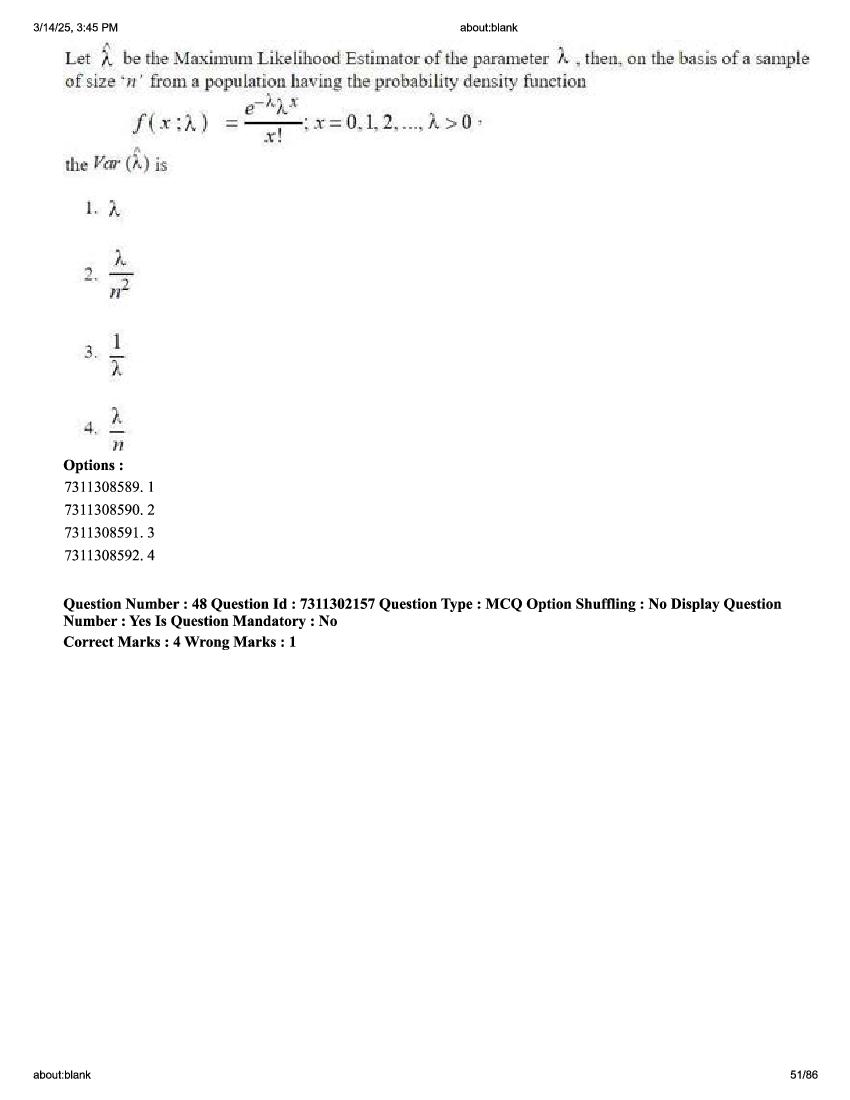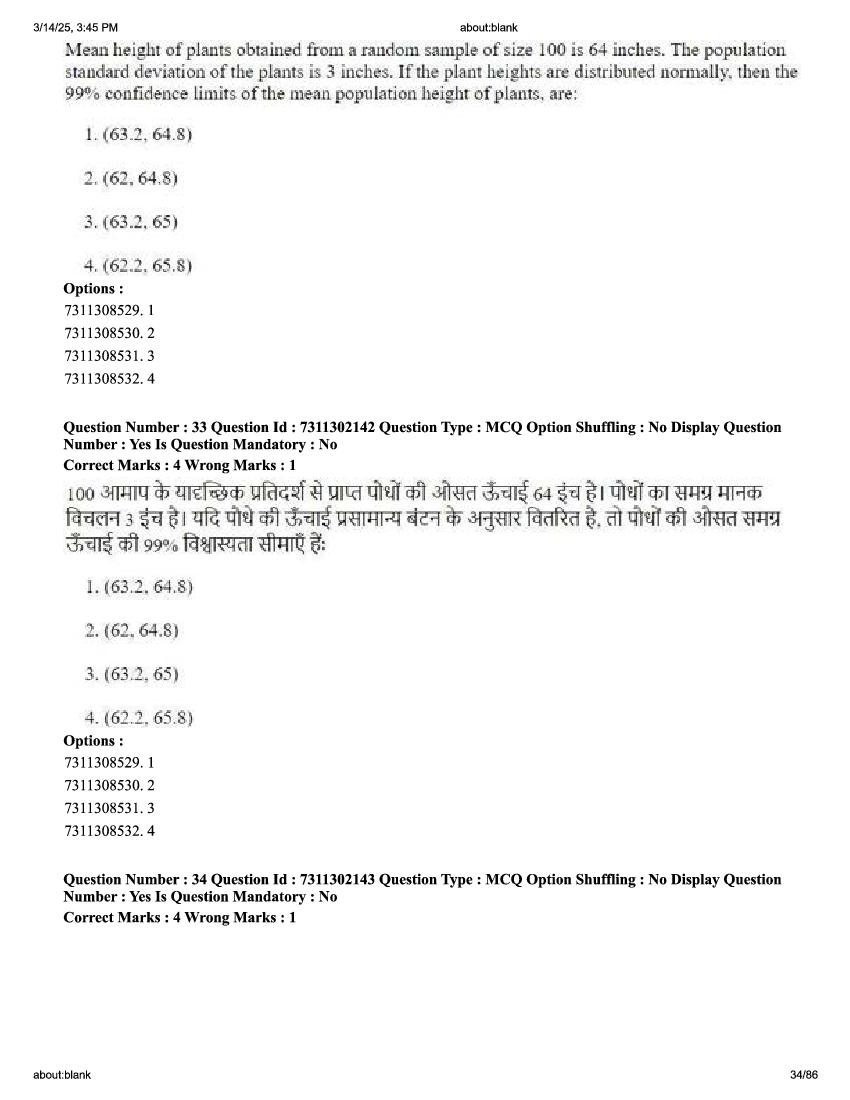 2026 Question papers will be updated soon. The latest available complete cuet pg question paper for Statistics is given below.
