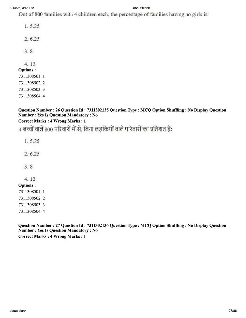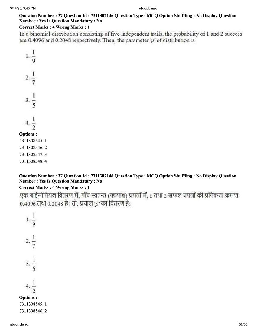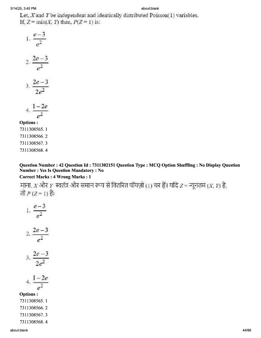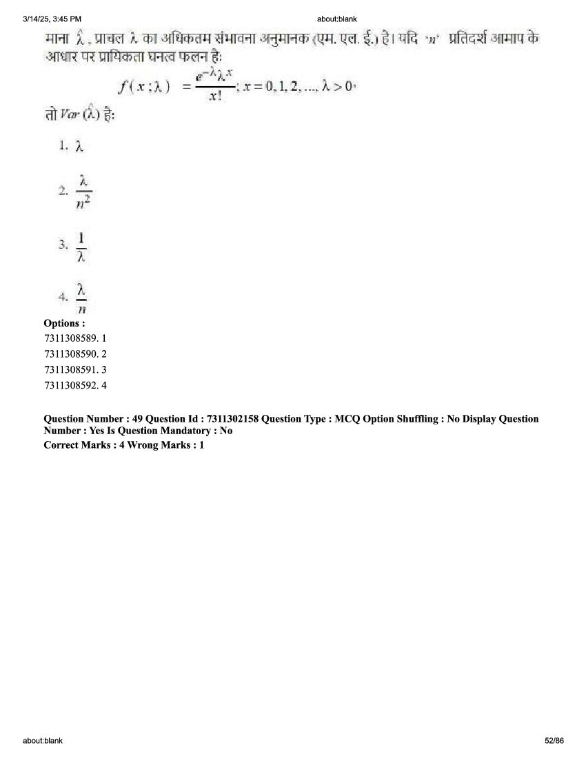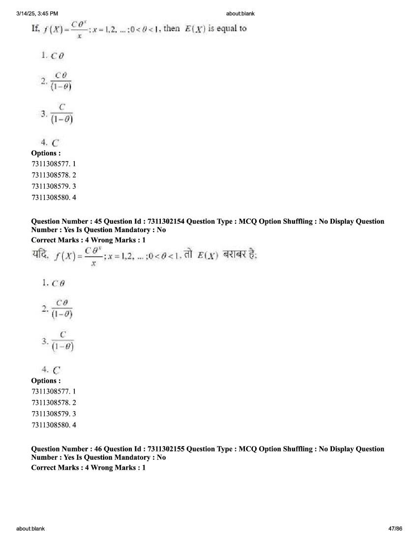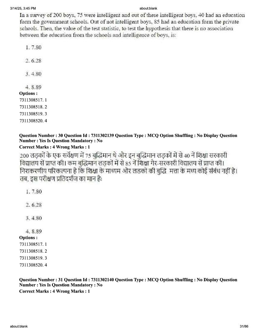 2026 Question papers will be updated soon. The latest available complete cuet pg question paper for Statistics is given below.