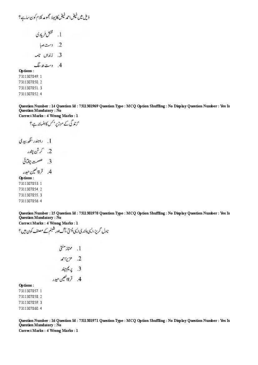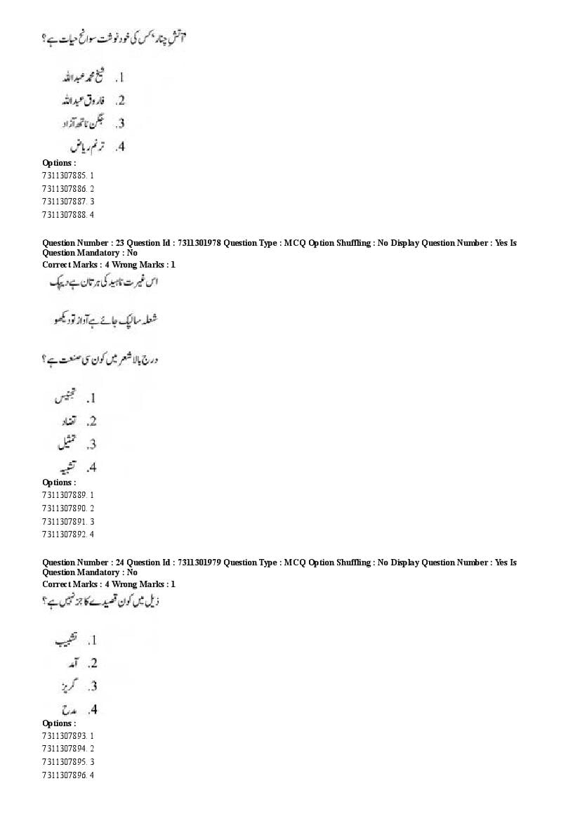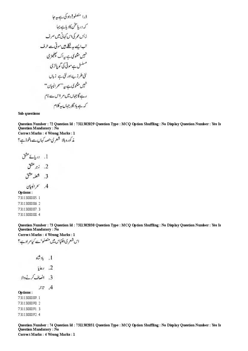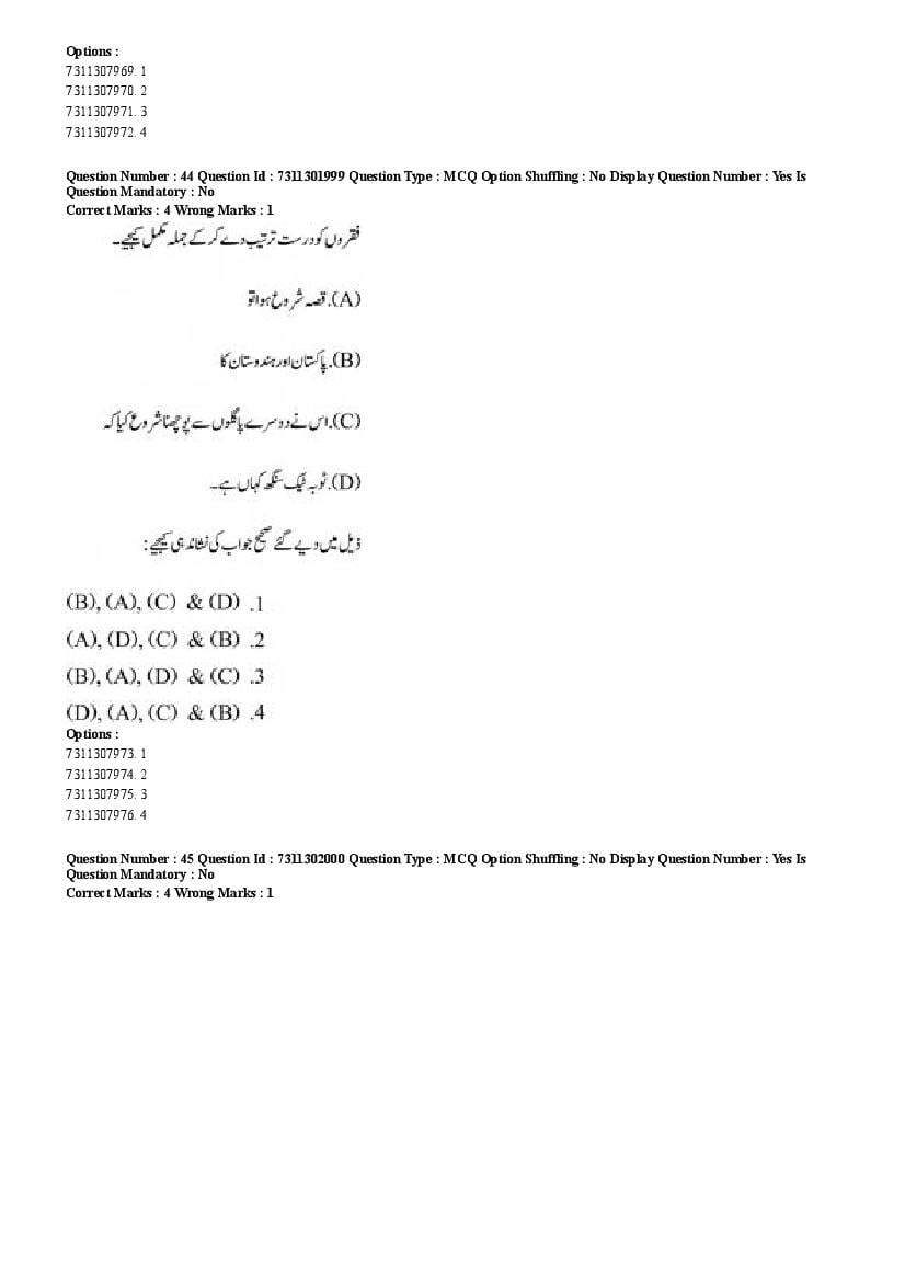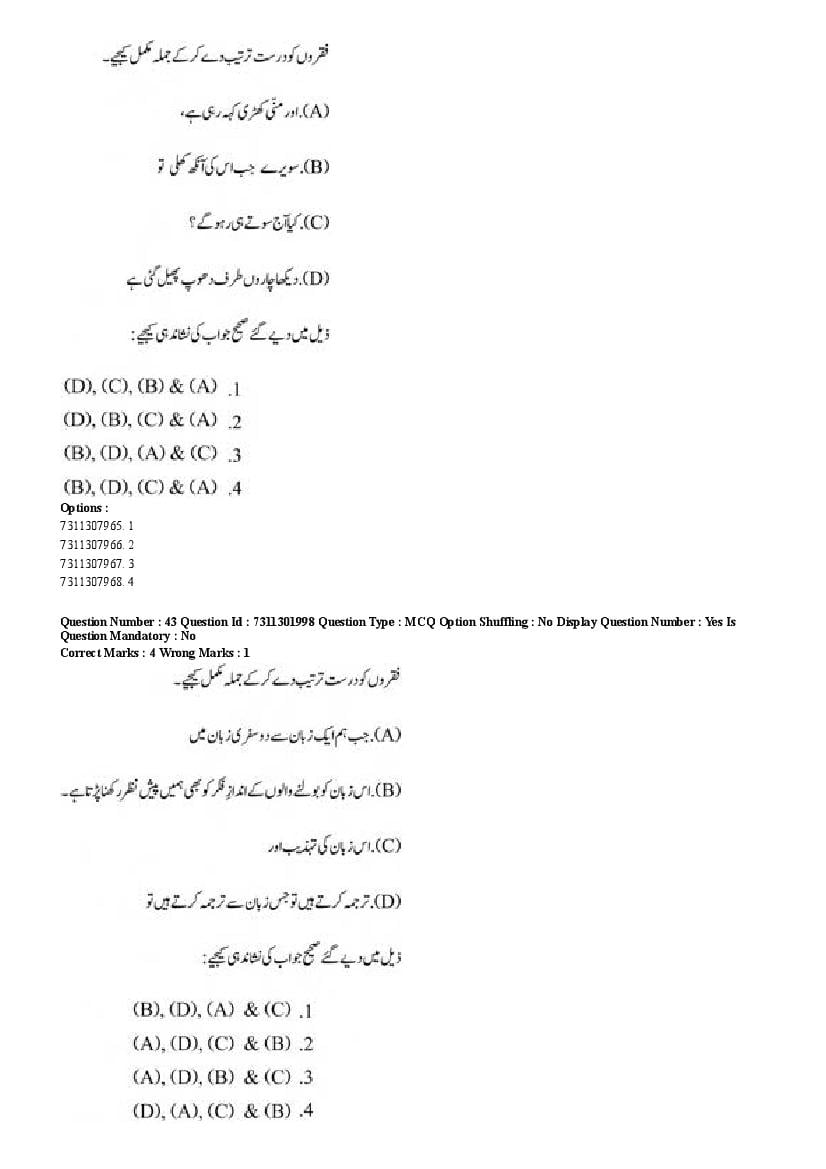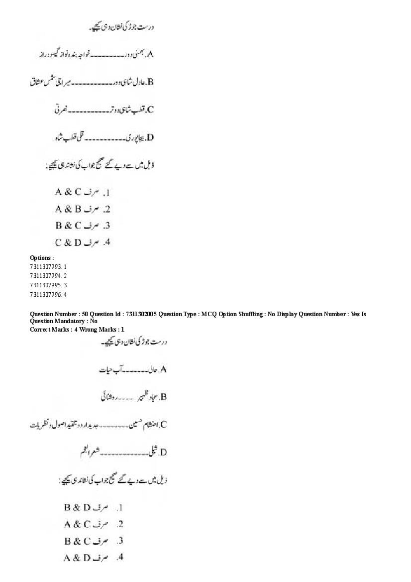 2026 Question papers will be updated soon. The latest available complete cuet pg question paper for Urdu is given below.
