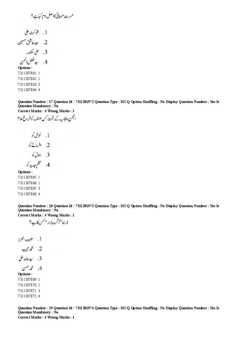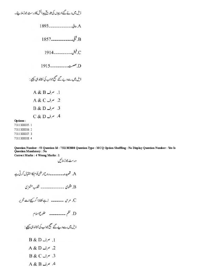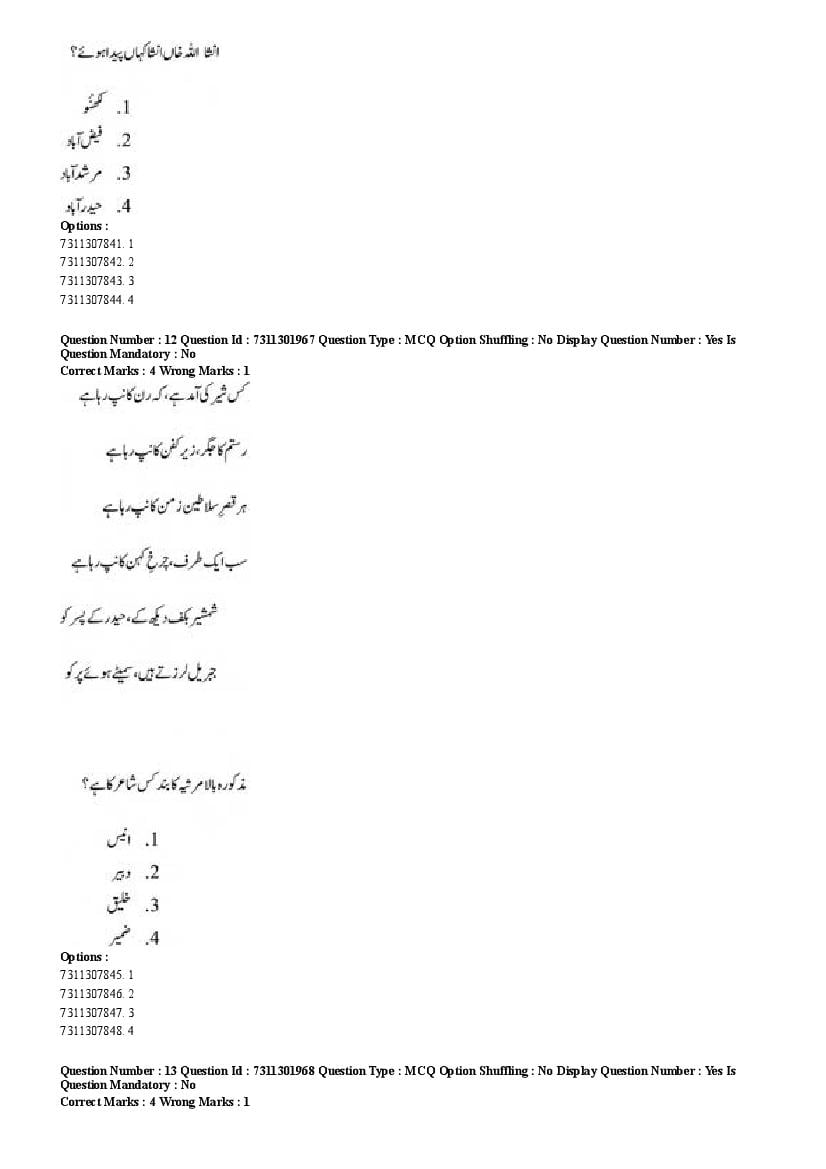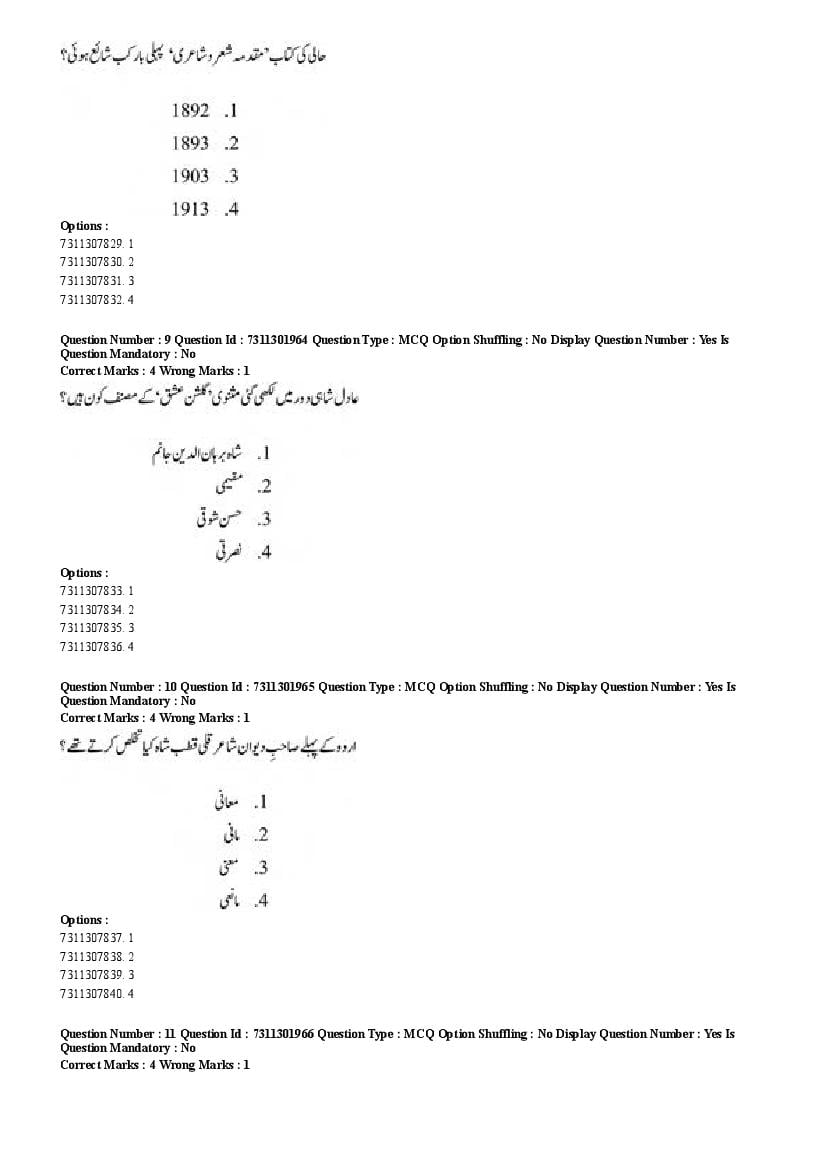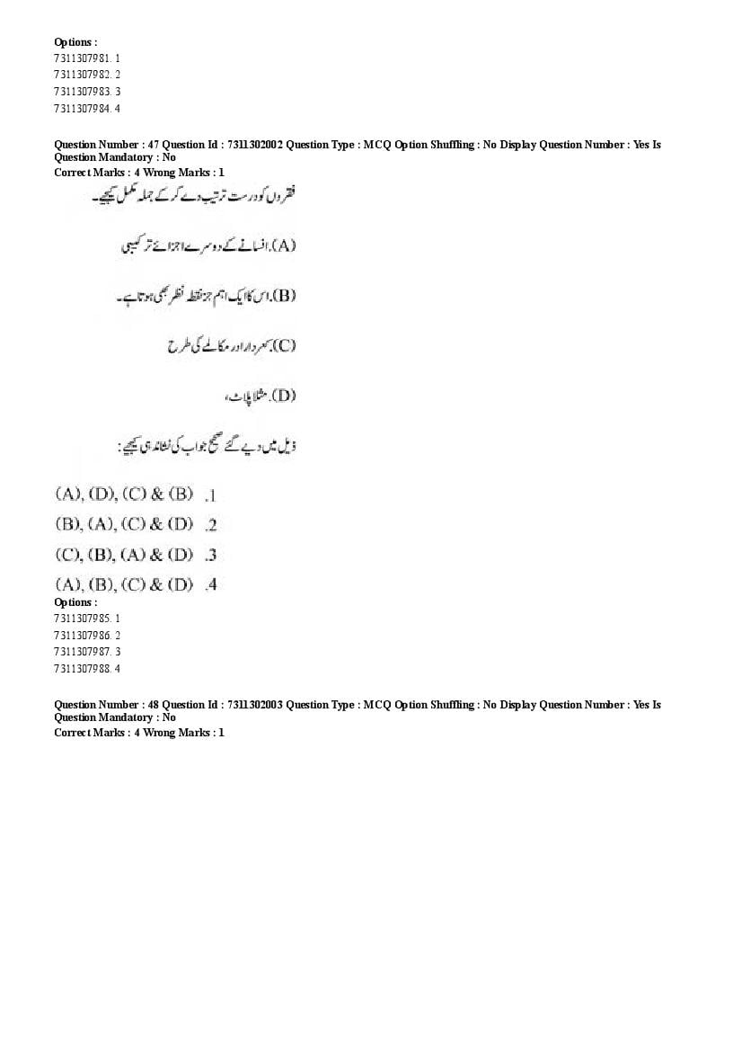 2026 Question papers will be updated soon. The latest available complete cuet pg question paper for Urdu is given below.