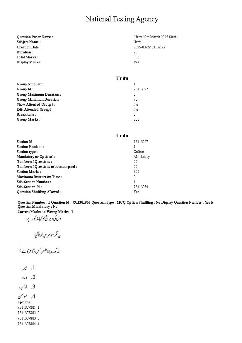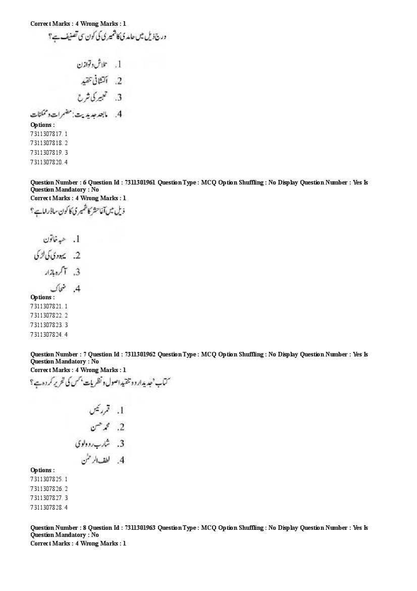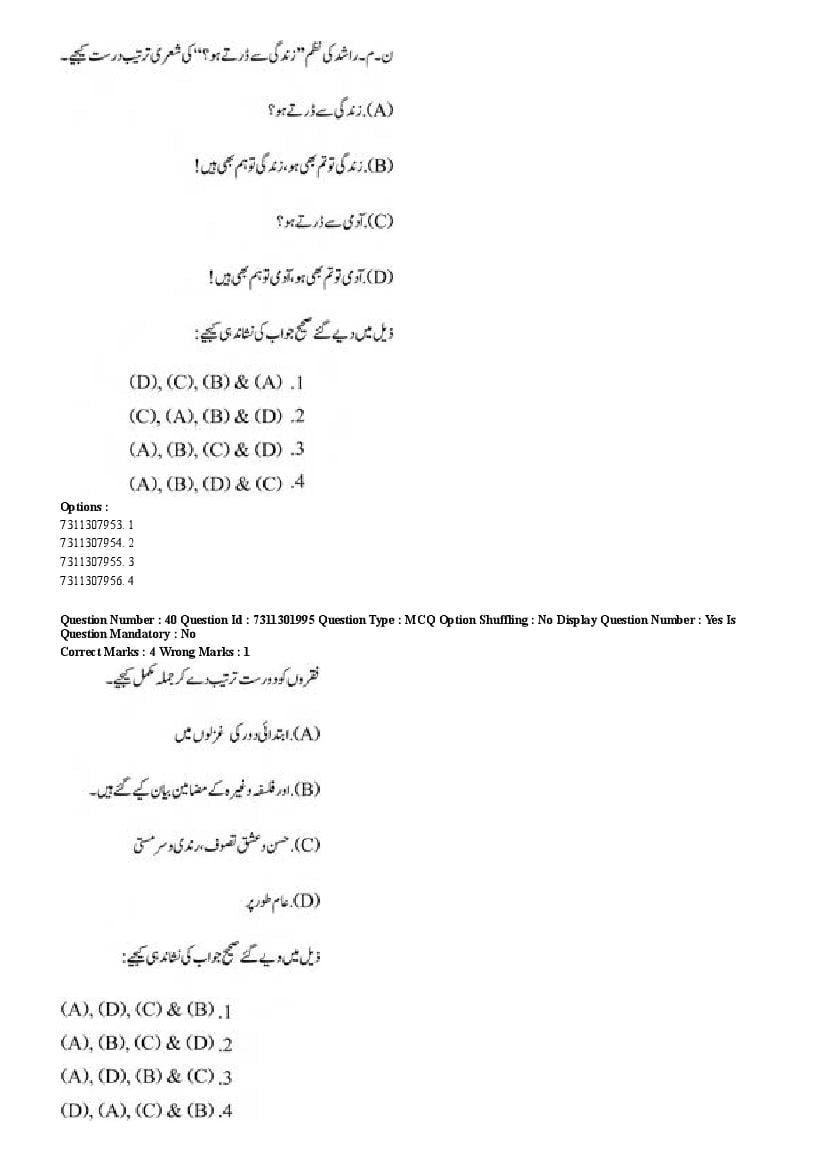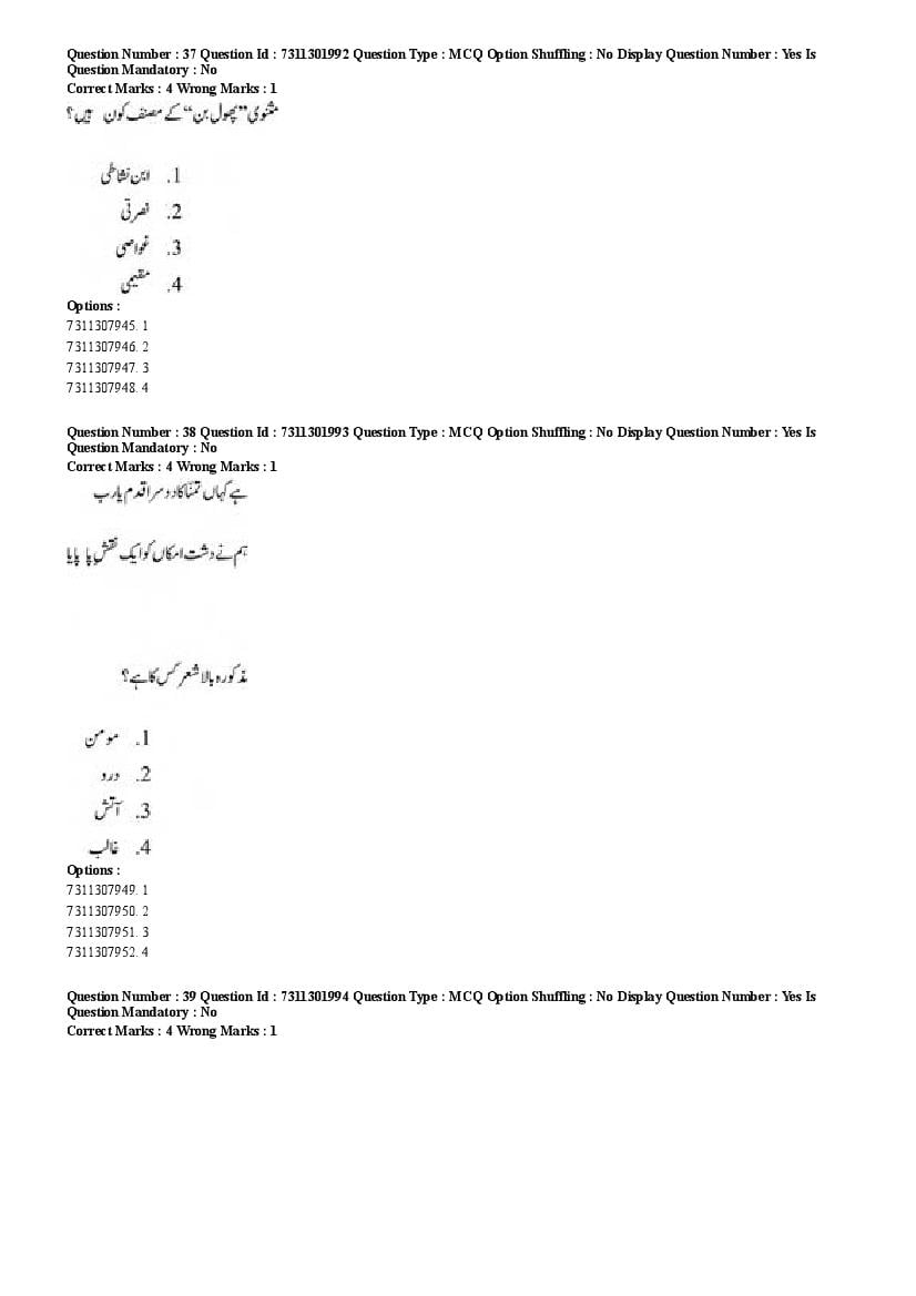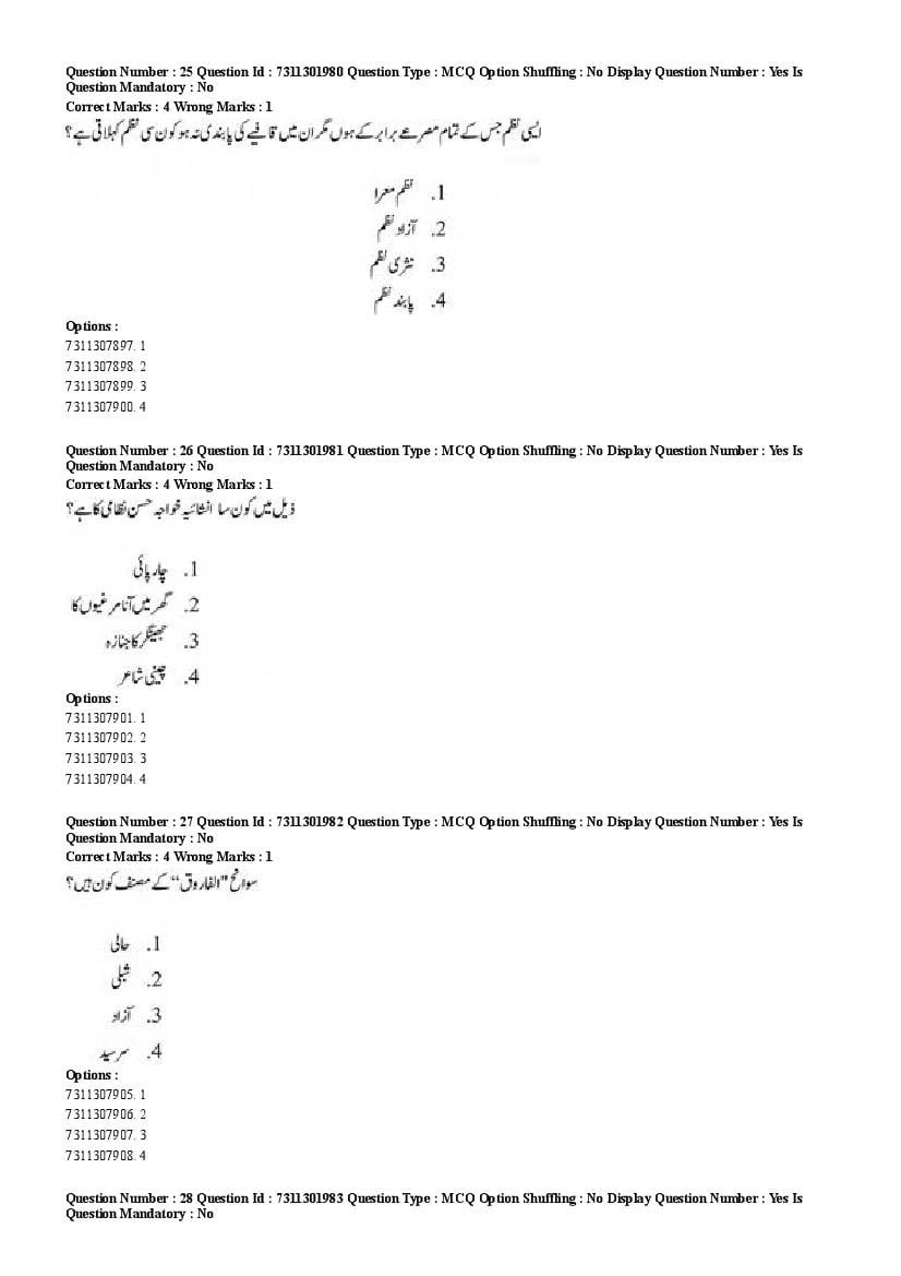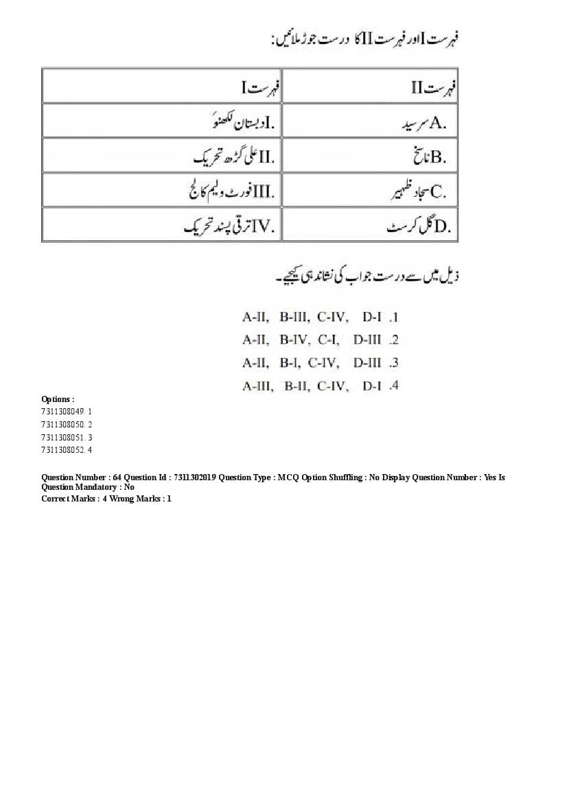 2026 Question papers will be updated soon. The latest available complete cuet pg question paper for Urdu is given below.