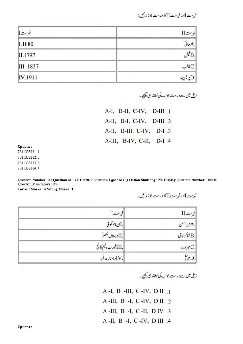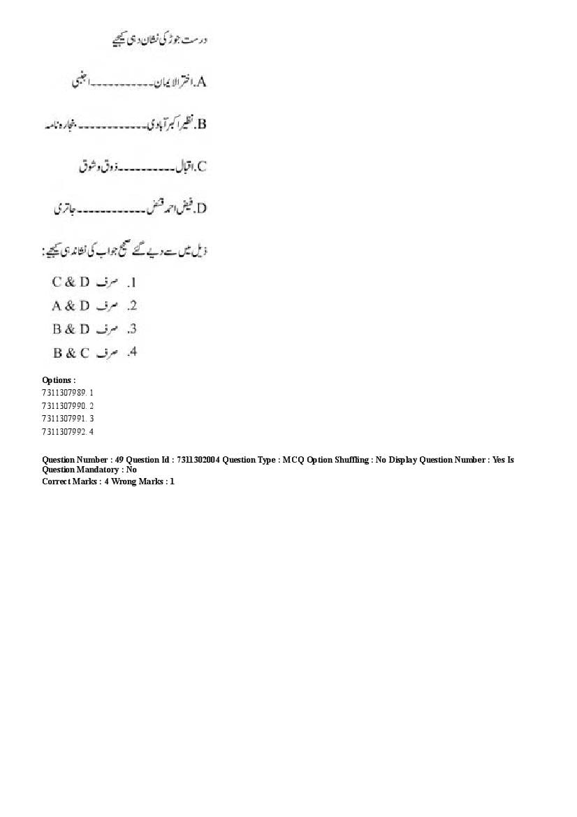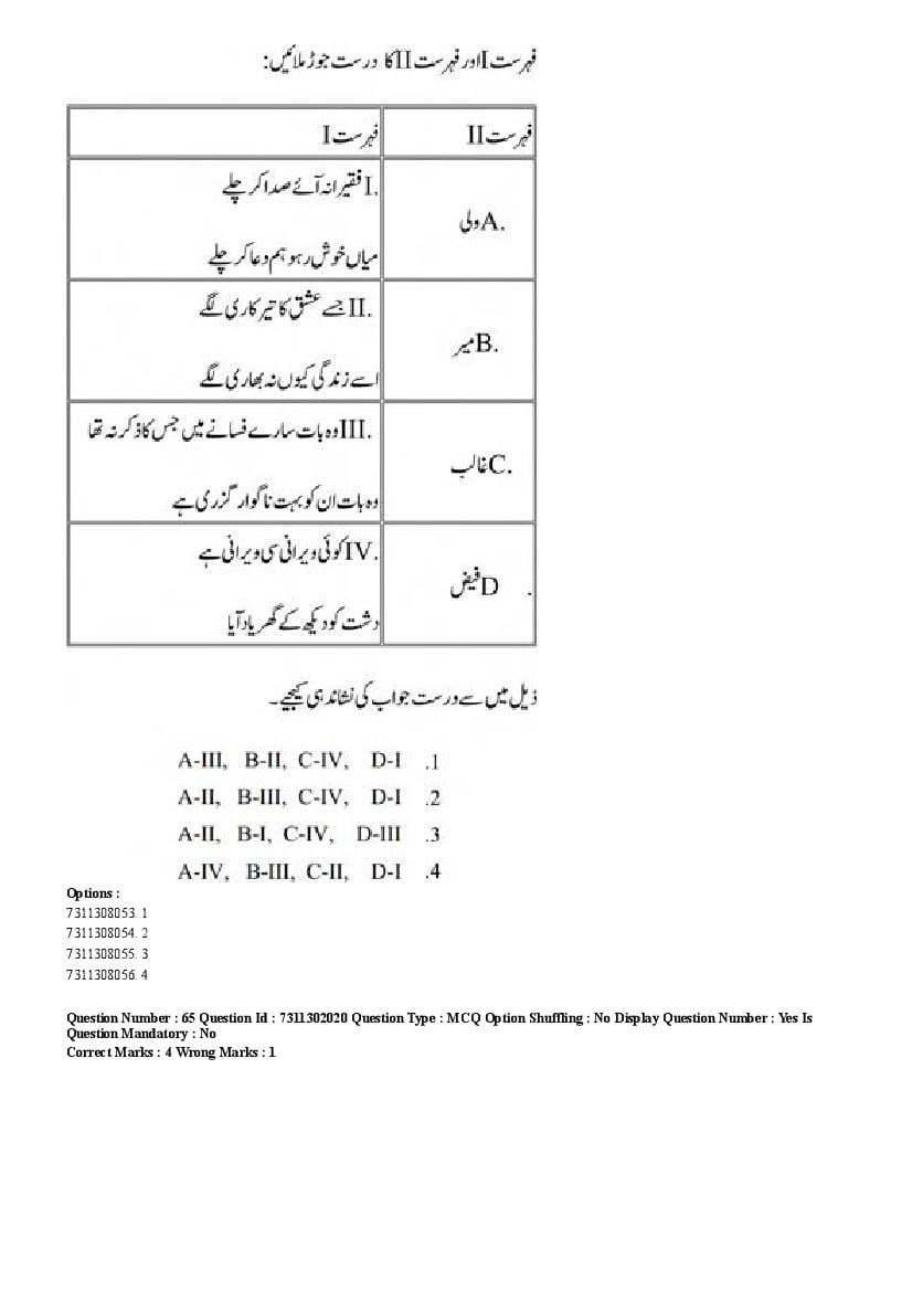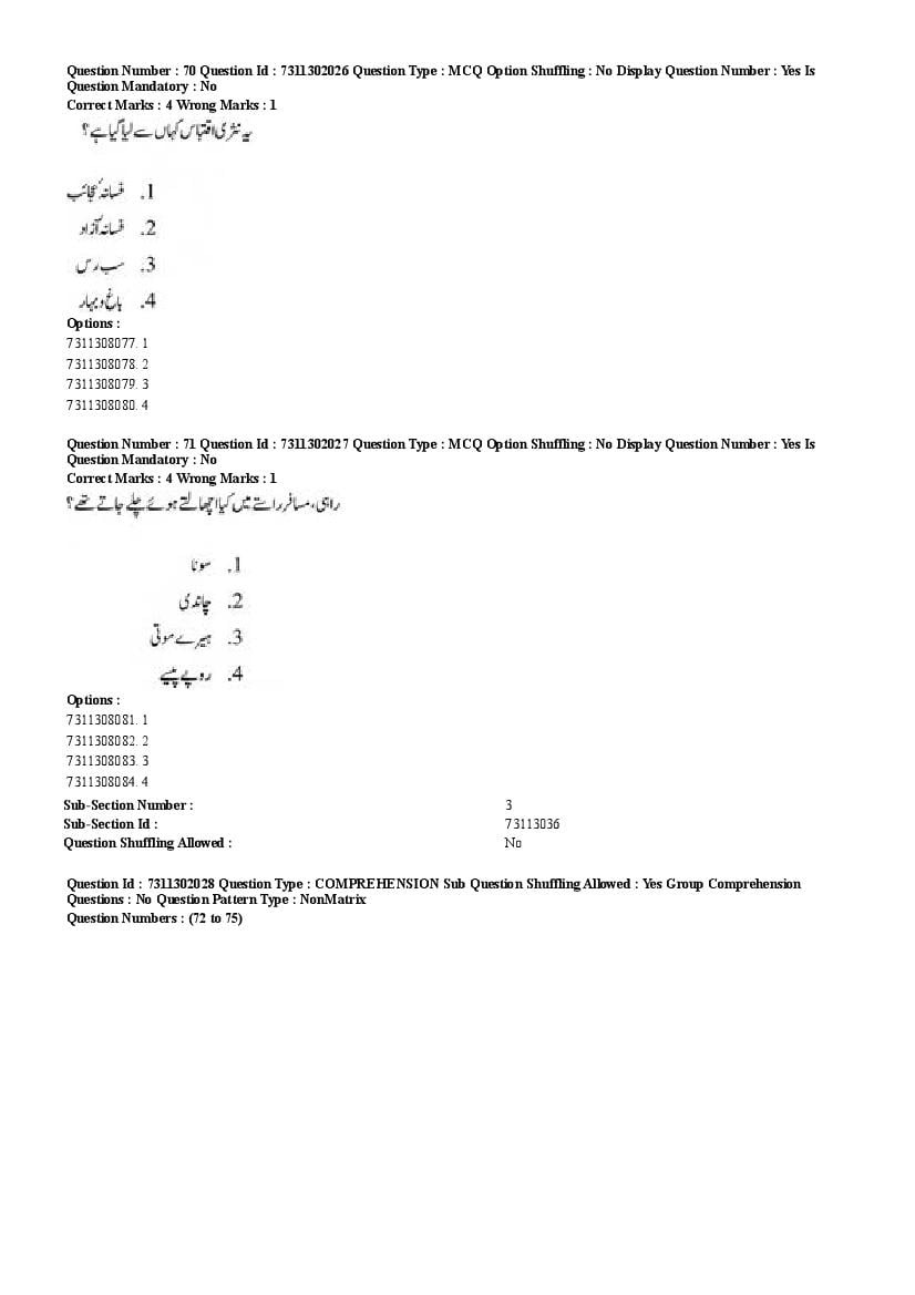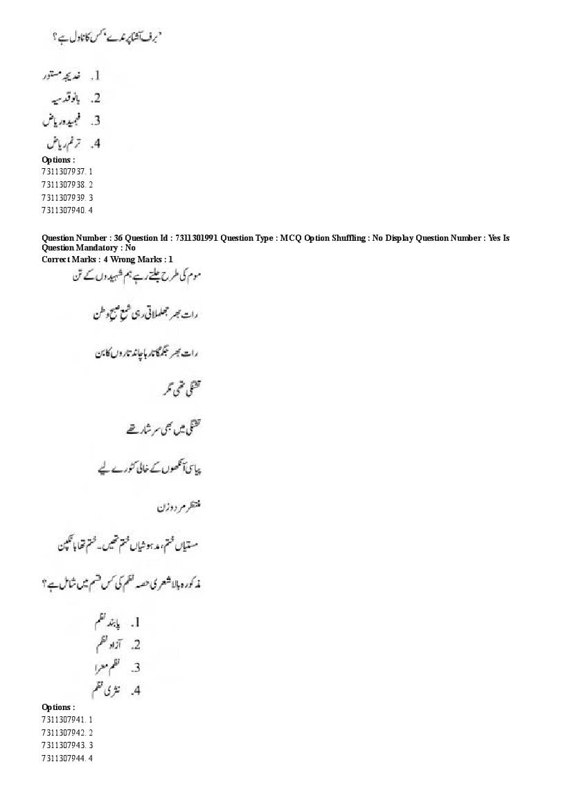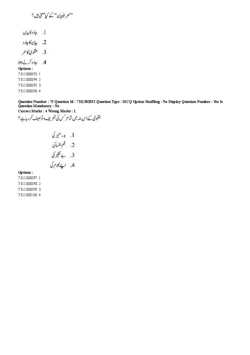 2026 Question papers will be updated soon. The latest available complete cuet pg question paper for Urdu is given below.