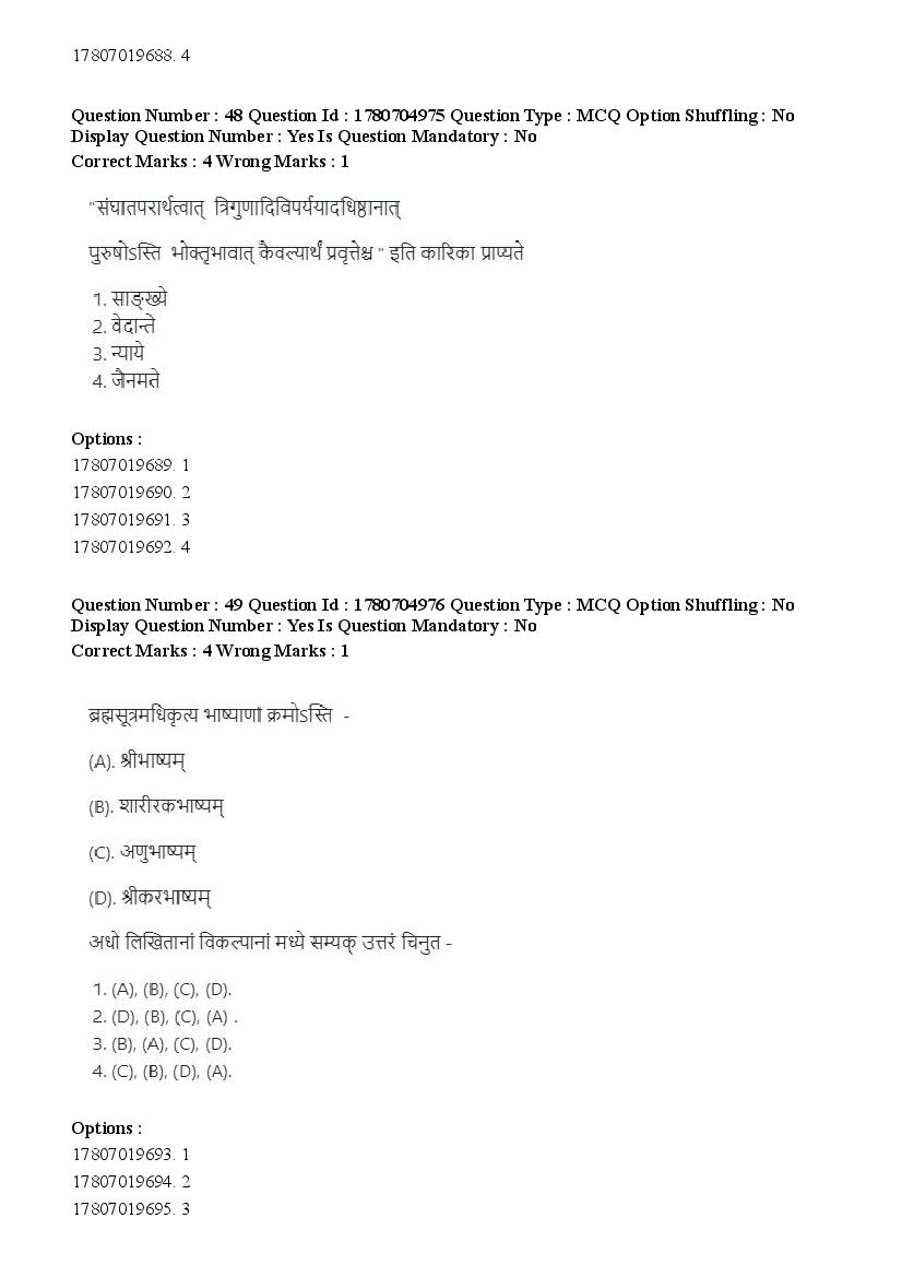 2026 Question papers will be updated soon. The latest available complete cuet pg question paper for Vedanta Sarvadarshan is given below.