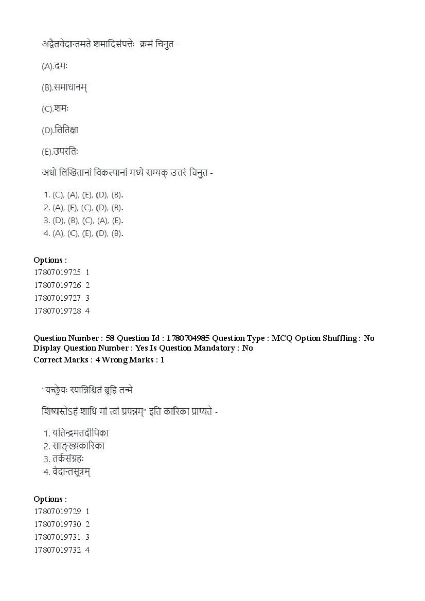 The previous year question paper of CUET PG for Vedanta Sarvadarshan held in the year 2026 is as follows.