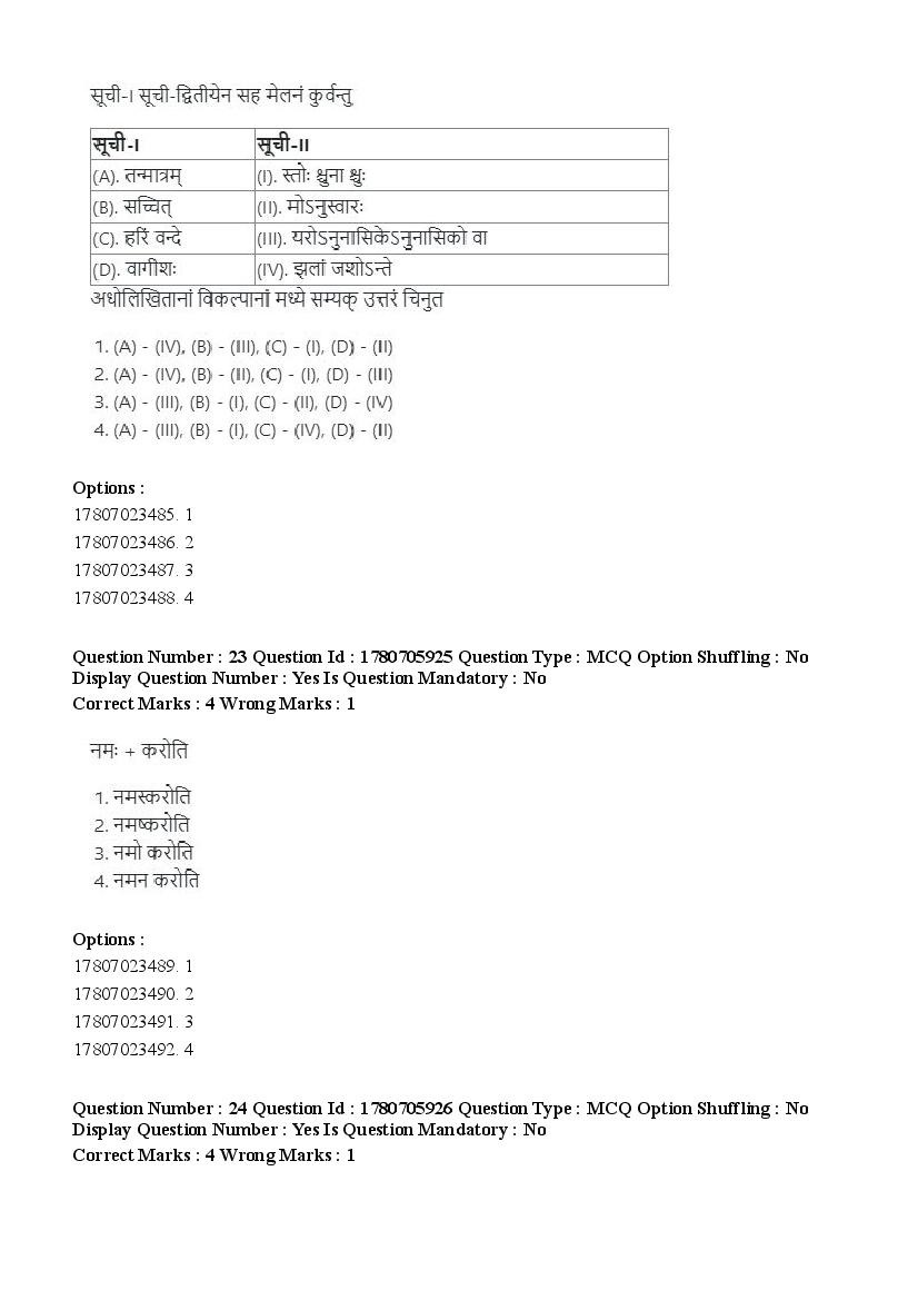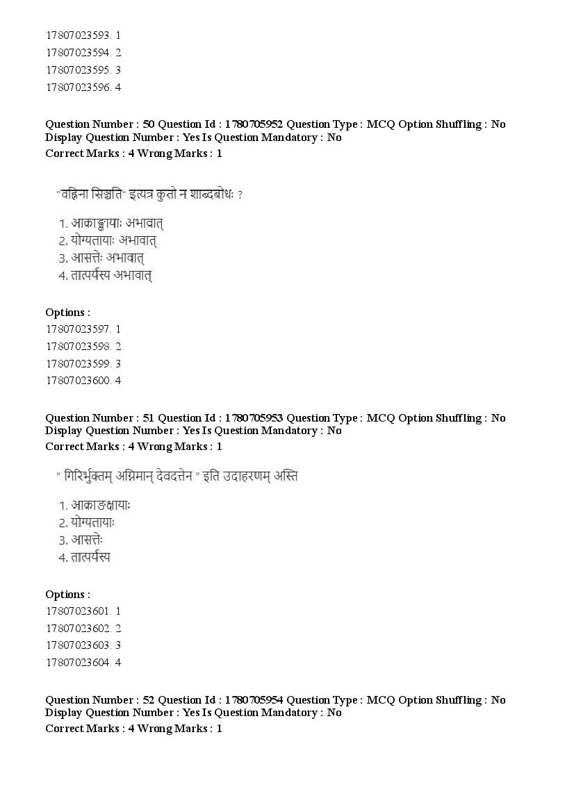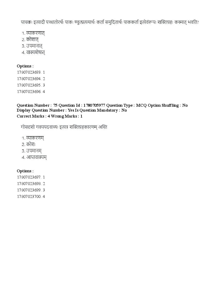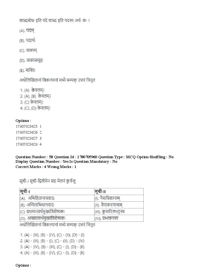 2026 Question papers will be updated soon. The latest available complete cuet pg question paper for Vyakarana Sabdabodha Systems is given below.