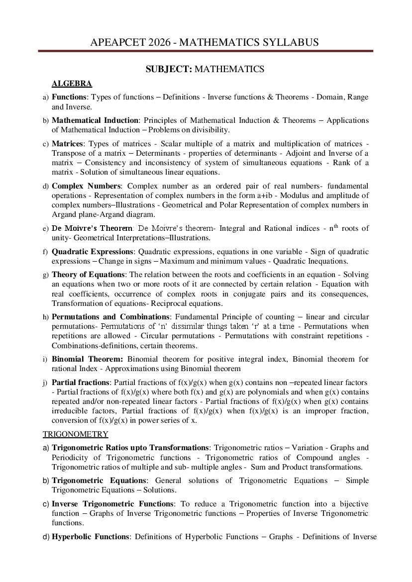 AP EAPCET 2026 Syllabus for Engineering View Download