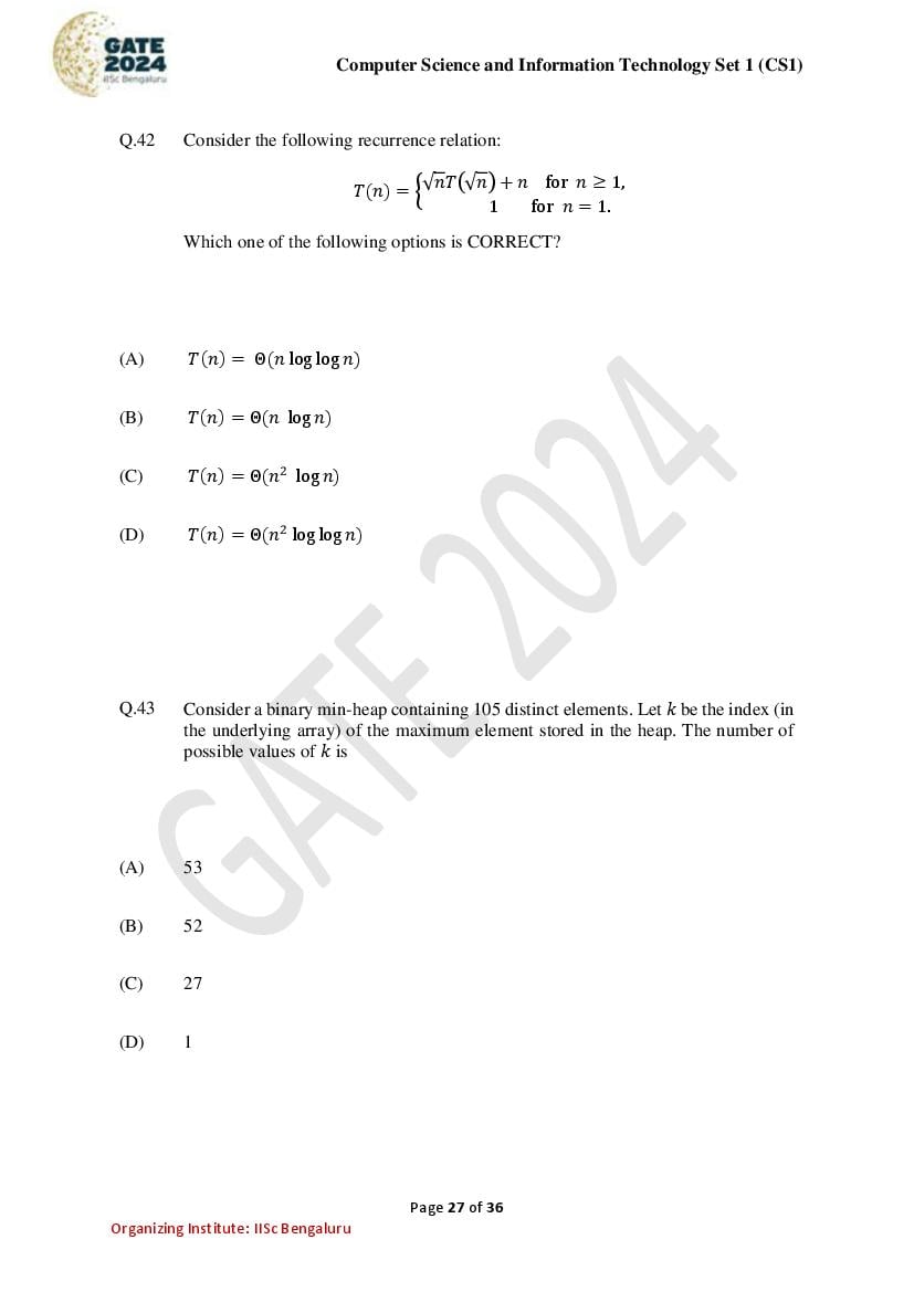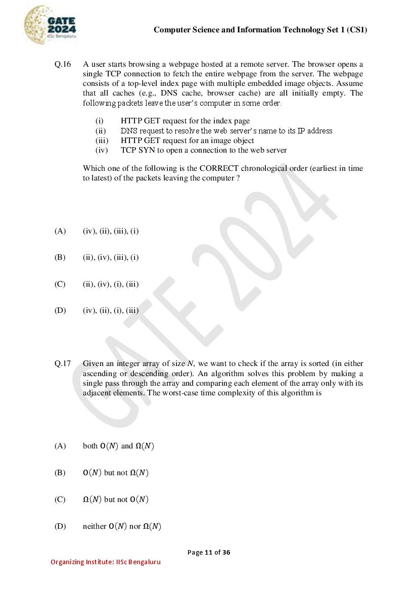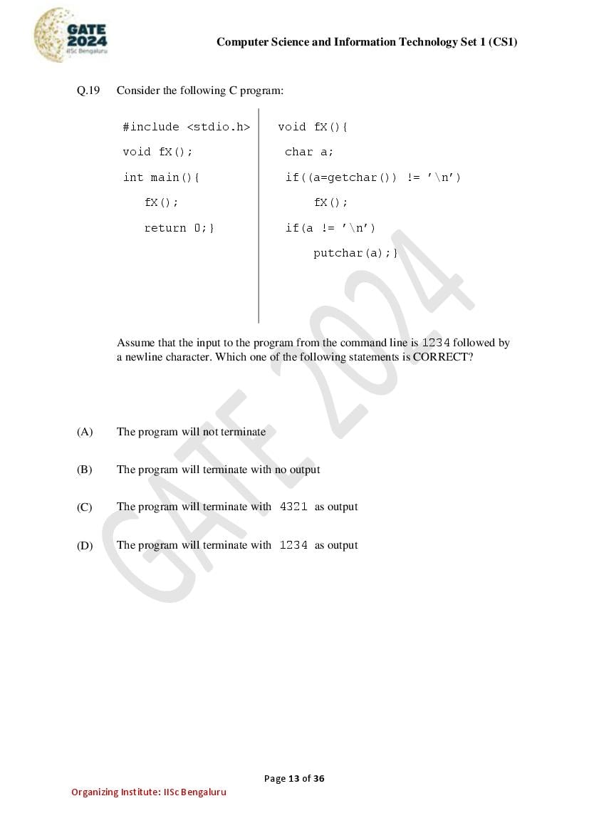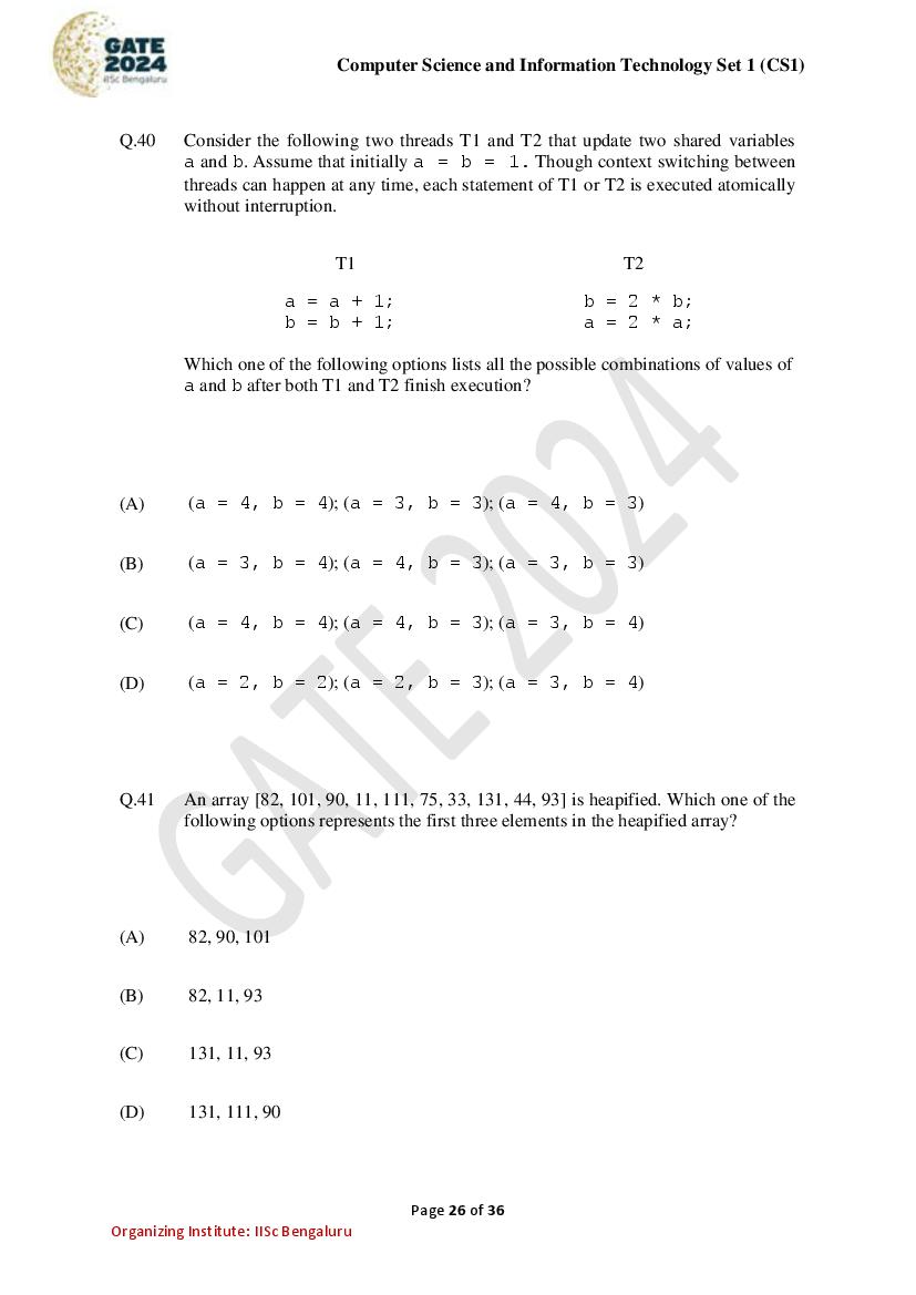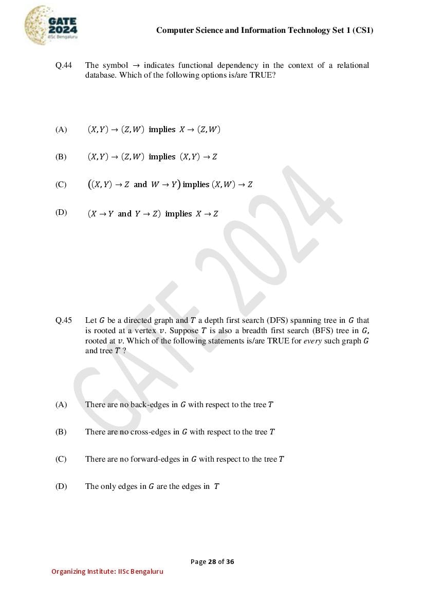 - GATE 2024 Question Paper for Computer Science and Information Technology (CS-1)