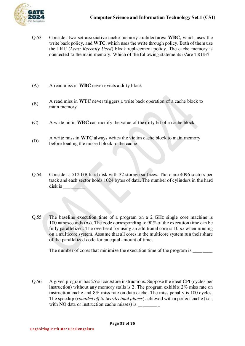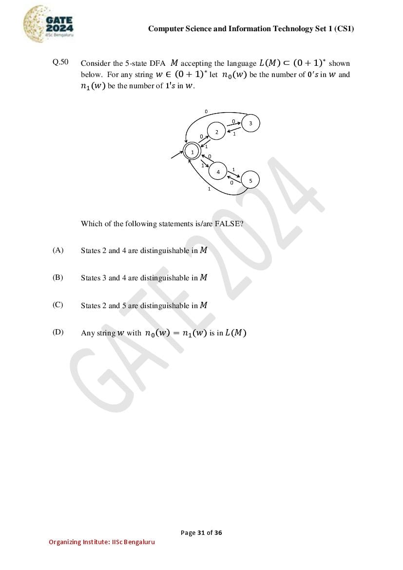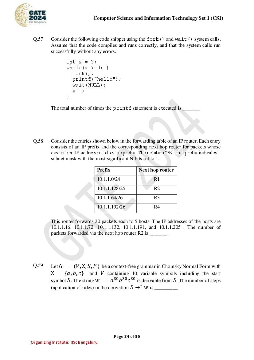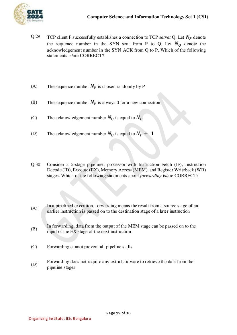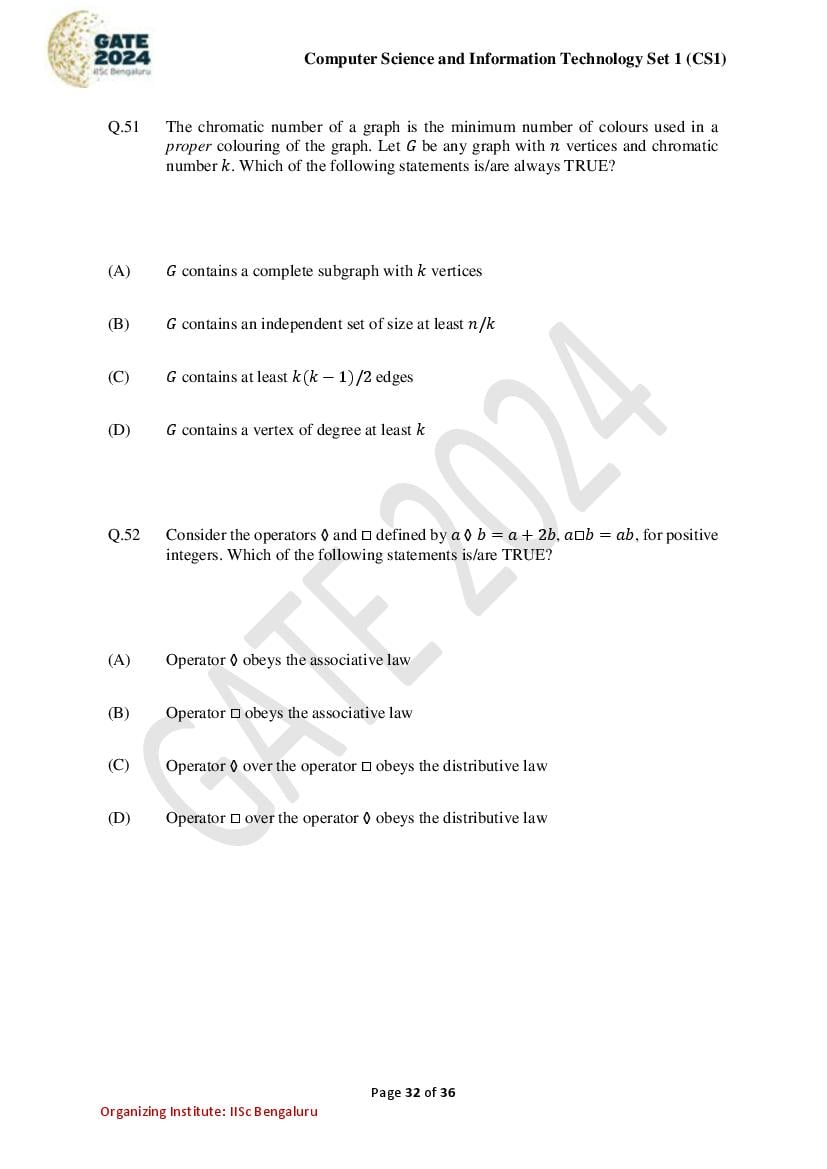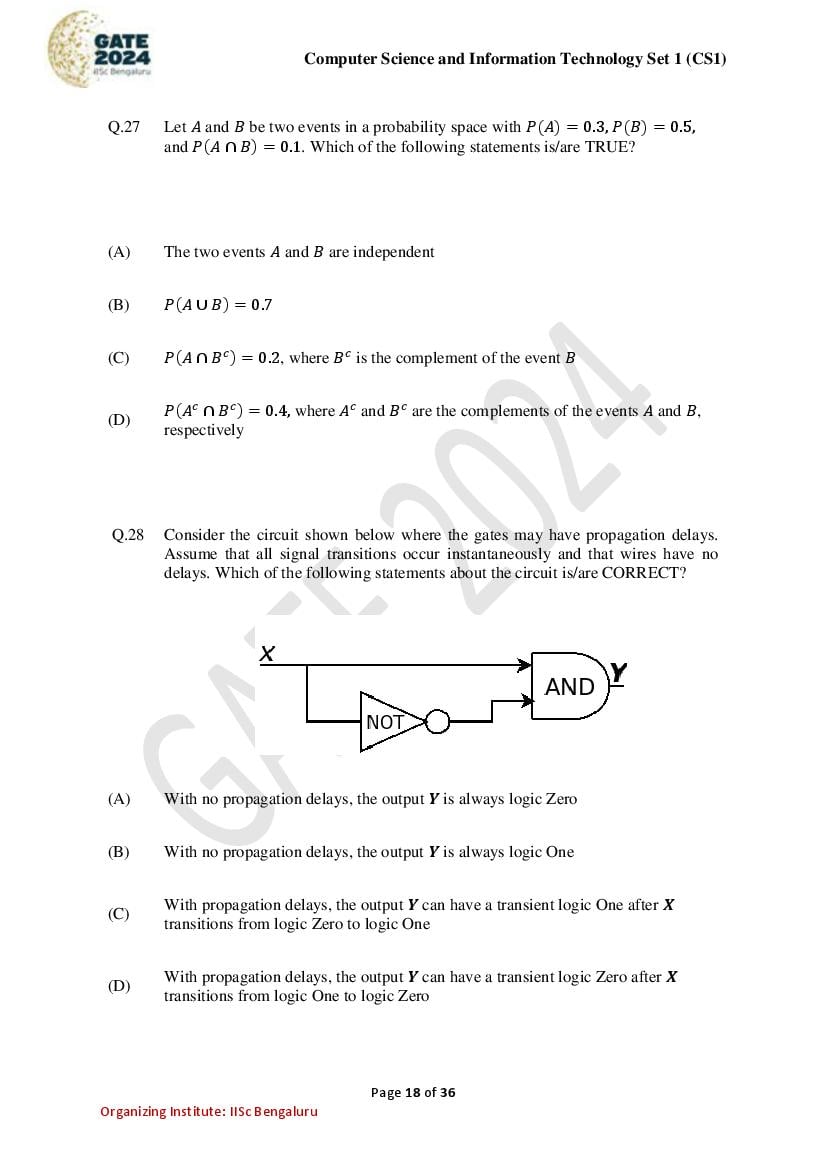 - GATE 2024 Question Paper for Computer Science and Information Technology (CS-1)