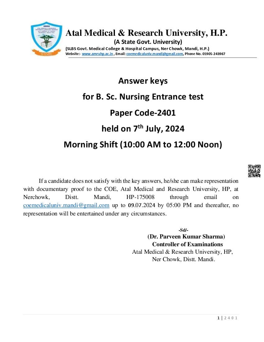 | Official website for HP B.Sc. Nursing 2024 Question Papers | amruhp.ac.in |