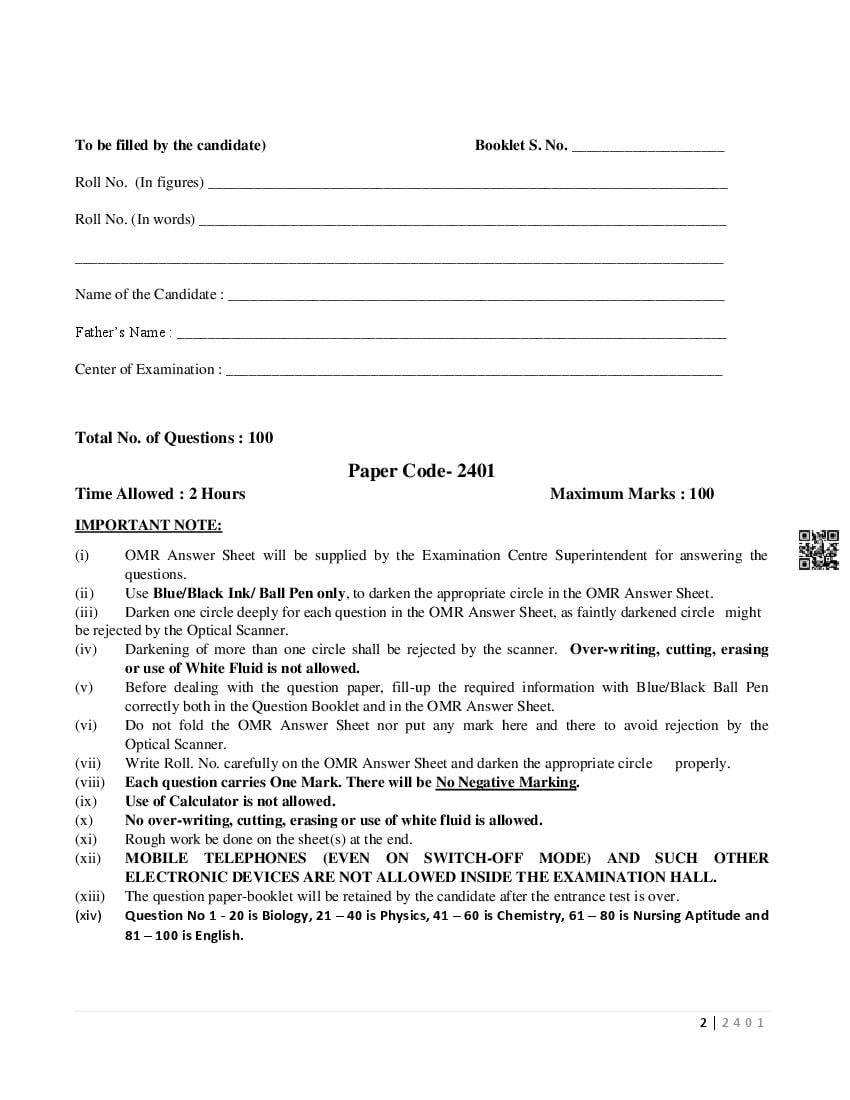 - Then HP B.Sc. Nursing Entrance Test question paper page opens.