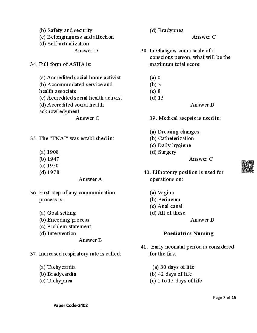 - Then HP Post Basic B.Sc. Nursing Entrance Test question paper page opens.