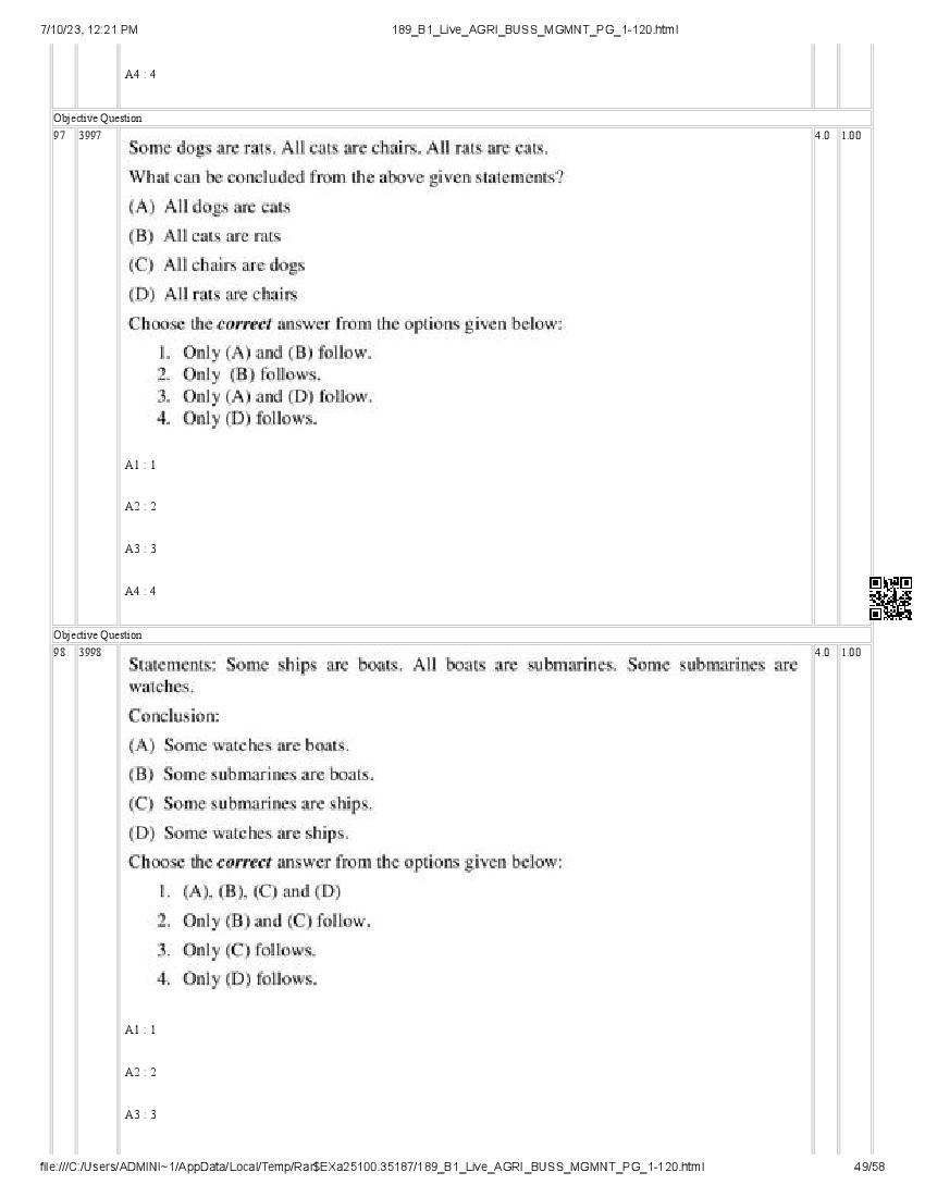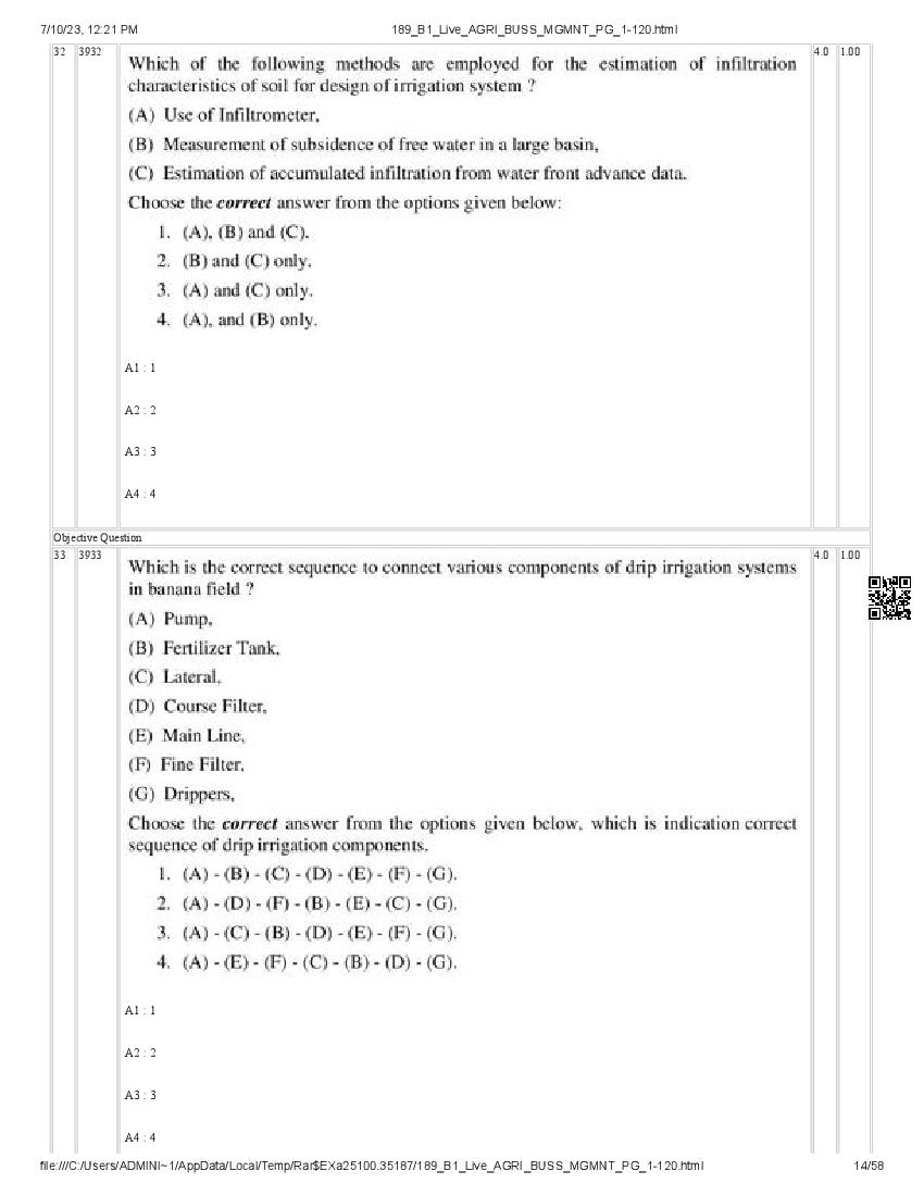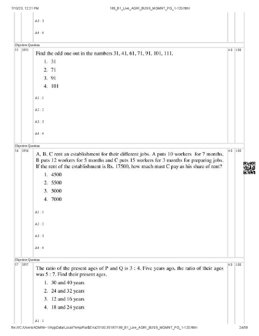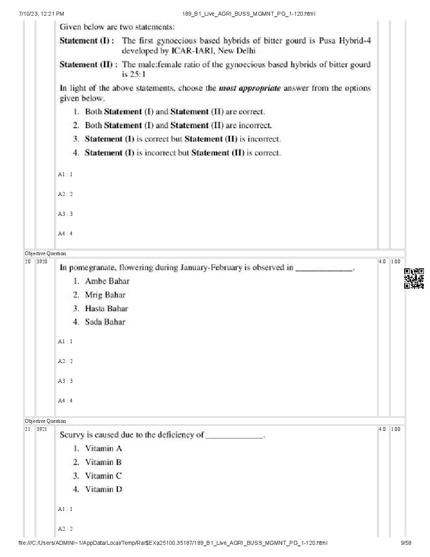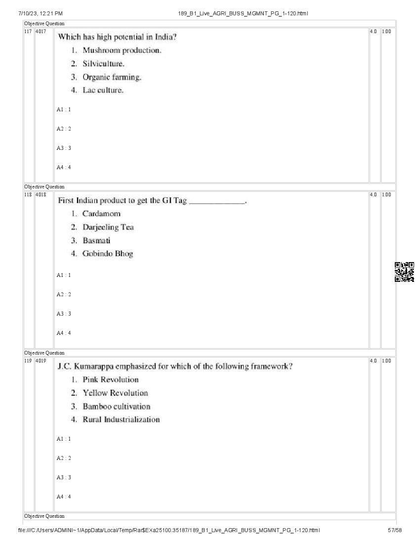 - ICAR AIEEA PG 2023 Question Paper Agri Business Management