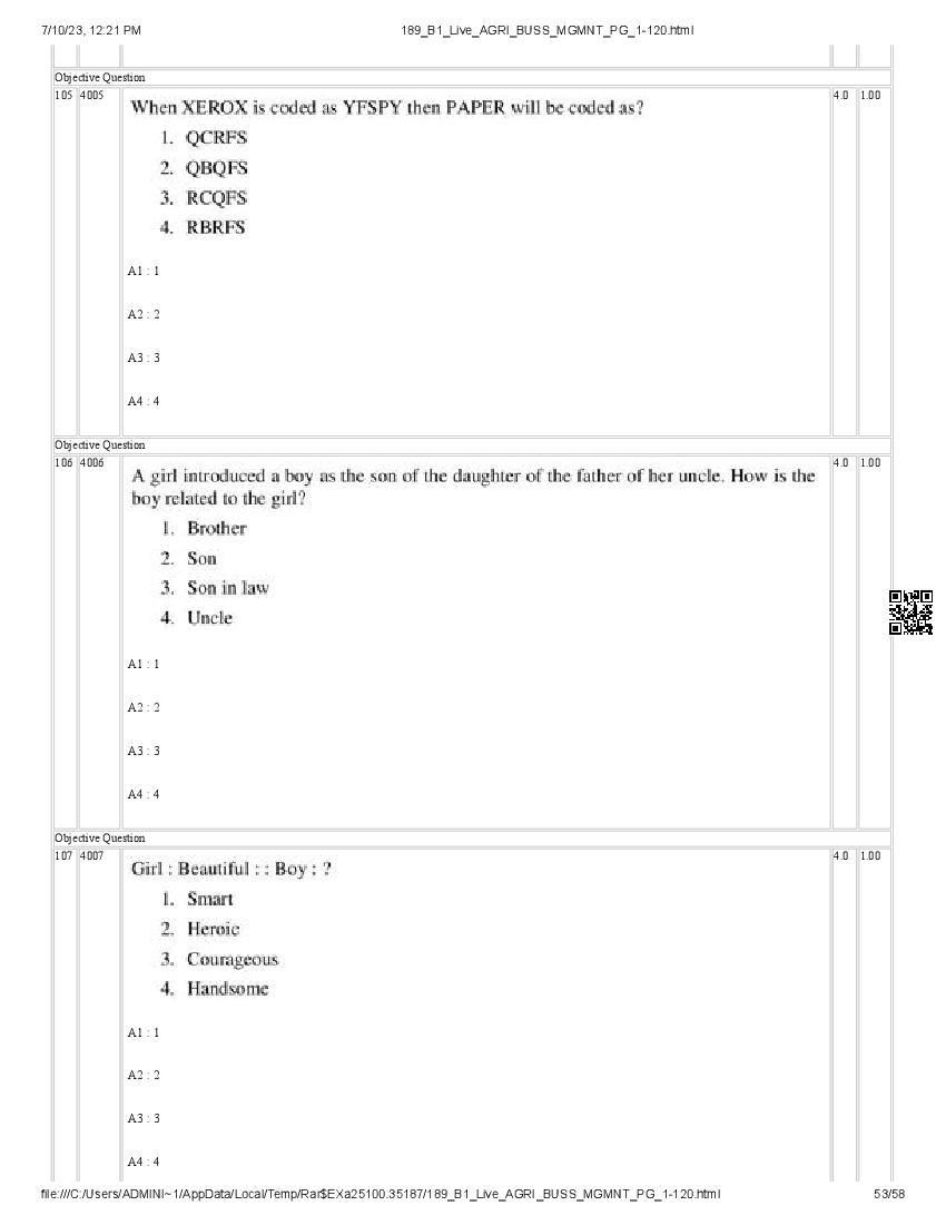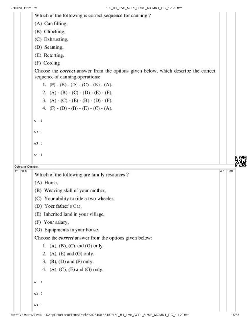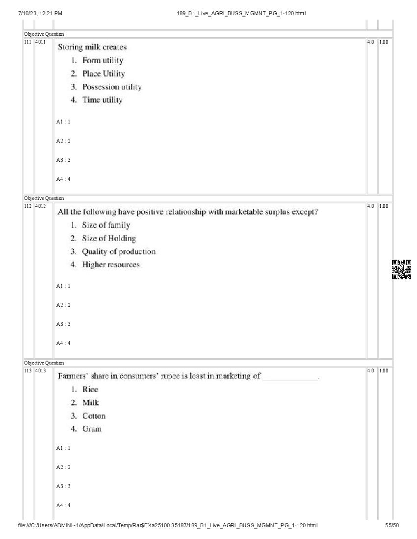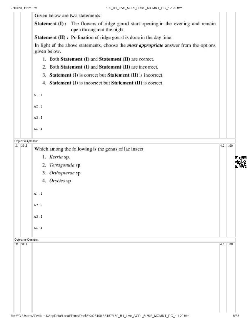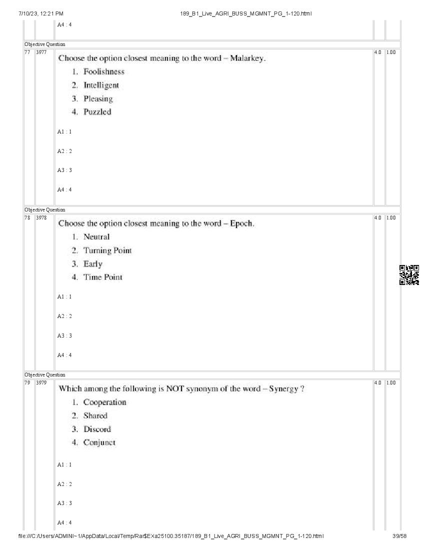- ICAR AIEEA PG 2023 Question Paper Agri Business Management