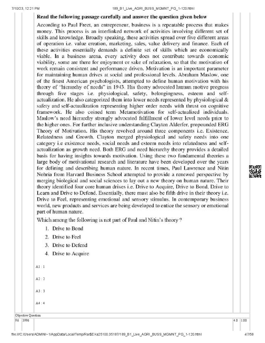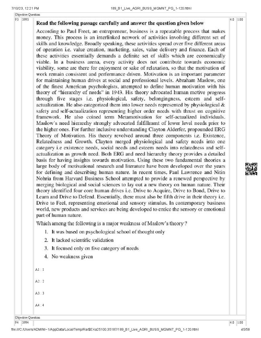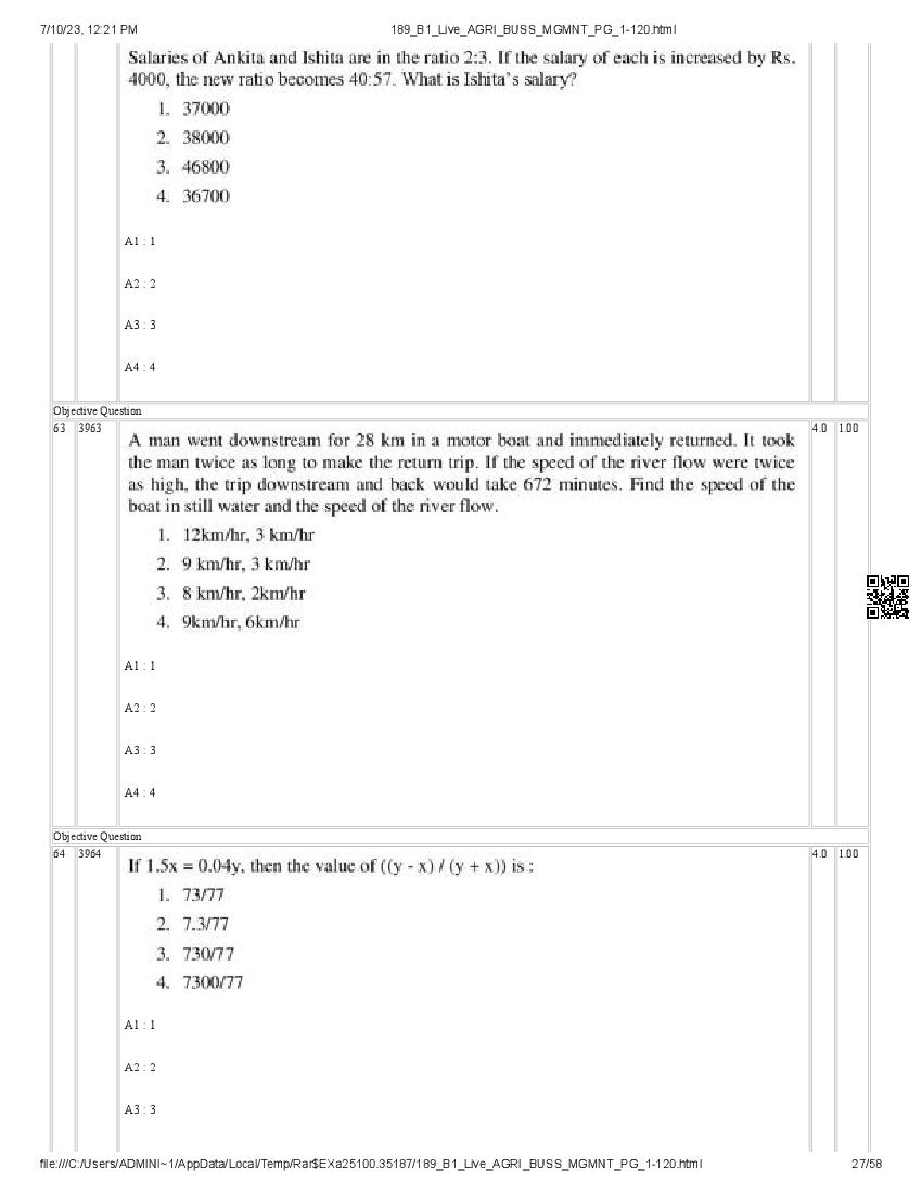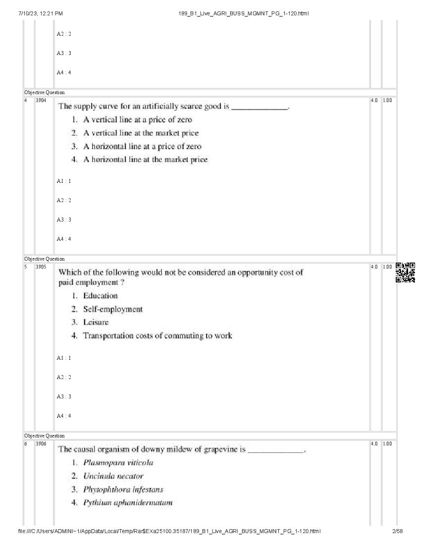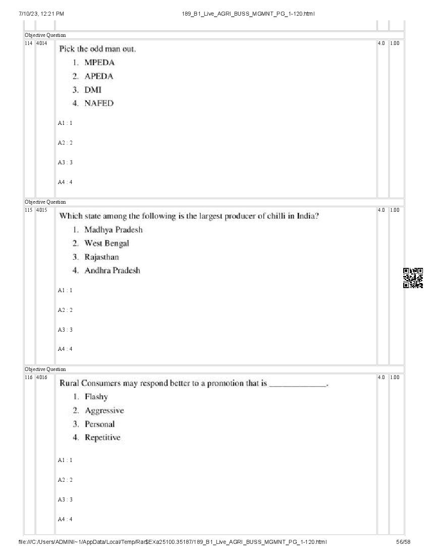 - ICAR AIEEA PG 2023 Question Paper Agri Business Management