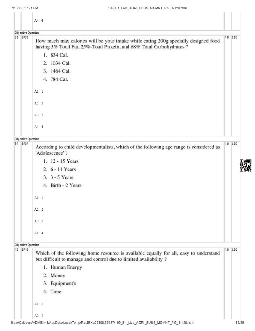 - ICAR AIEEA PG 2023 Question Paper Home Science